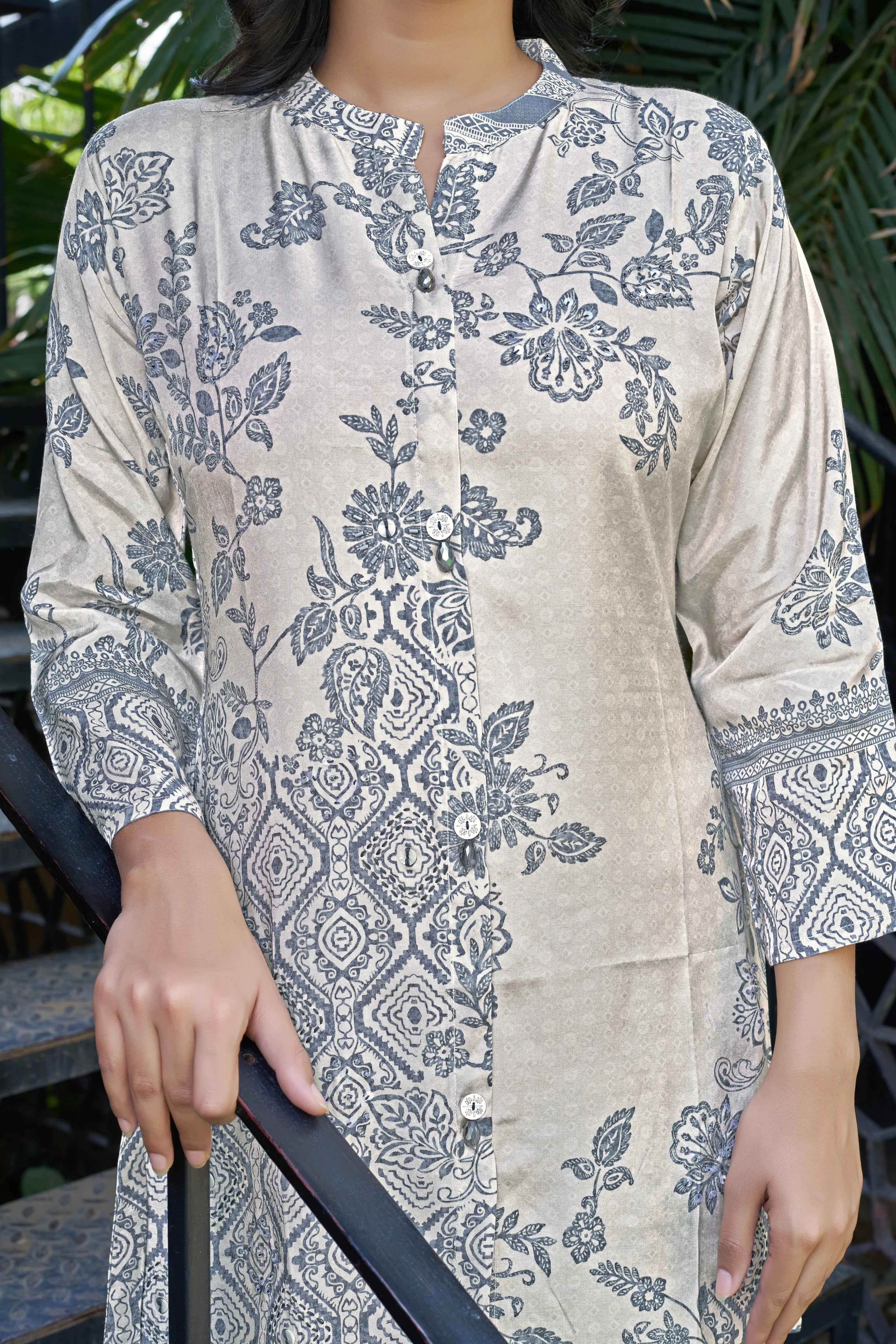 Mystic Mist: Beige & Grey Embellished Floral Co-ord Set