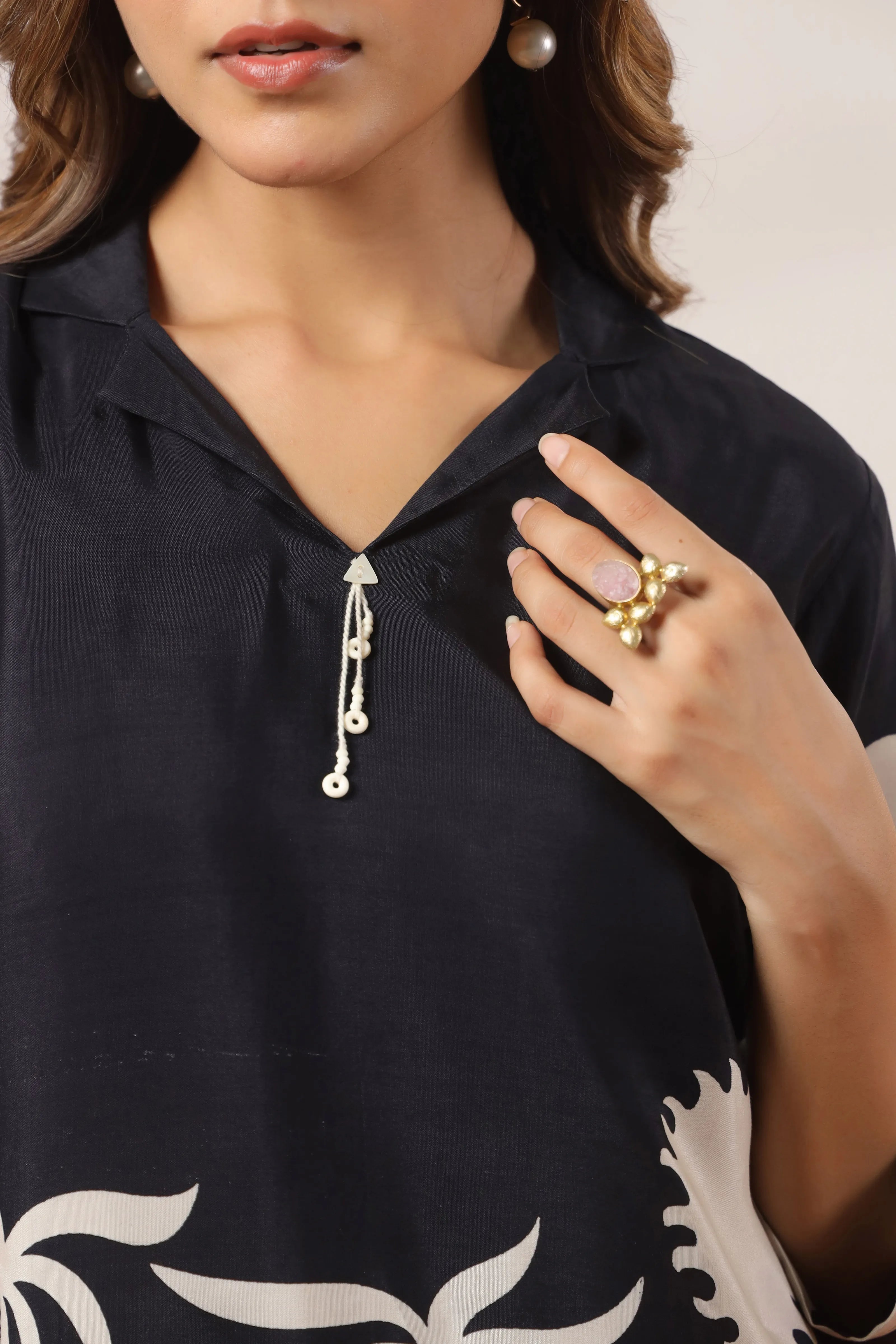 Let your wardrobe sail into stylish serenity with Coastal Mirage — a dreamy co-ord set in luxurious black Russian silk, featuring relaxed silhouettes and sandy beige coastal motifs. This artistic set draws inspiration from tranquil shores and easy-breezy vacation vibes.