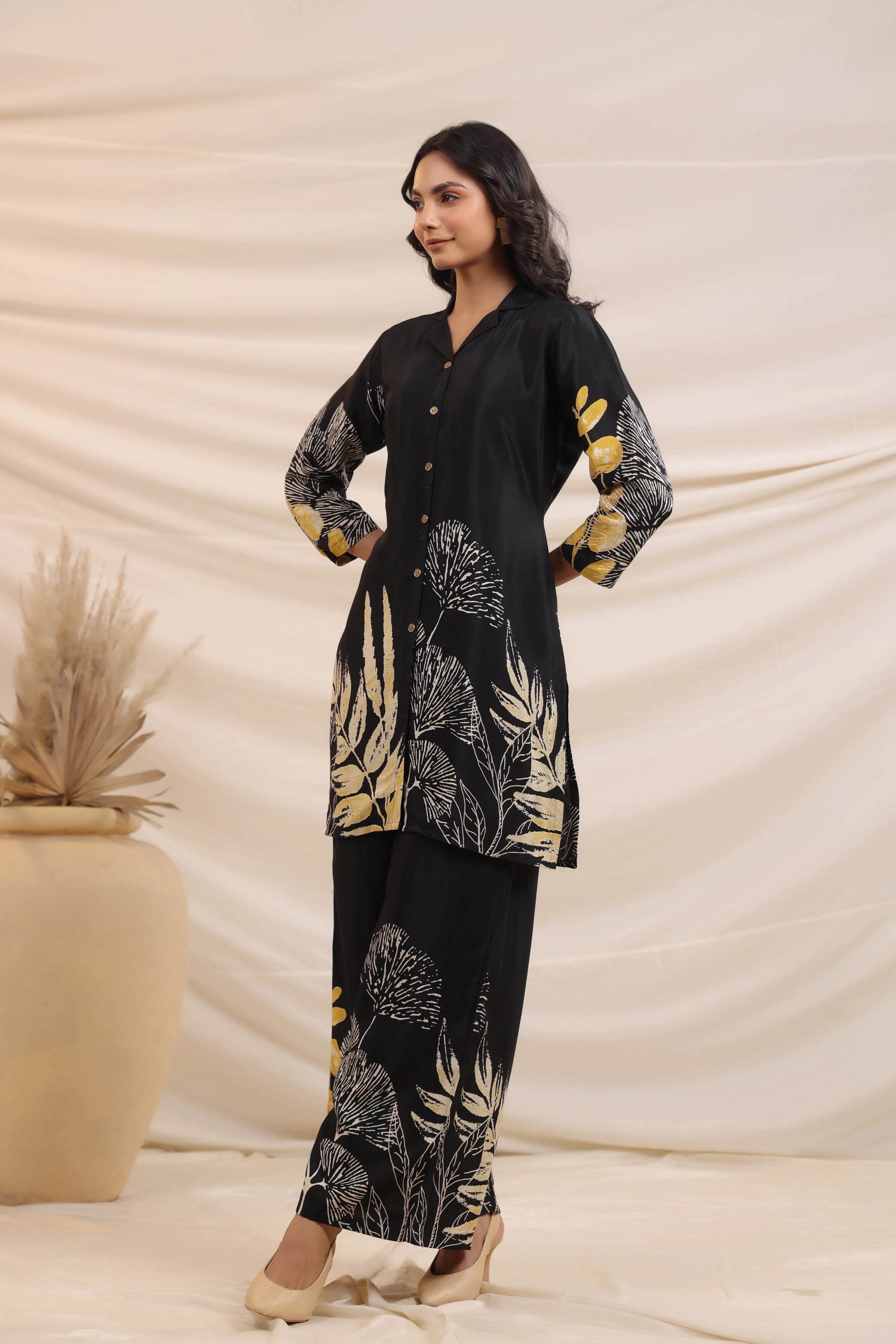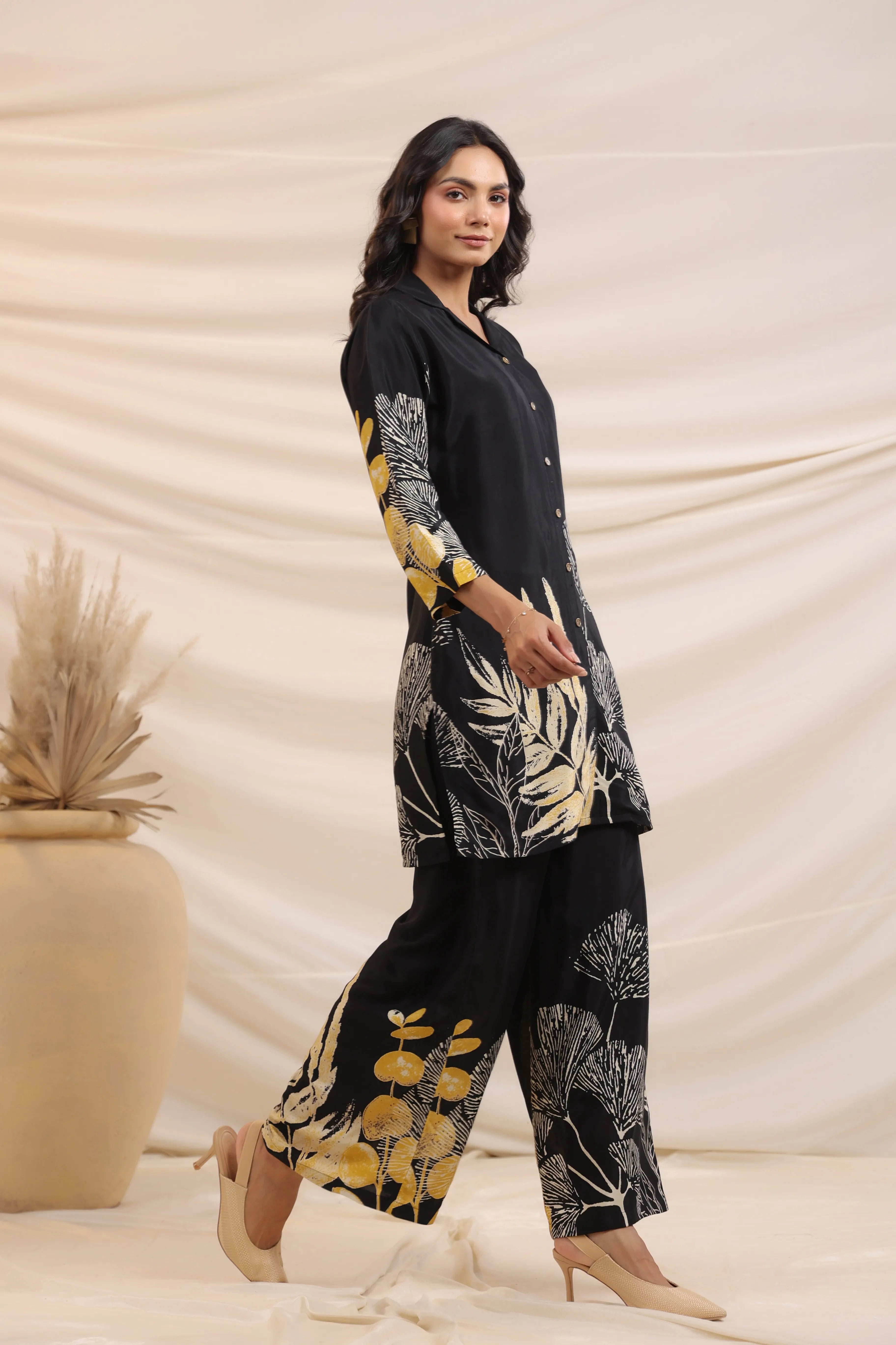 Step into sophisticated charm with this black floral co-ord set, where bold prints meet timeless luxury!