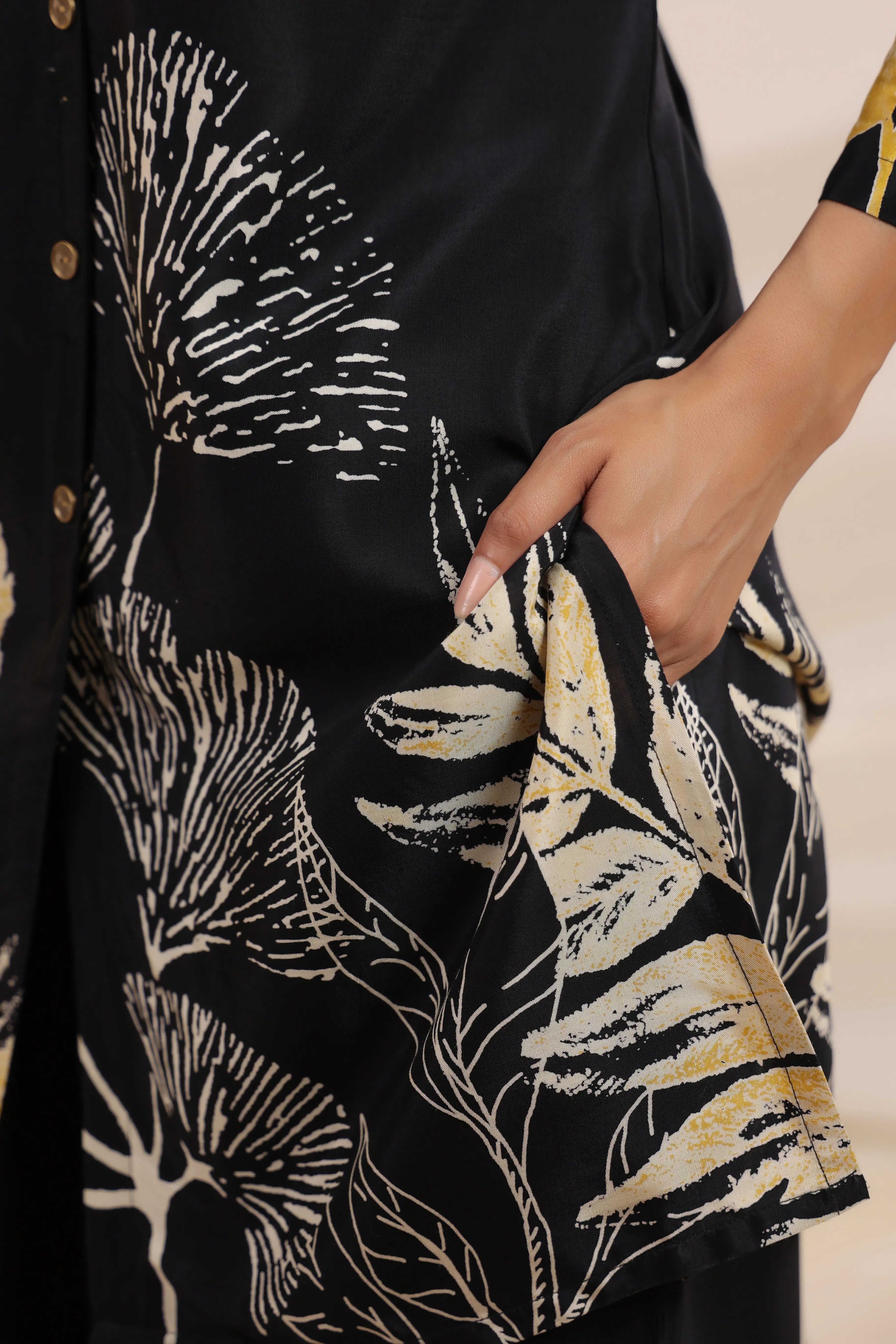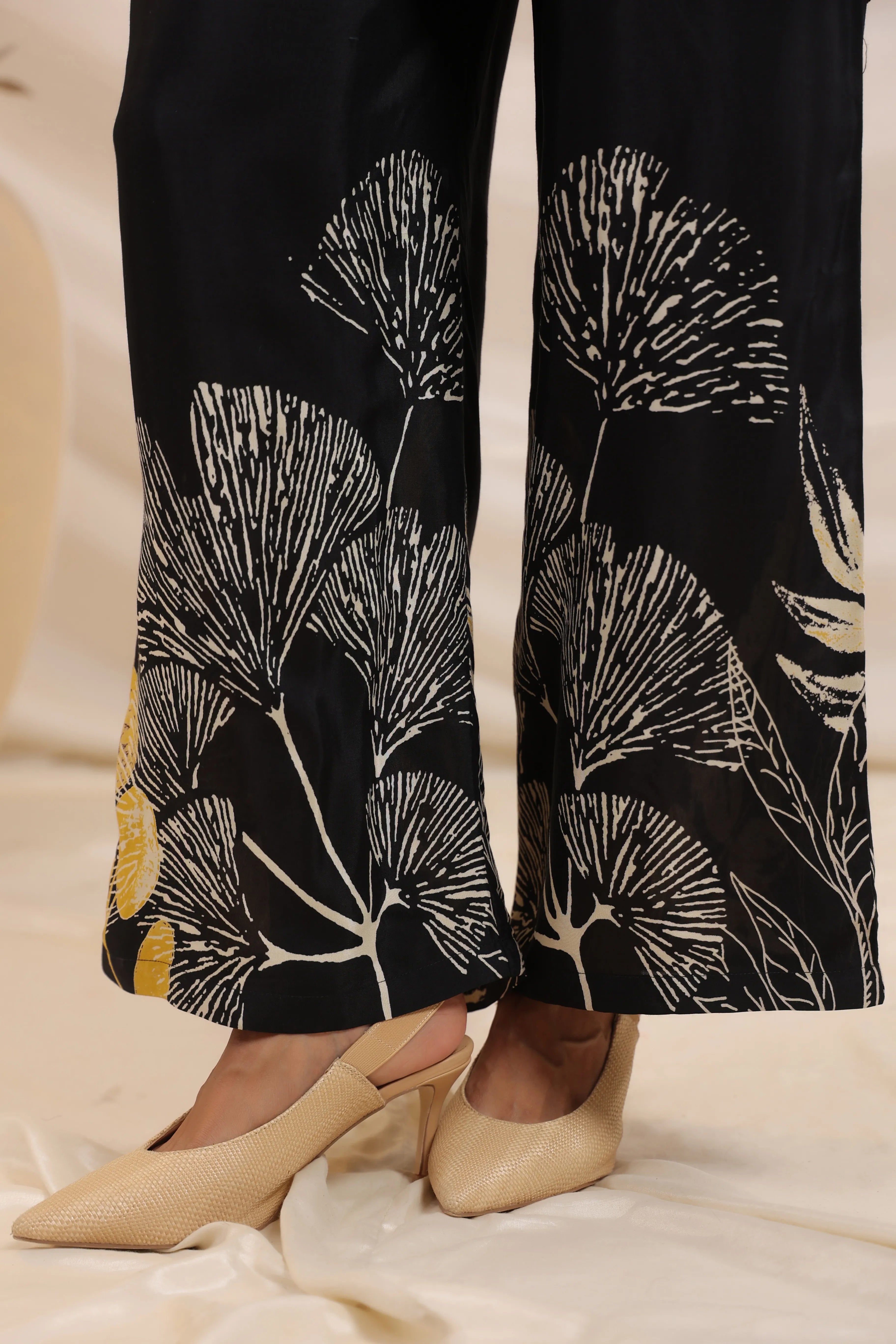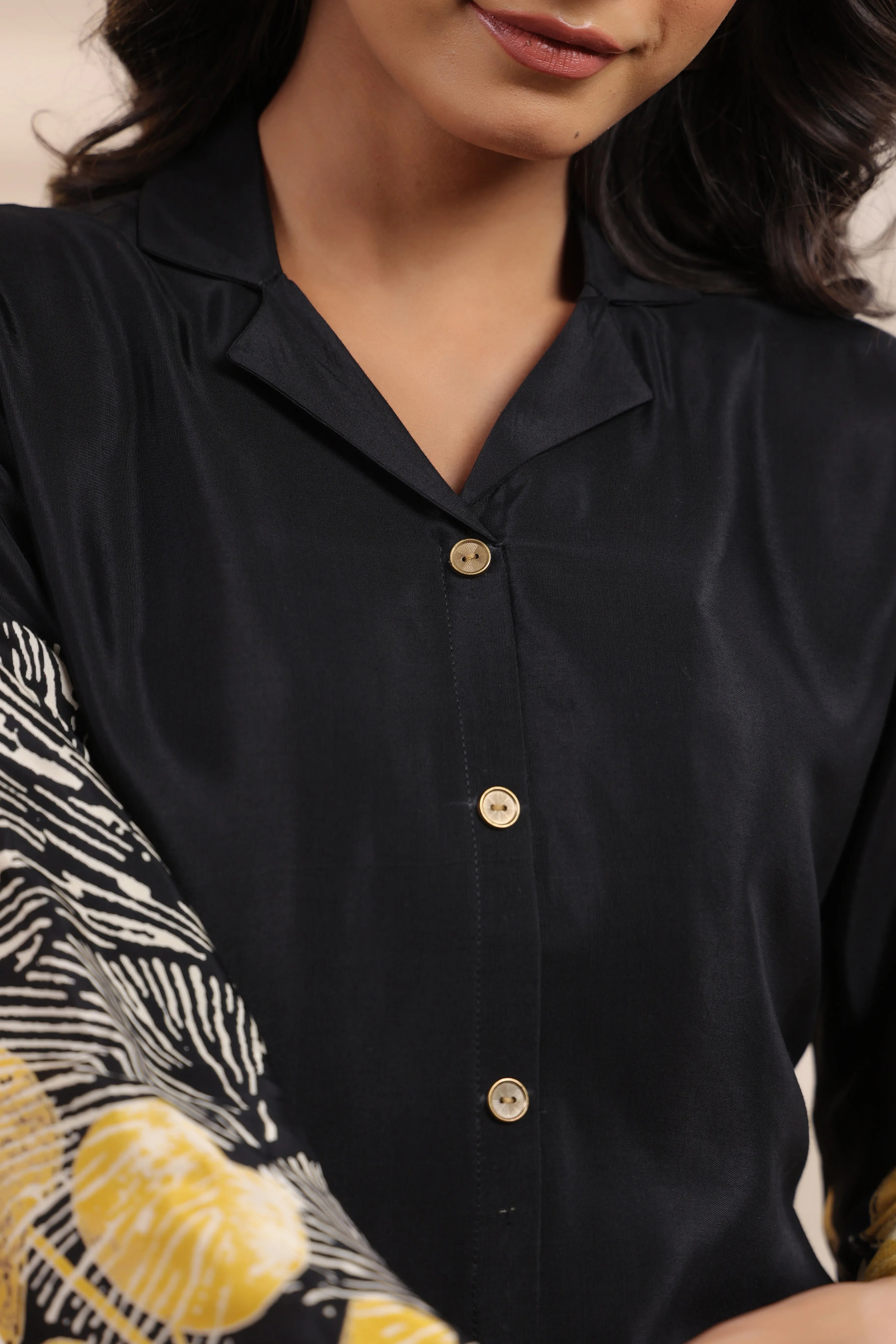 Make a statement in style with the Black Bold Floral Printed Co-Ord Set, a luxurious blend of sophistication and comfort. Crafted from premium Russian silk, this set offers a buttery soft feel and a graceful drape, perfect for any occasion where elegance meets ease.