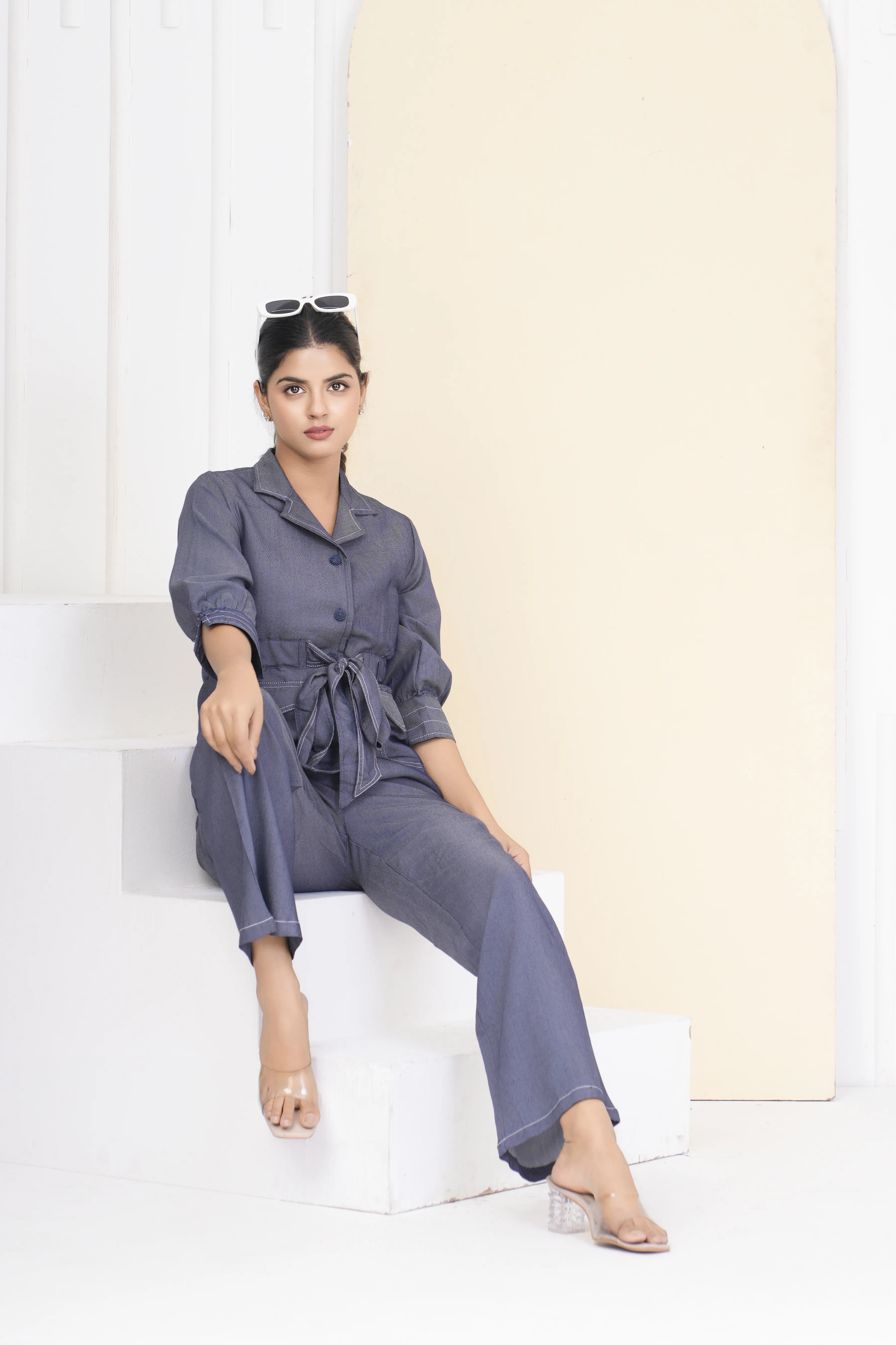 Chic Comfort with the Blue Denim Tie-Belt Co-ord Set