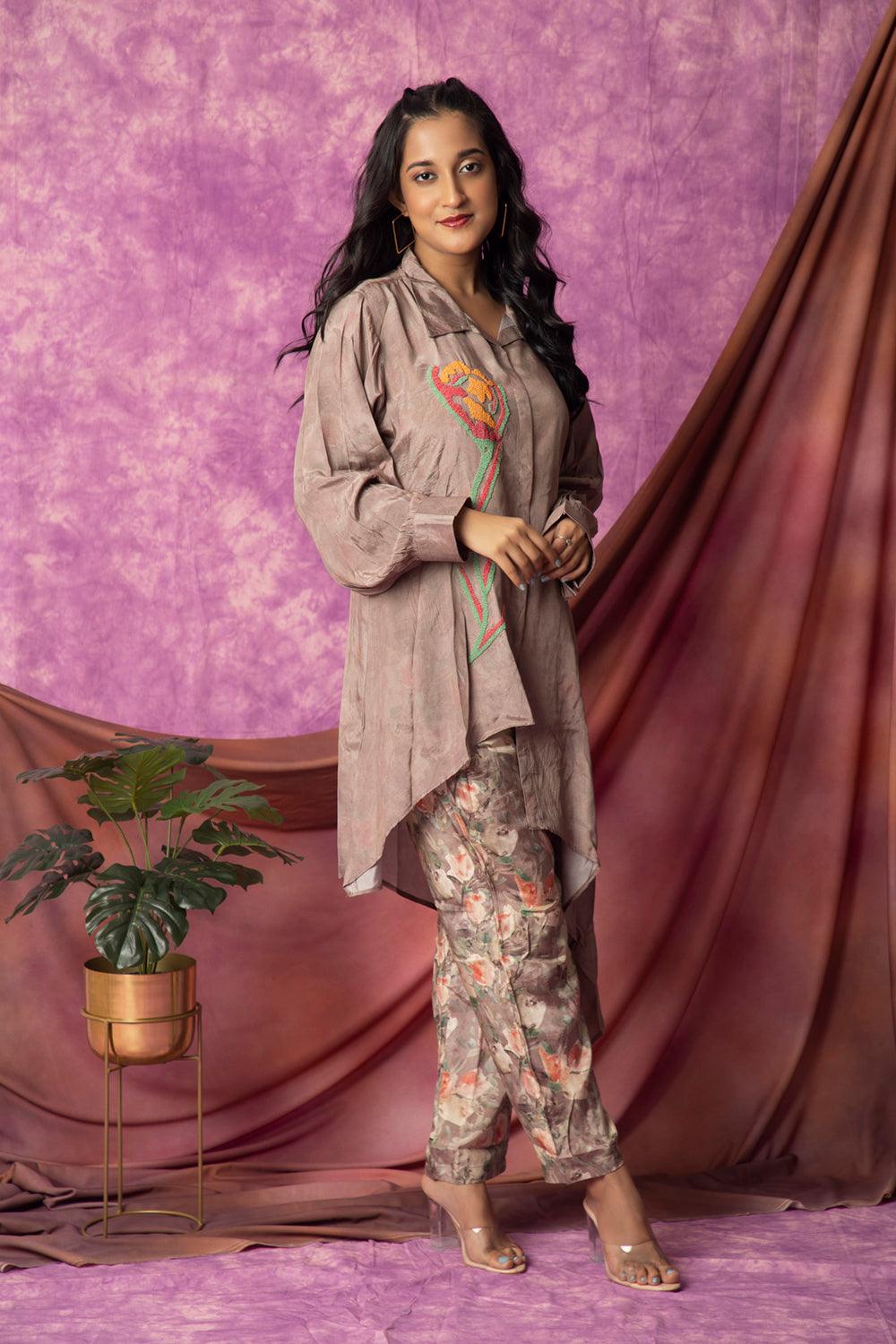Elevate your everyday style with the Brown Muslin Co-Ord Set, designed to combine comfort and sophisticated detailing. This chic set includes a shirt with a classic collar, full relaxed sleeves, and delicate embroidery work that adds a touch of artistry. Paired with straight-bottom trousers, this ensemble exudes a clean and timeless silhouette, perfect for both casual outings and relaxed daywear.