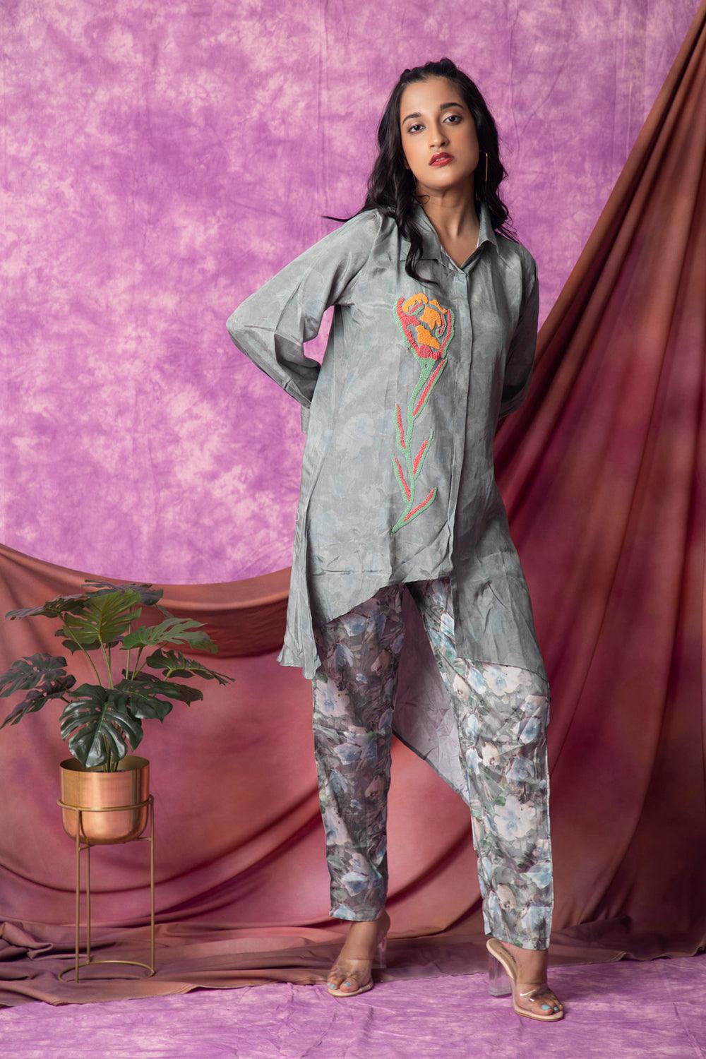 Grace in Grey: Embroidered Muslin Co-Ord Set