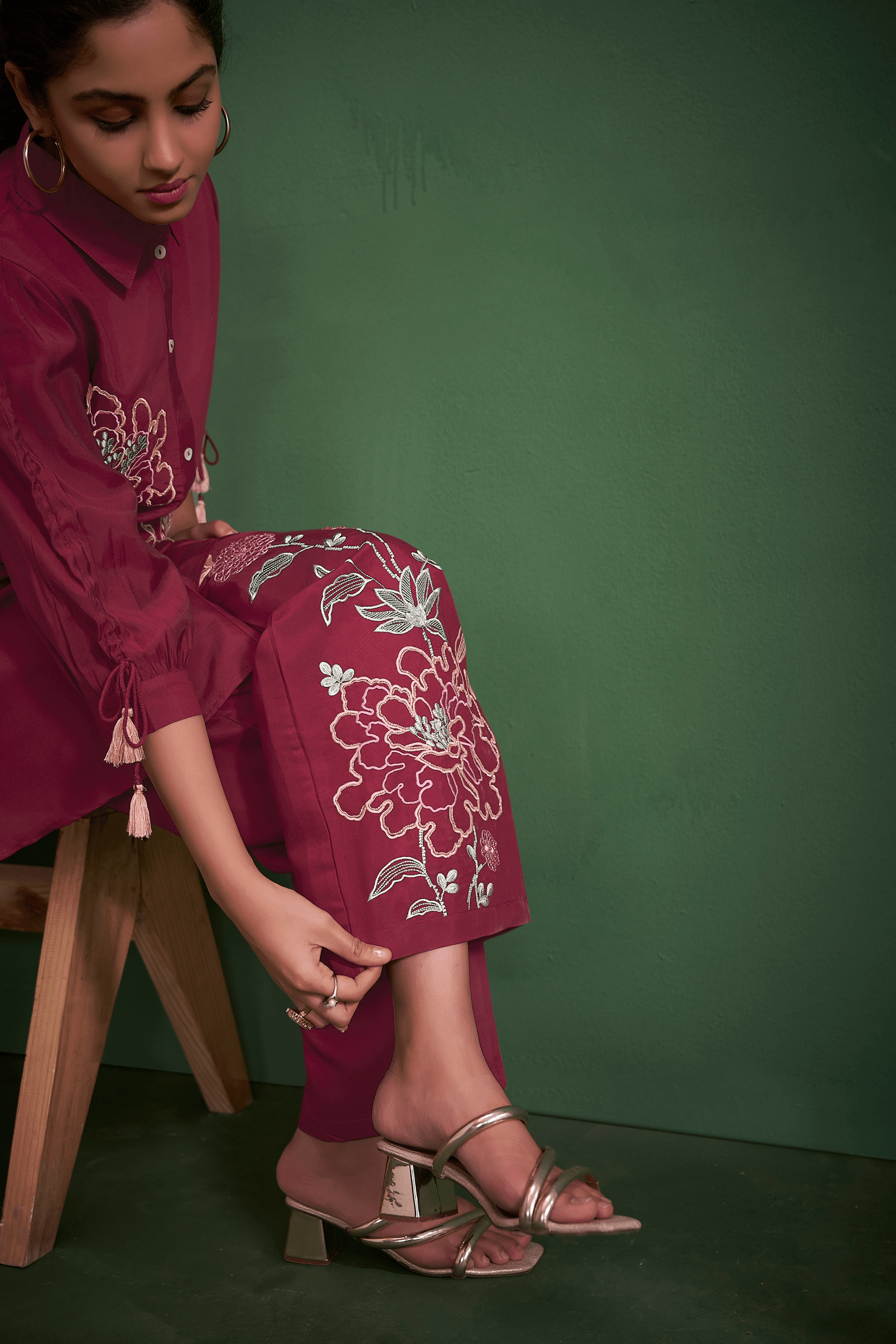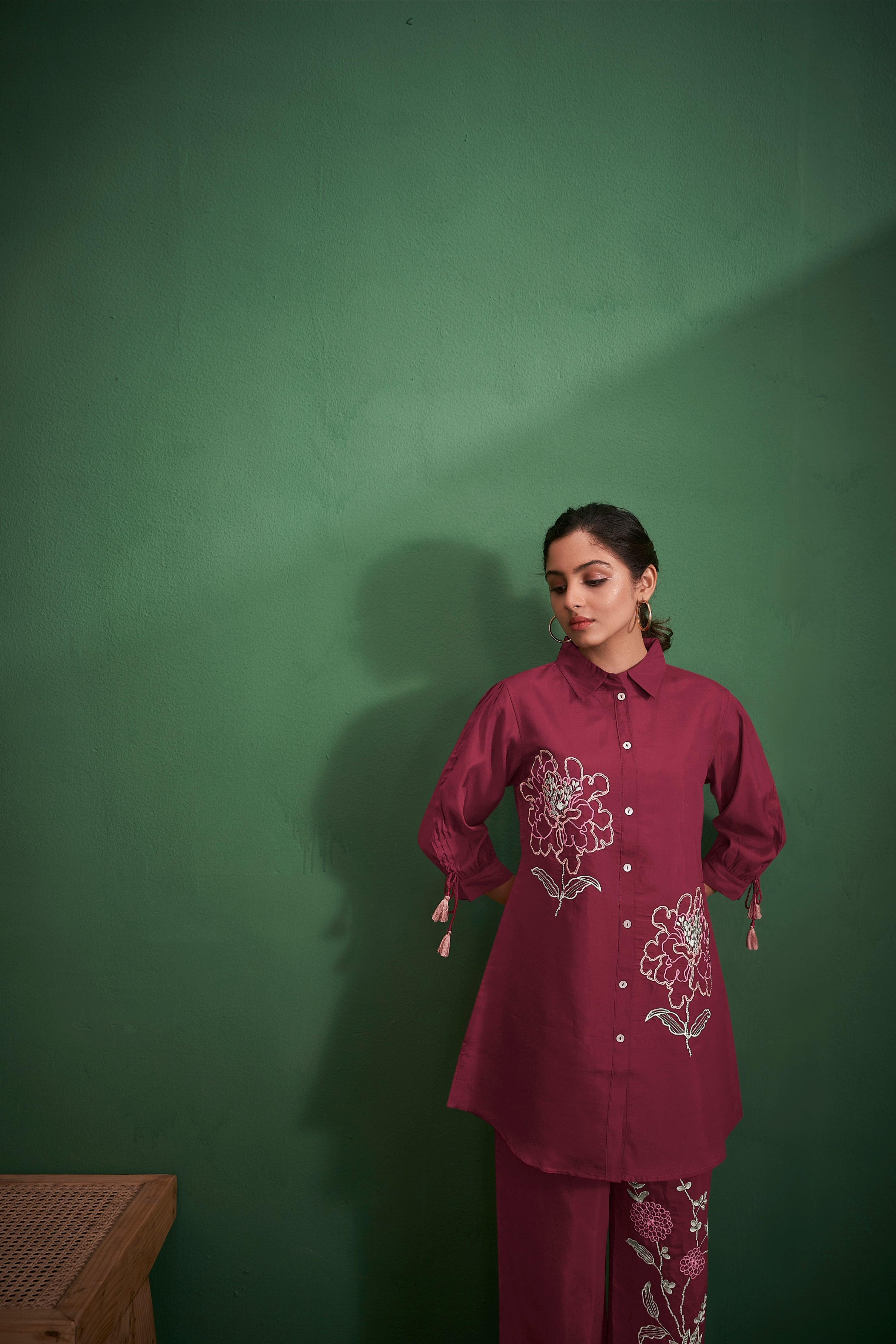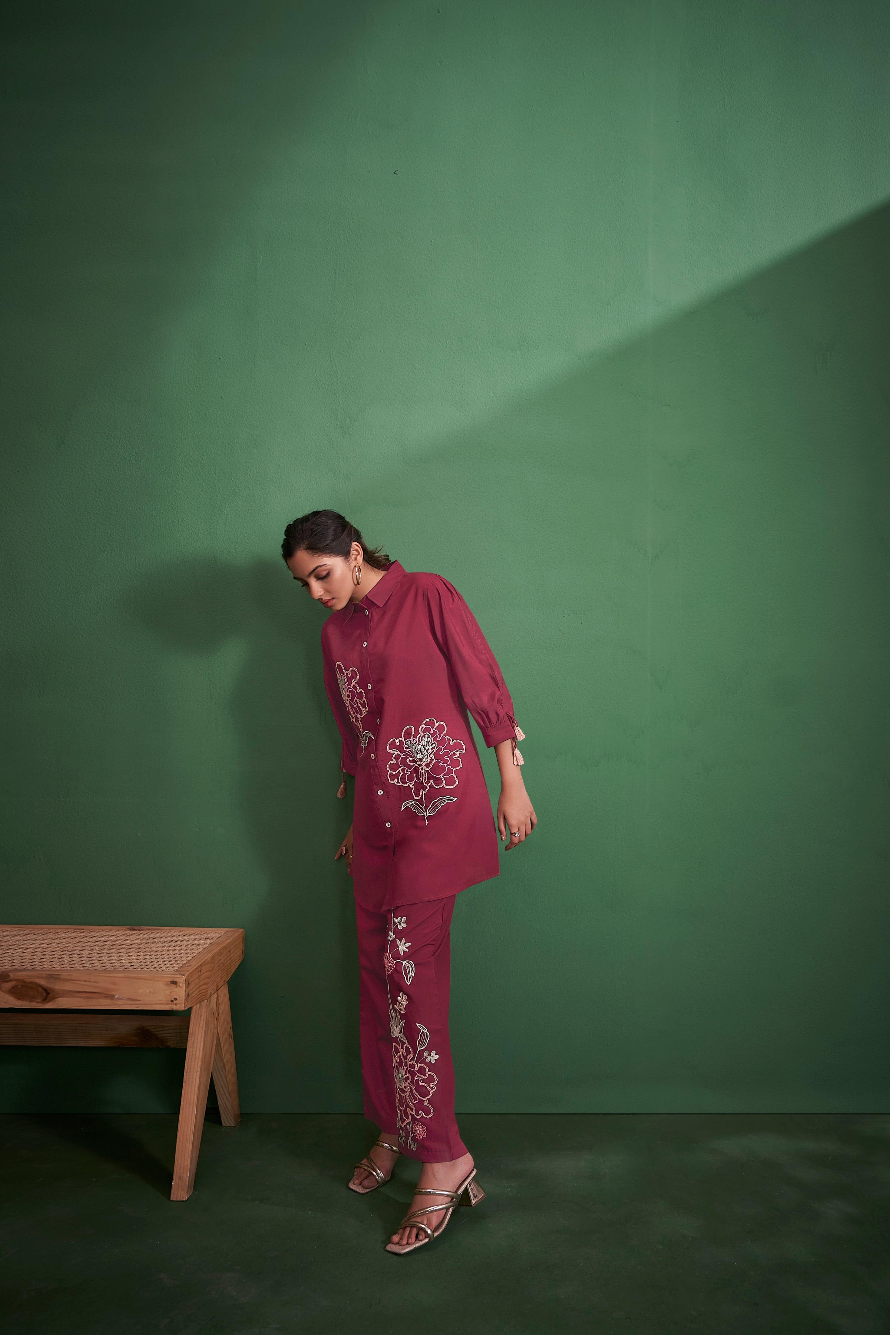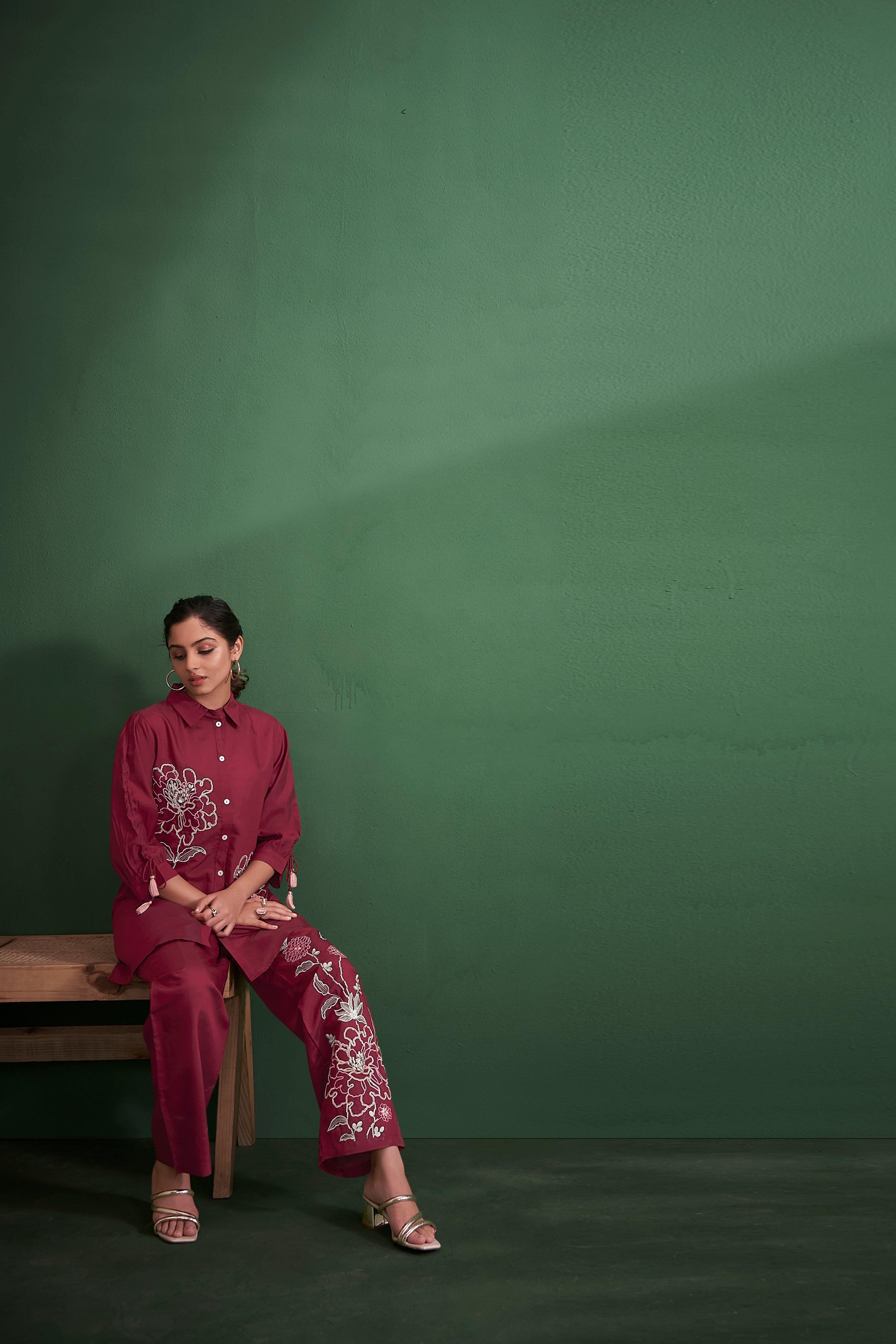 Drape yourself in the rich elegance of maroon with this exquisitely embroidered co-ord set—where tradition meets contemporary charm.