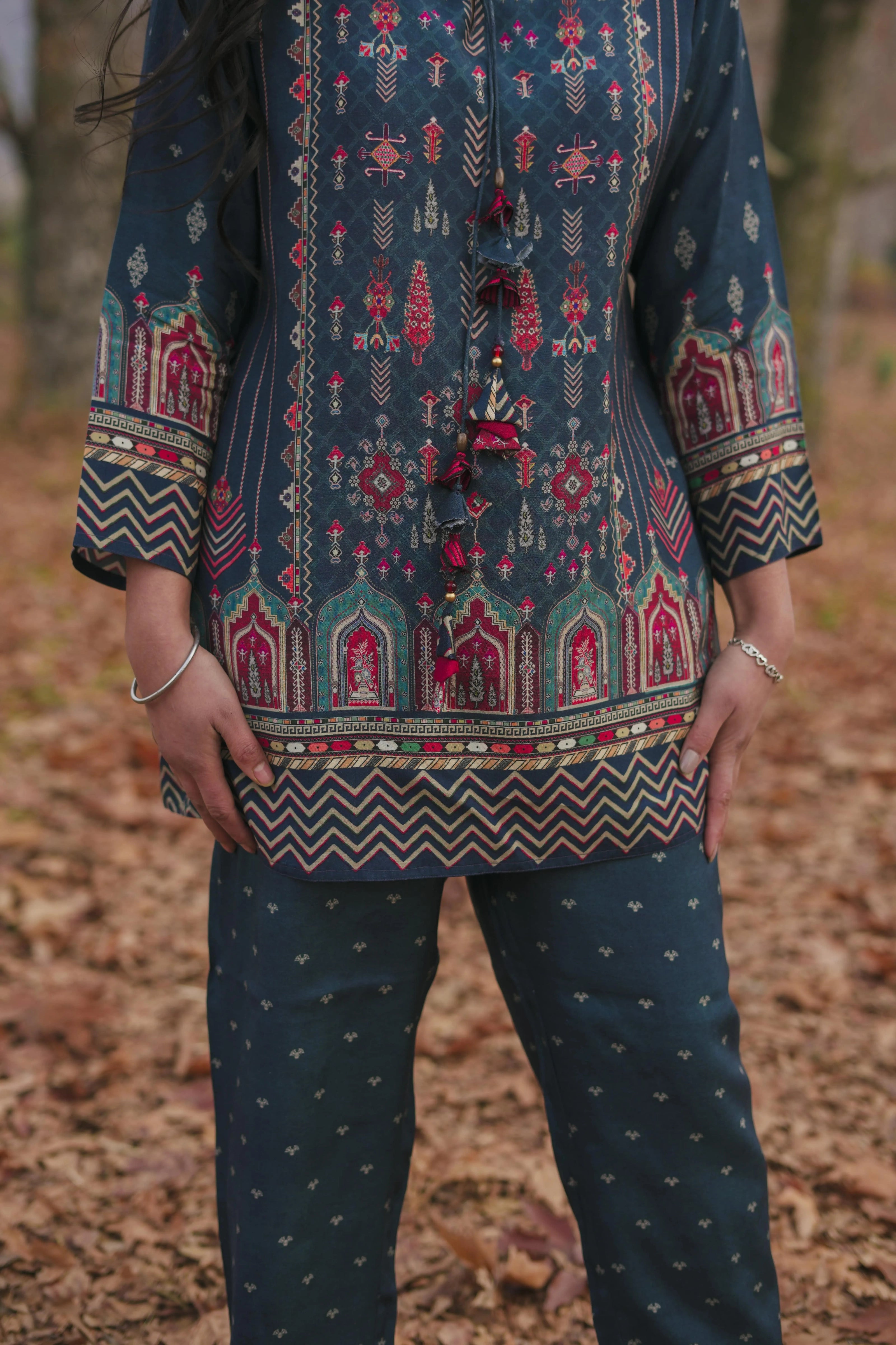 Pair the Midnight Bloom Co-Ord Set with minimal jewelry and flats or heels to create a look that’s equal parts laid-back and refined. Ideal for casual outings, brunch dates, or relaxed gatherings, this set is your go-to choice for understated elegance.