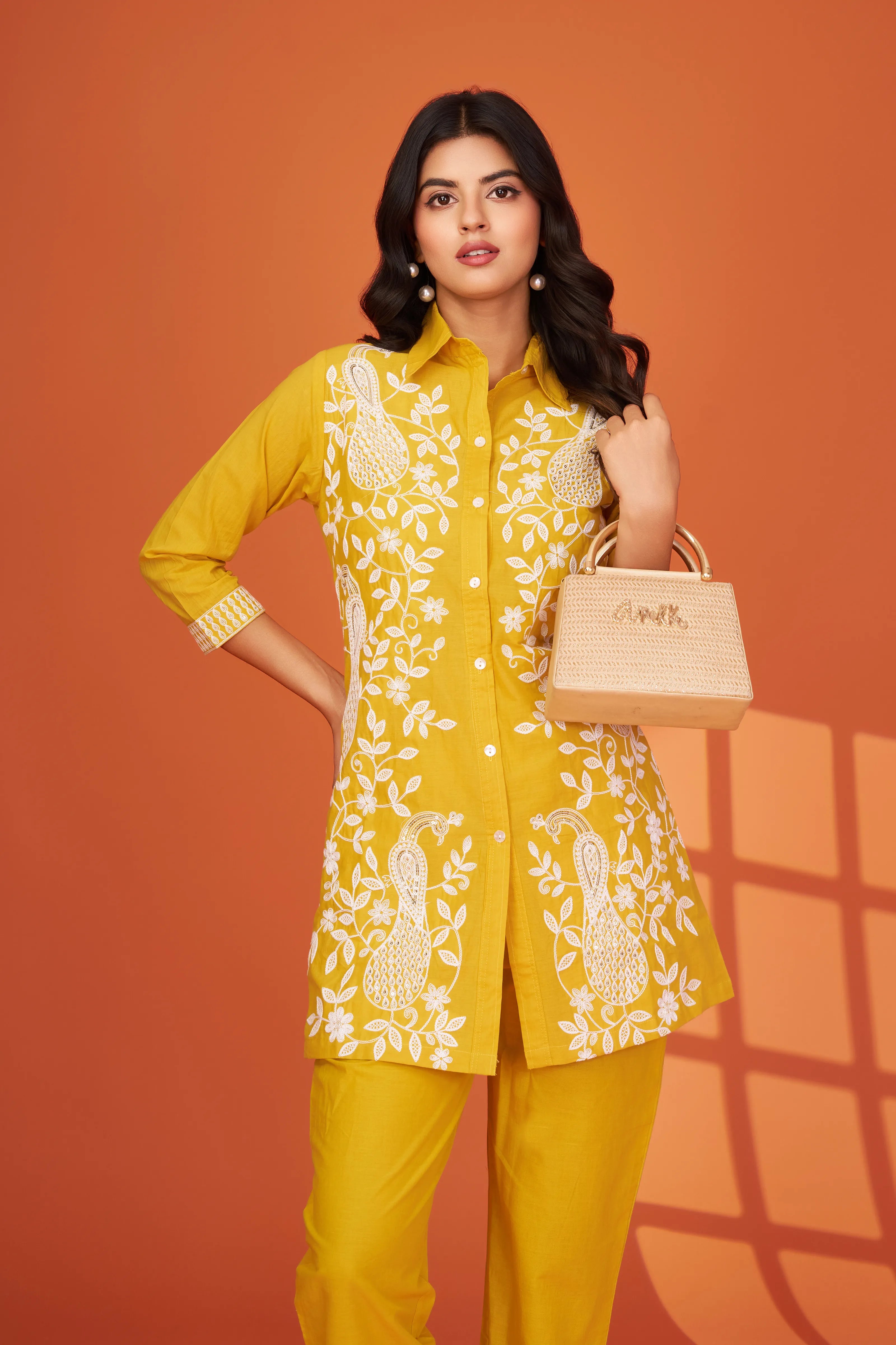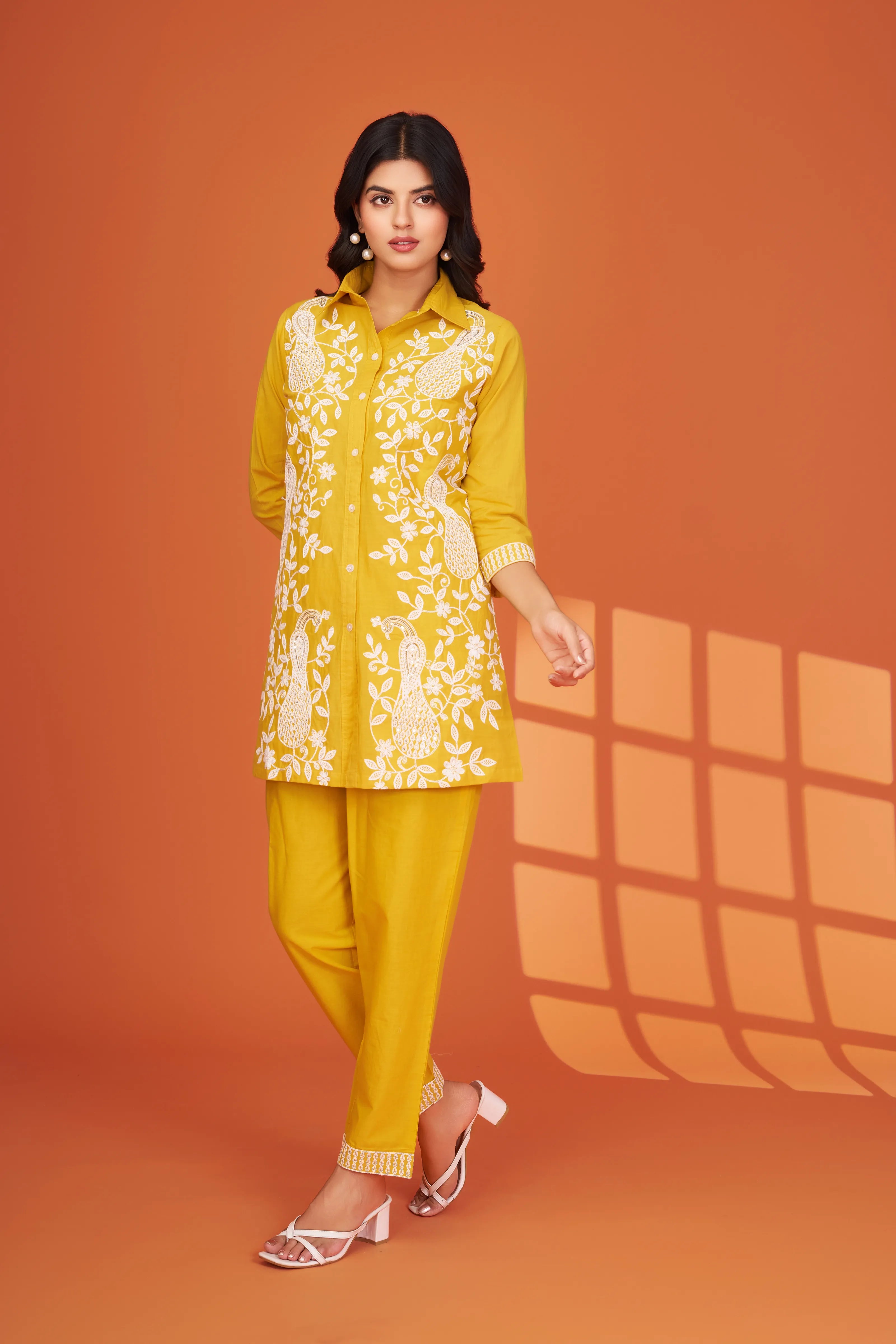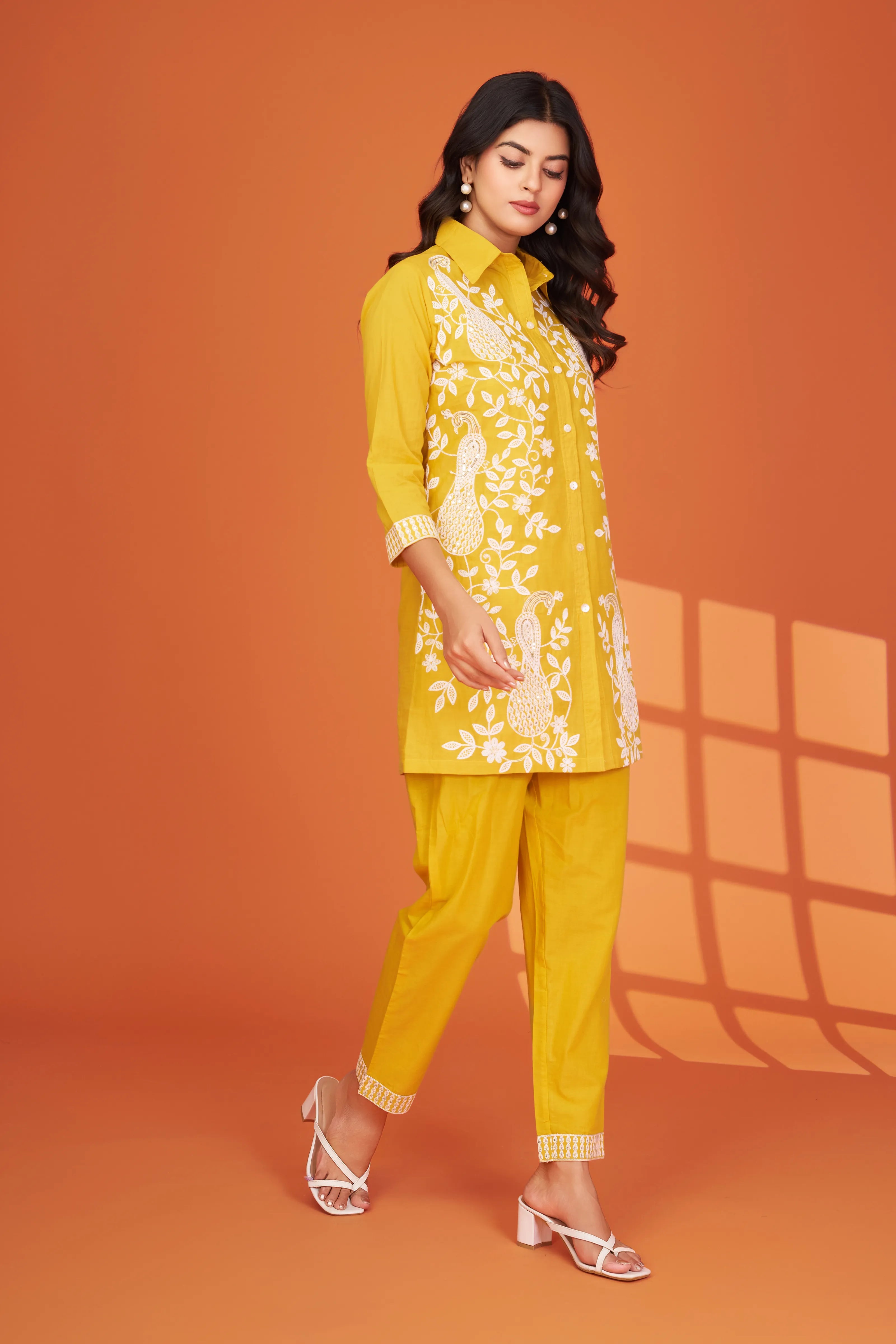 Mustard Yellow Embroidered Co-ord Set in Cotton