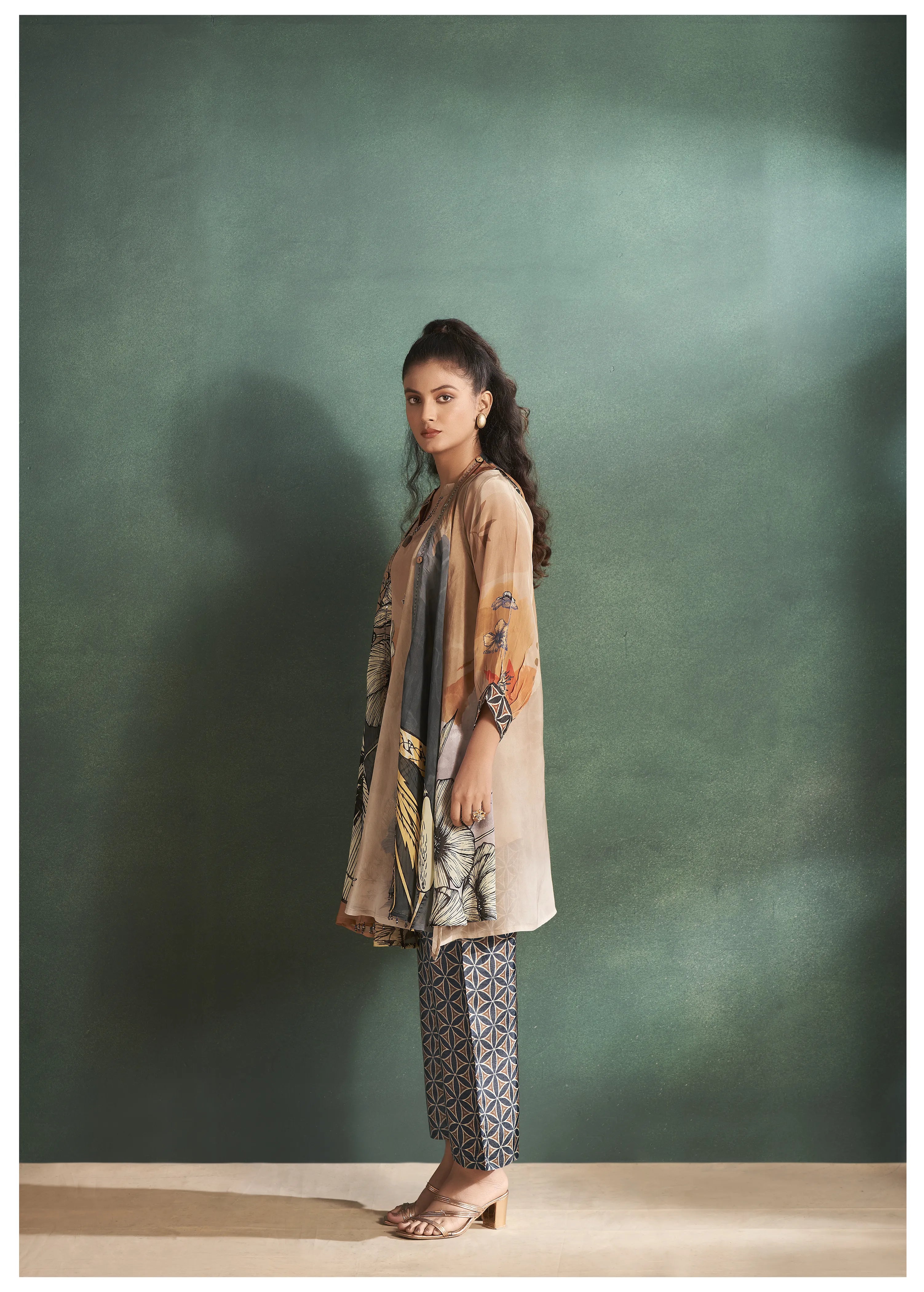 Design: Bold floral print on the kurti paired with a stylish shrug for a statement look