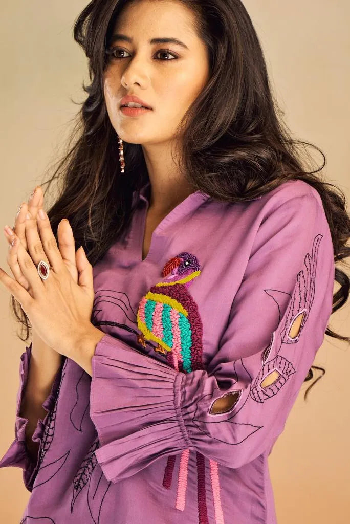 Purple 3D Thread Work Tunic & Trouser Co-Ord Set