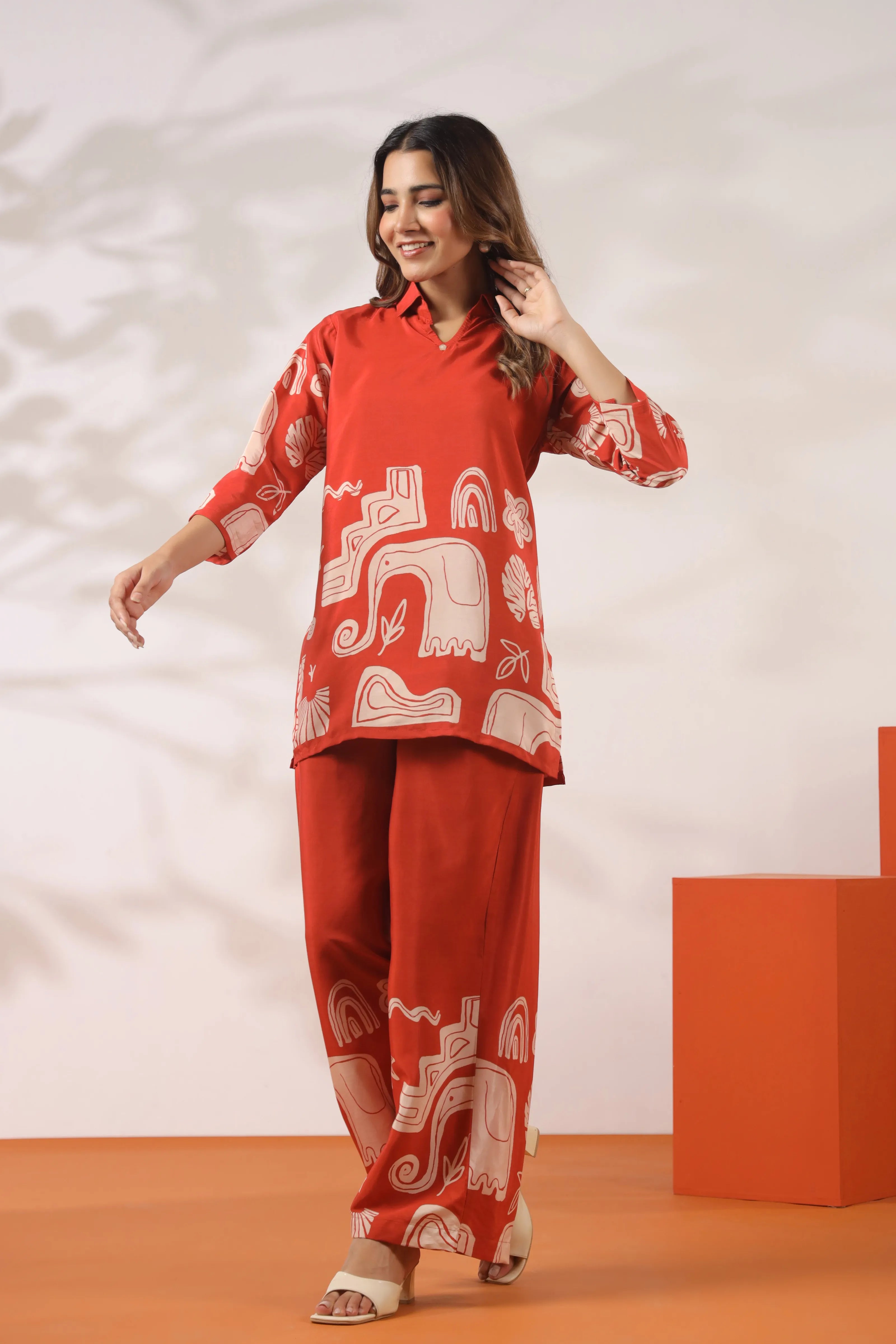 Rust Abstract Elephant Print Co-Ord Set