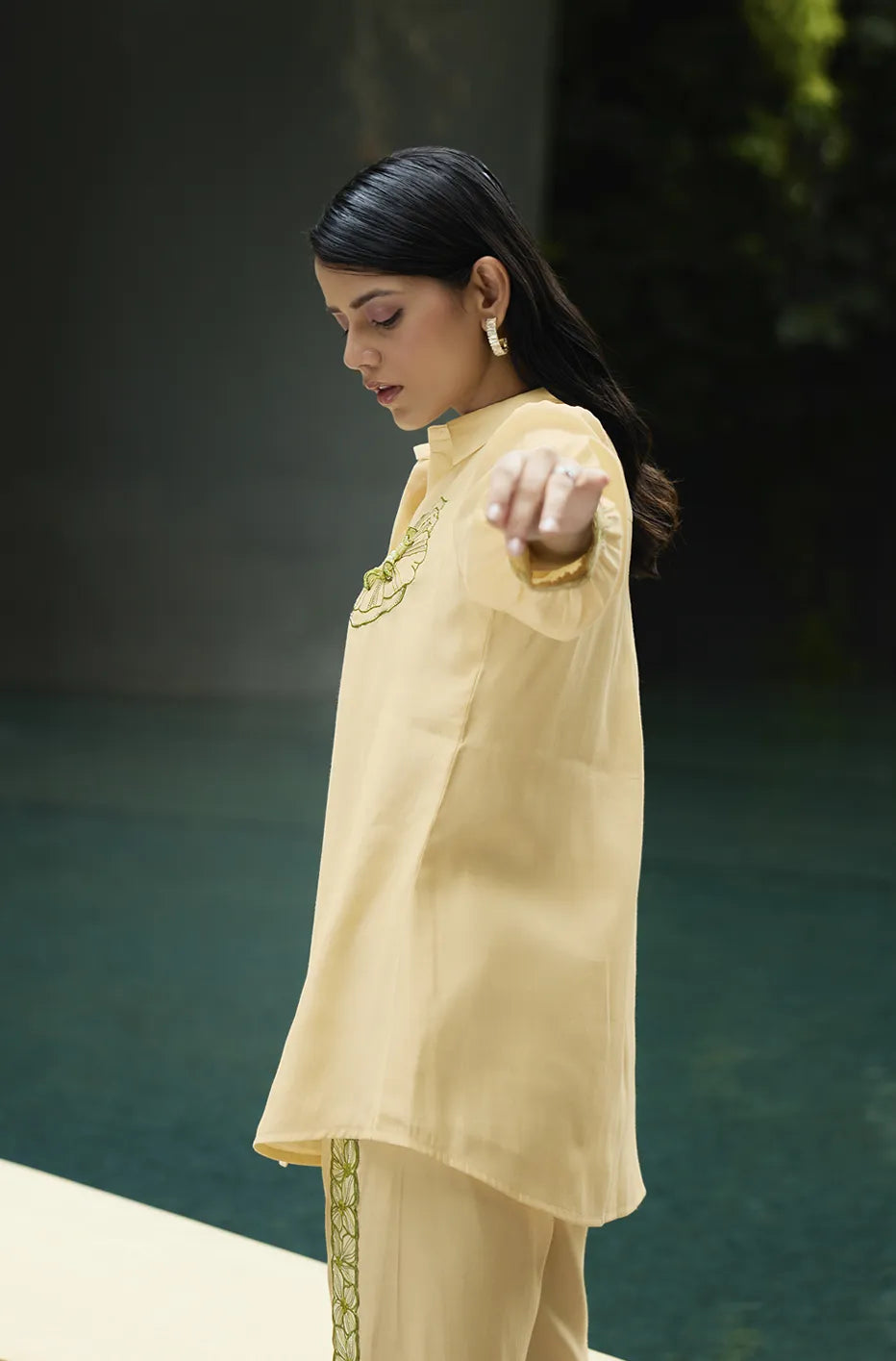 • Shirt: Yellow Creme with 3/4th Relaxed Sleeves and Embroidered Details