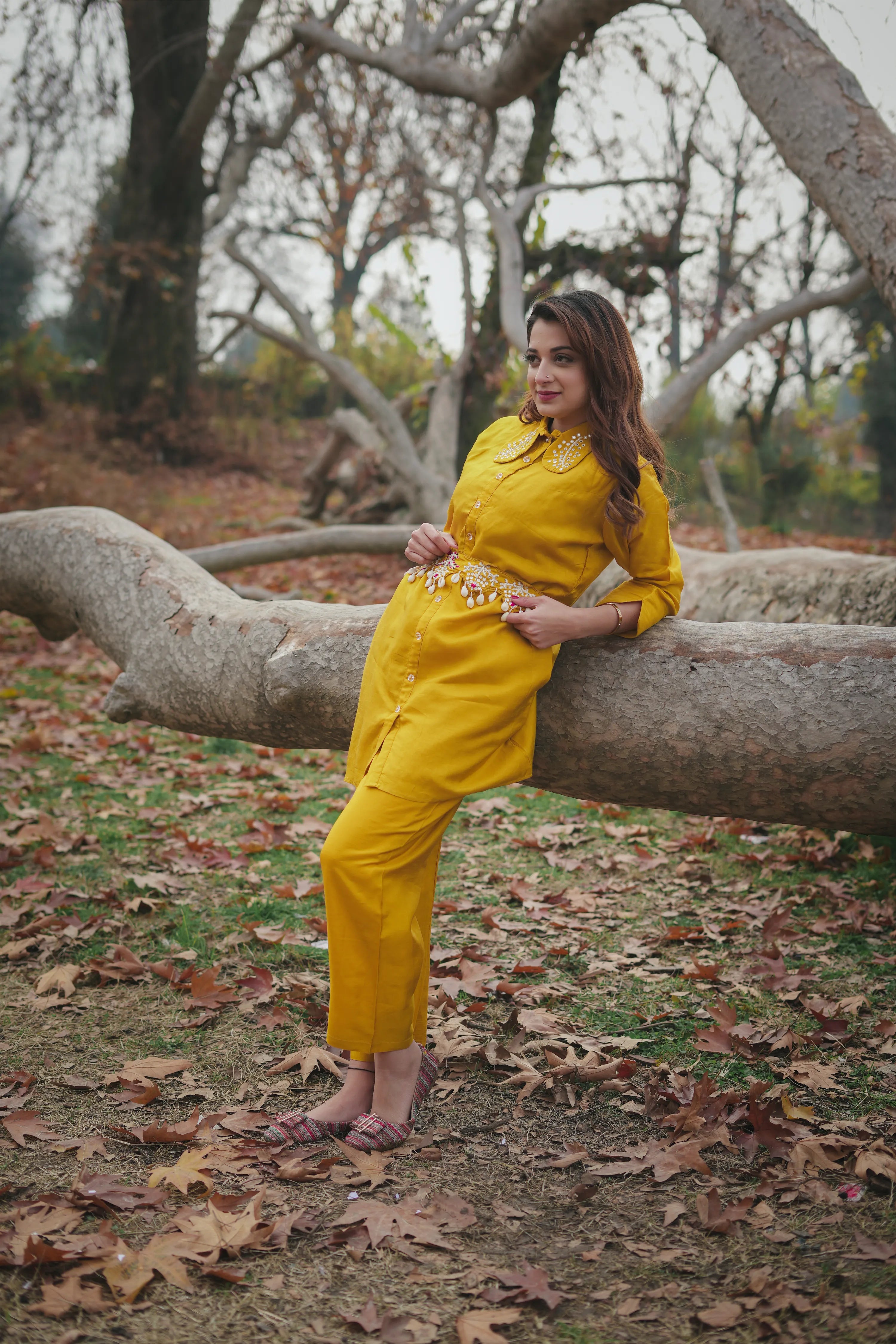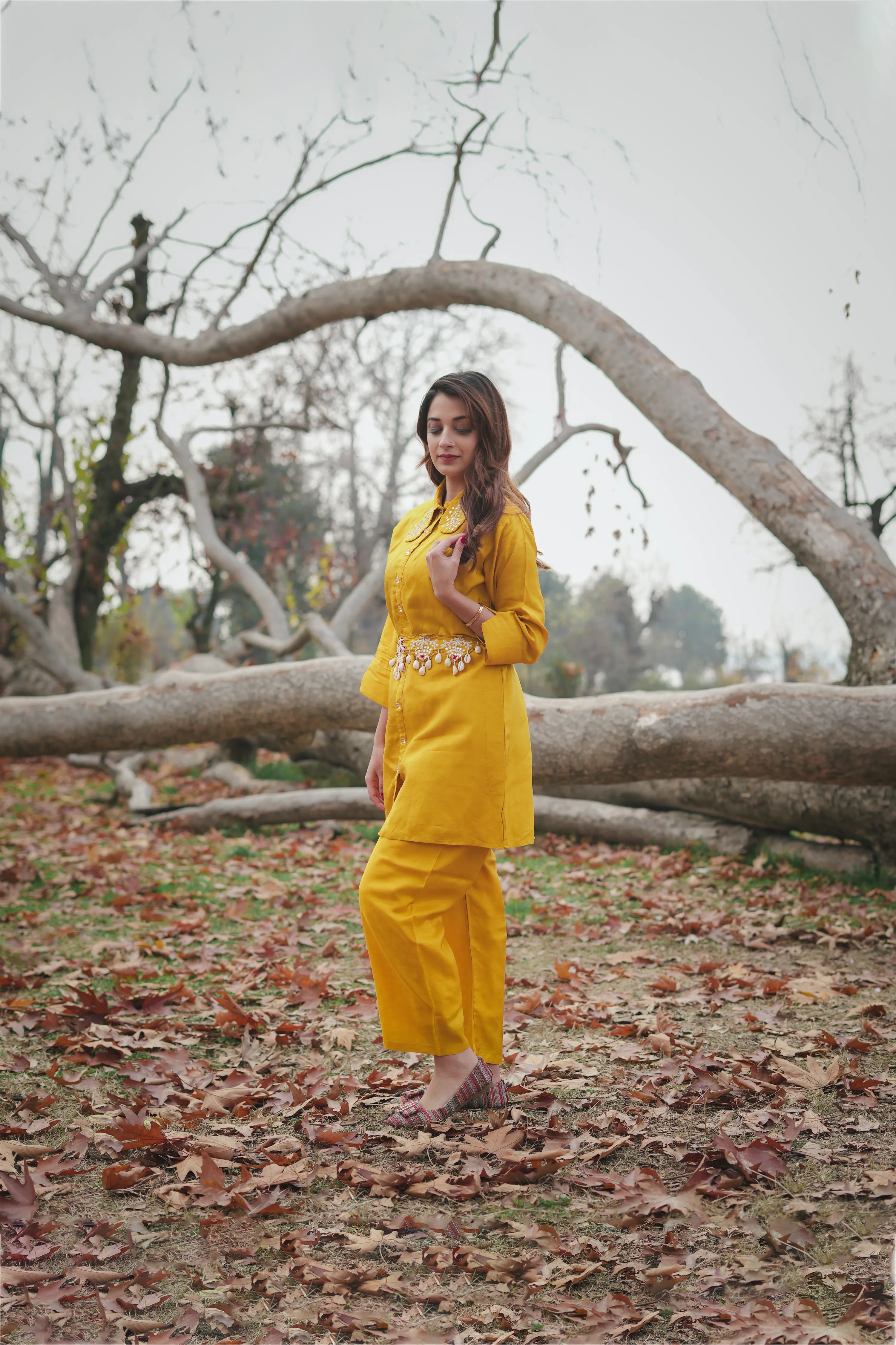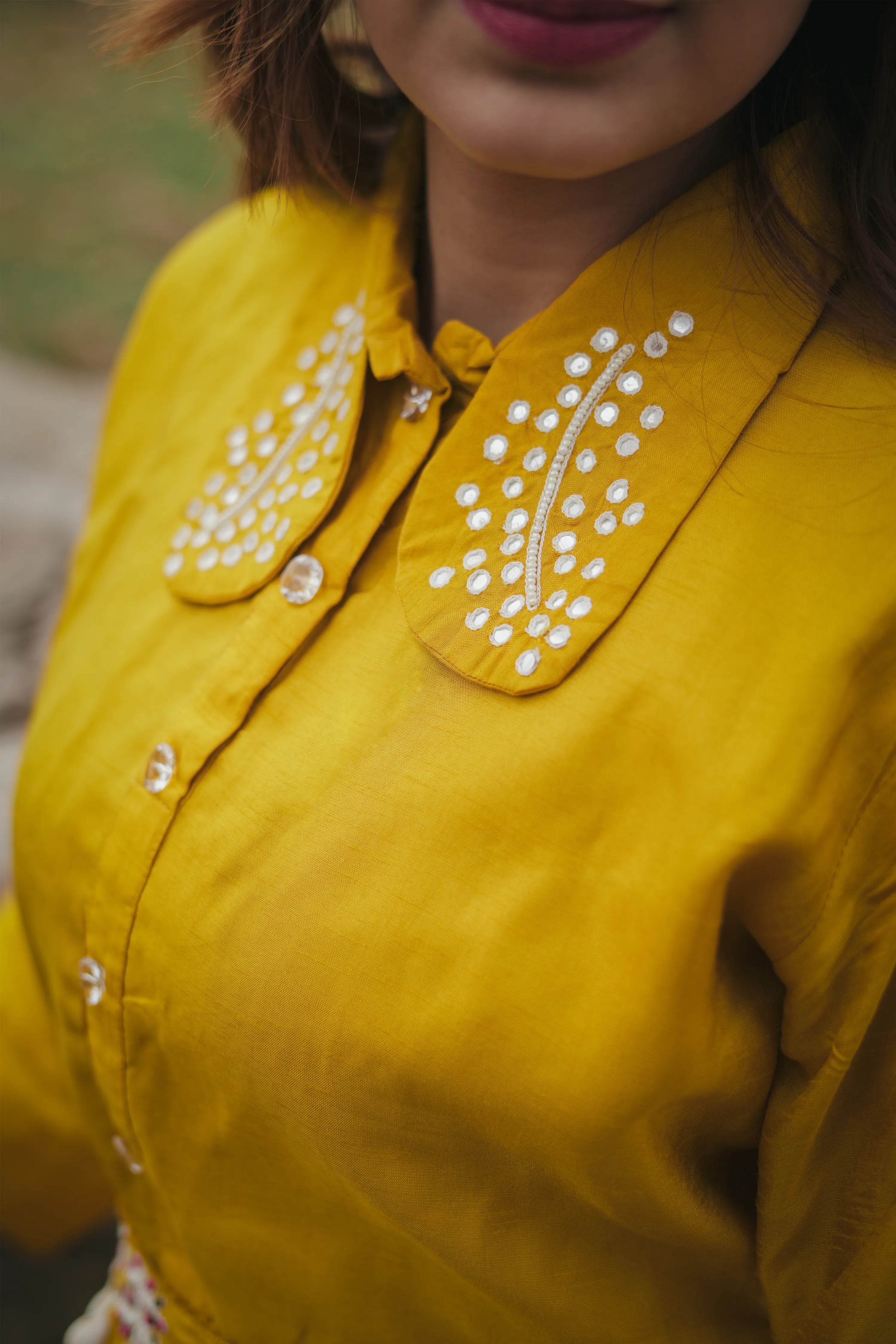 This Yellow Embroidered Dola Silk Co-Ord Set offers a stunning and vibrant look that combines intricate detailing with luxurious fabric—perfect for making a statement!