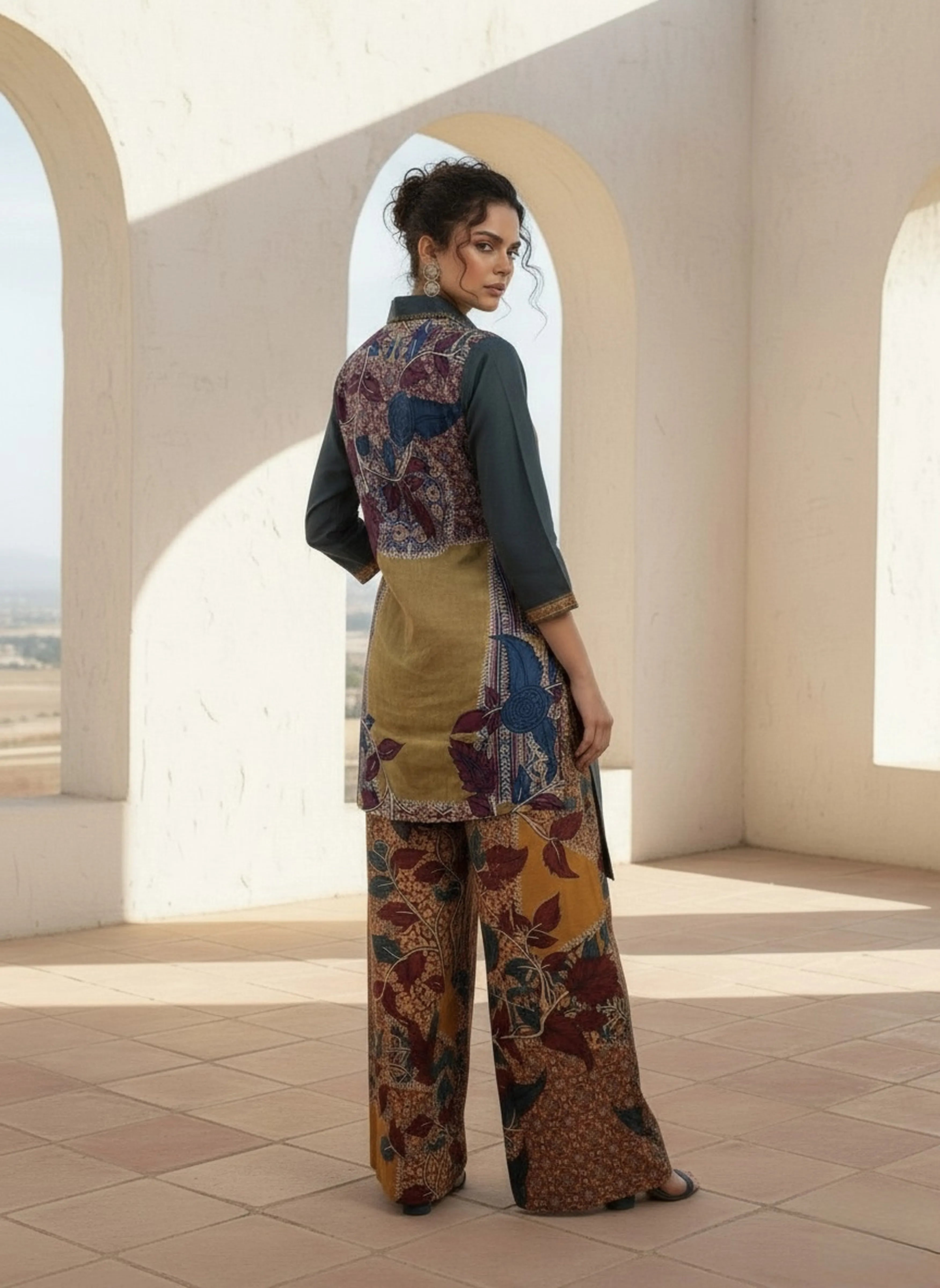 Brown 3 Piece Printed Co-ord Set in Cotton