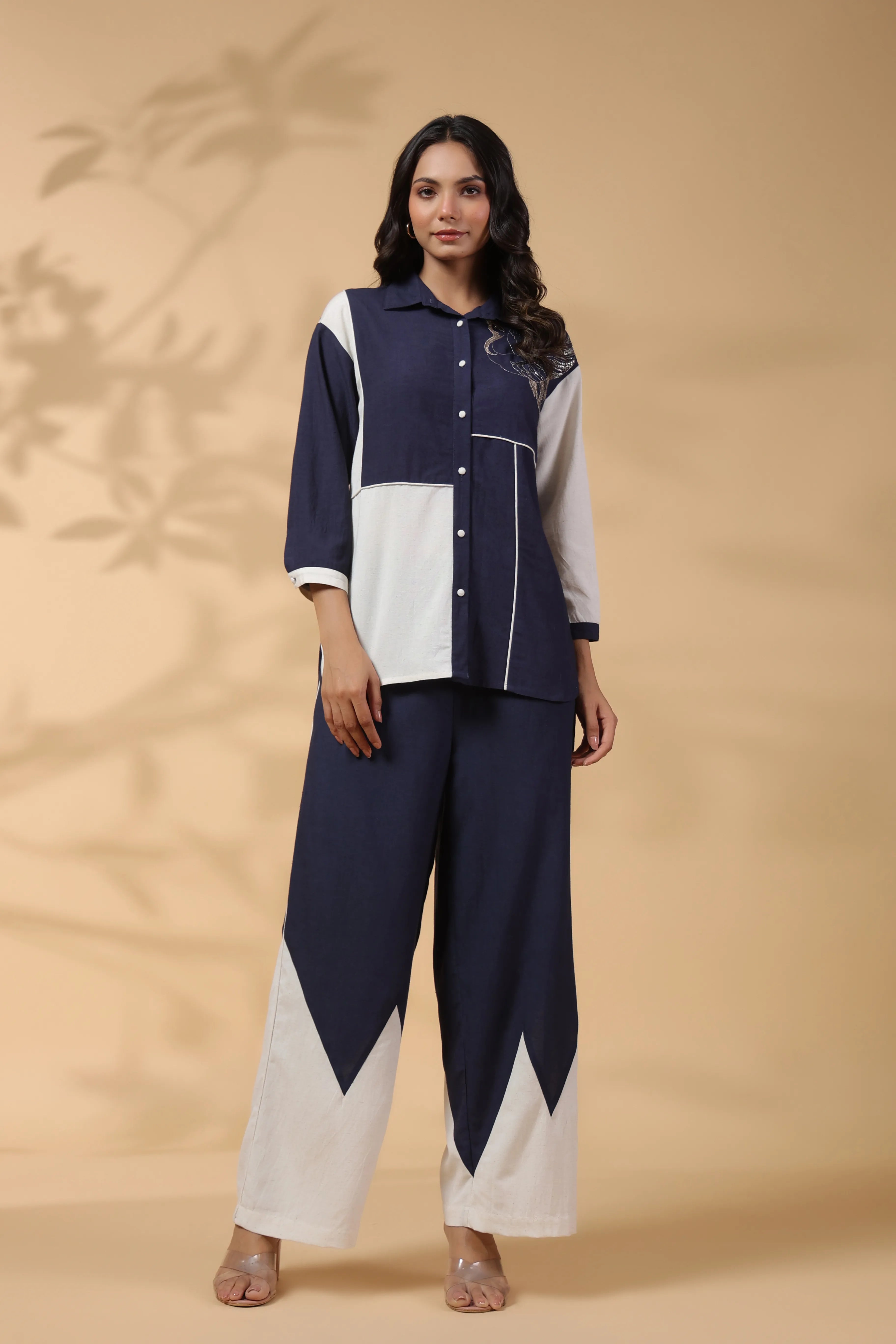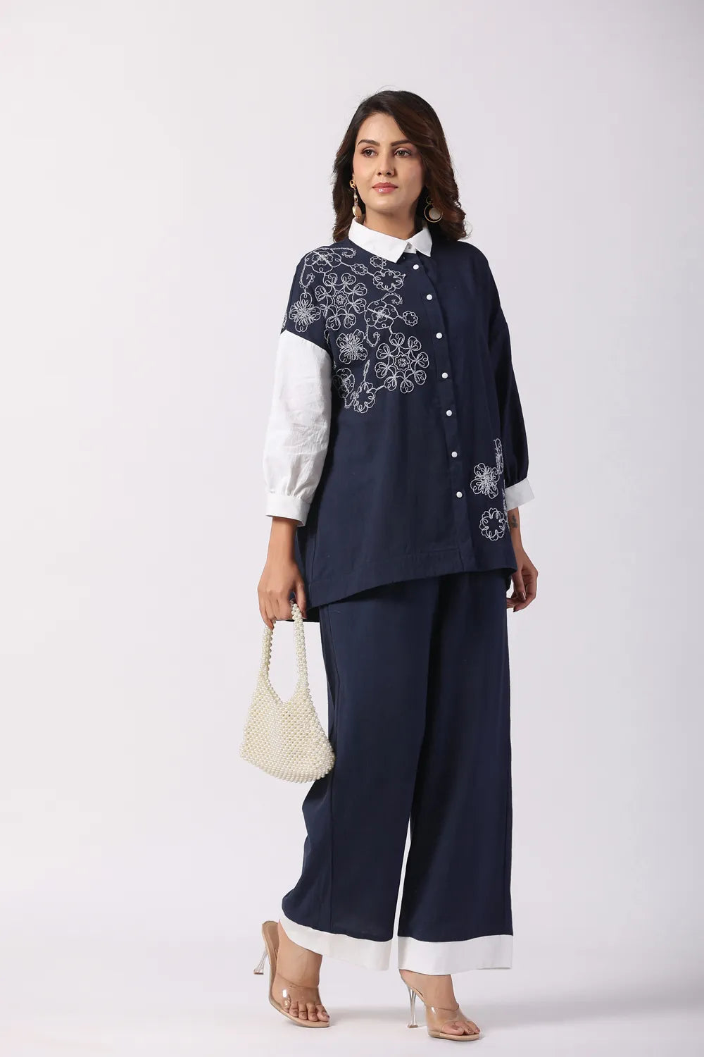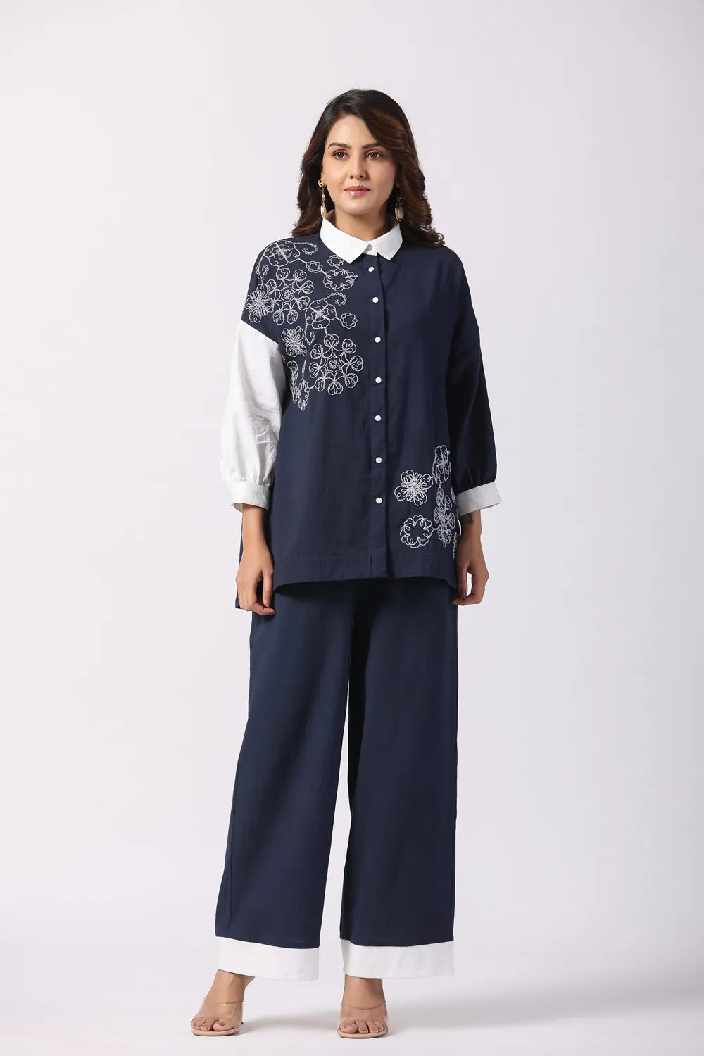 Navy Blue & White Embroidered Cotton Co-Ord set