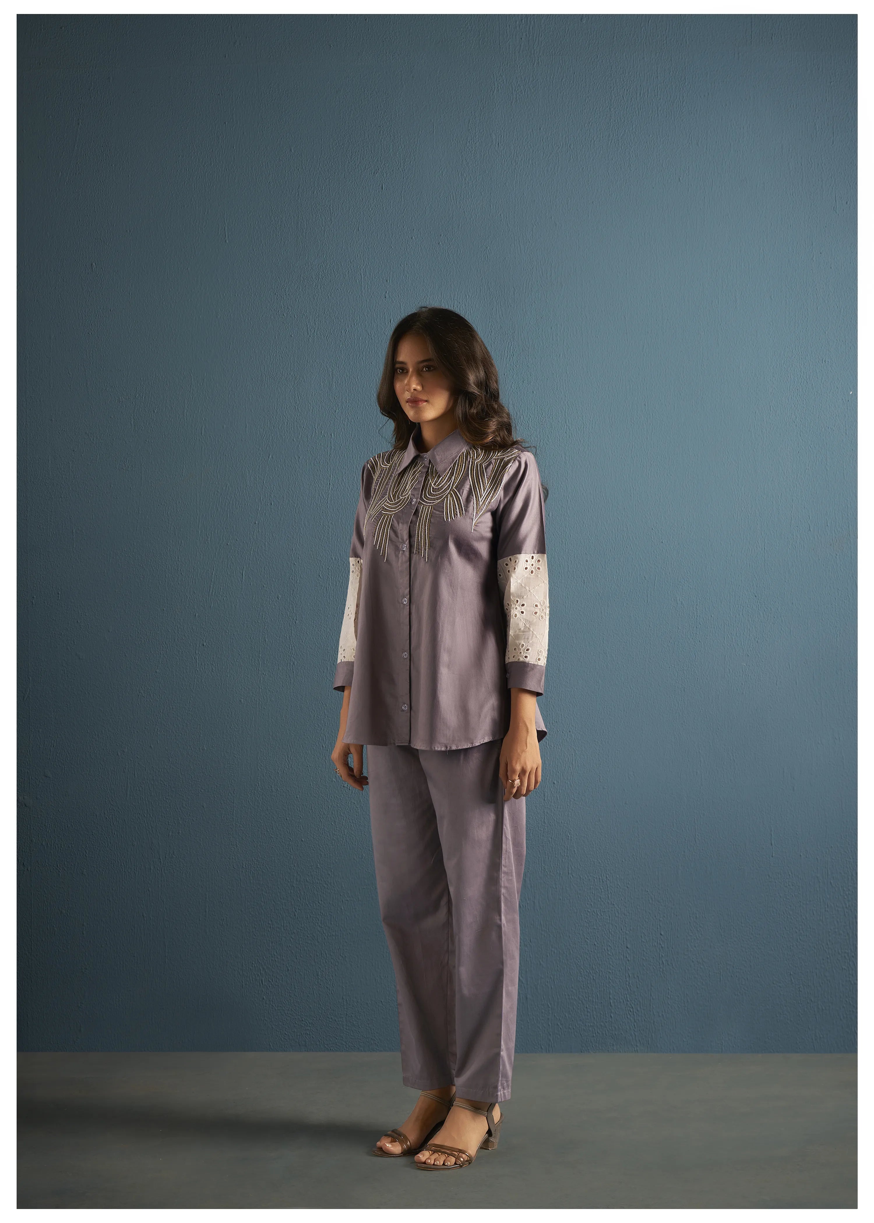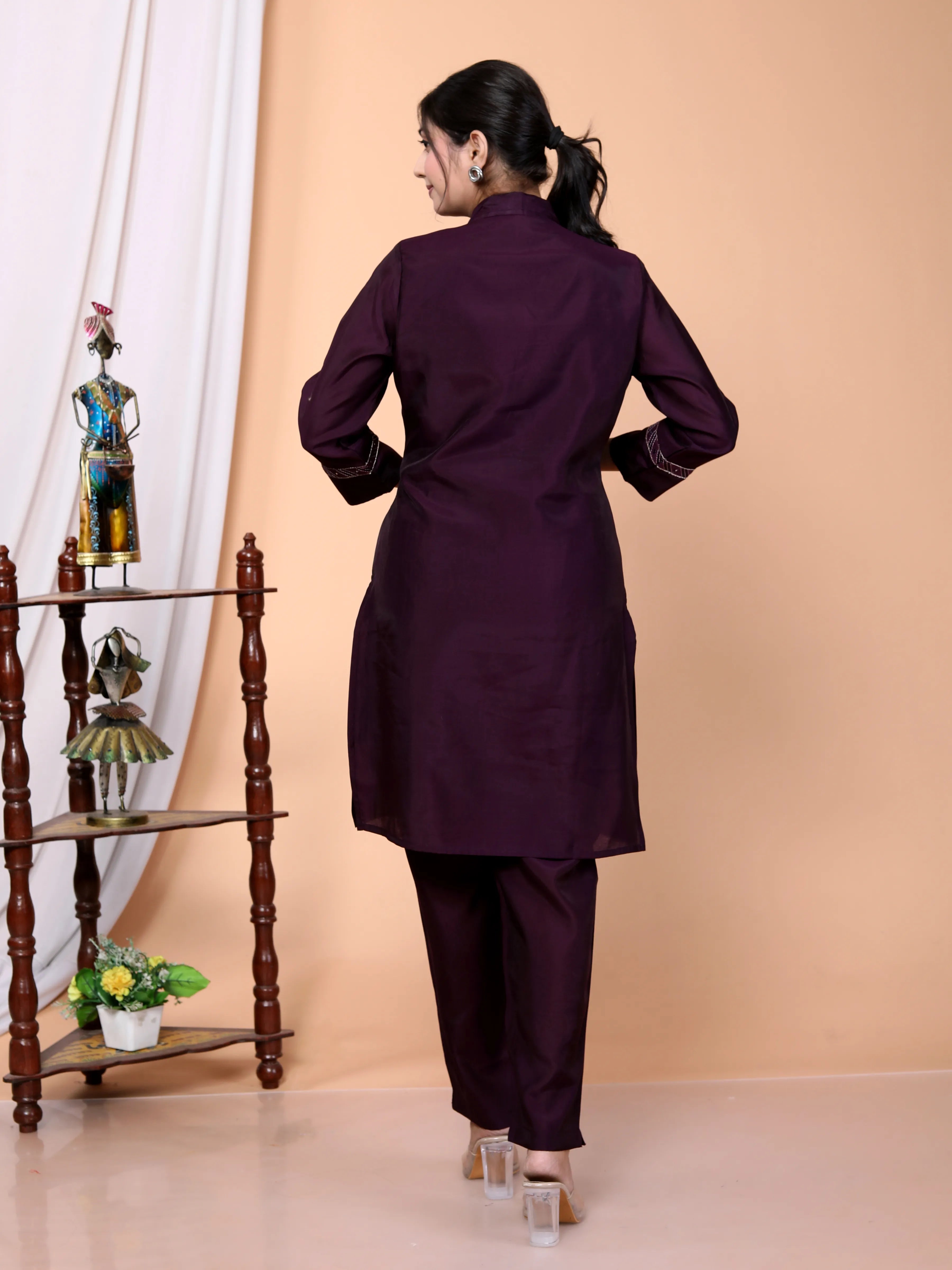 Purple Embroidered Roman Silk Co-Ord Set