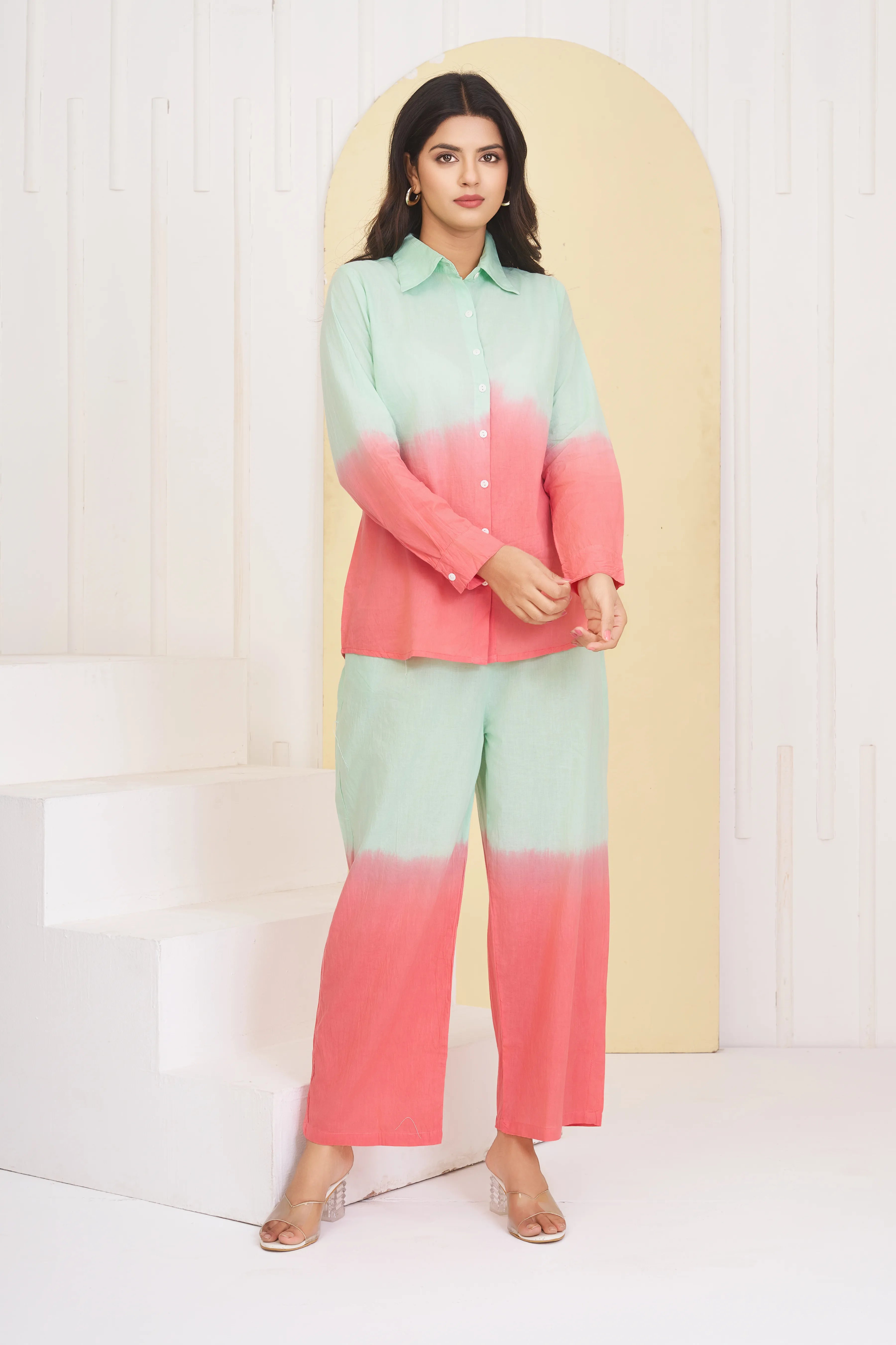 Mint Green & Orange Dyed Cambric Cotton Co-ord Set