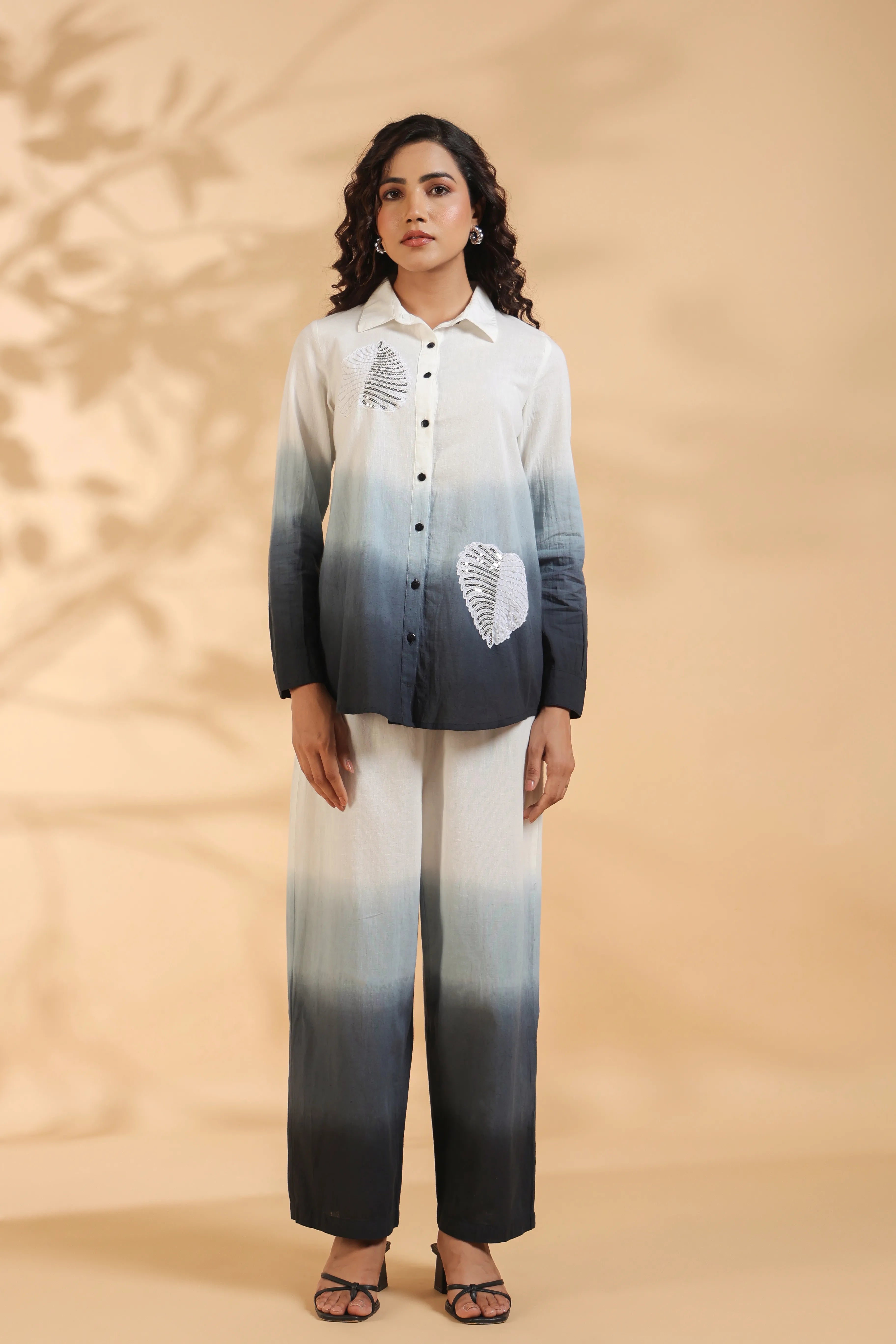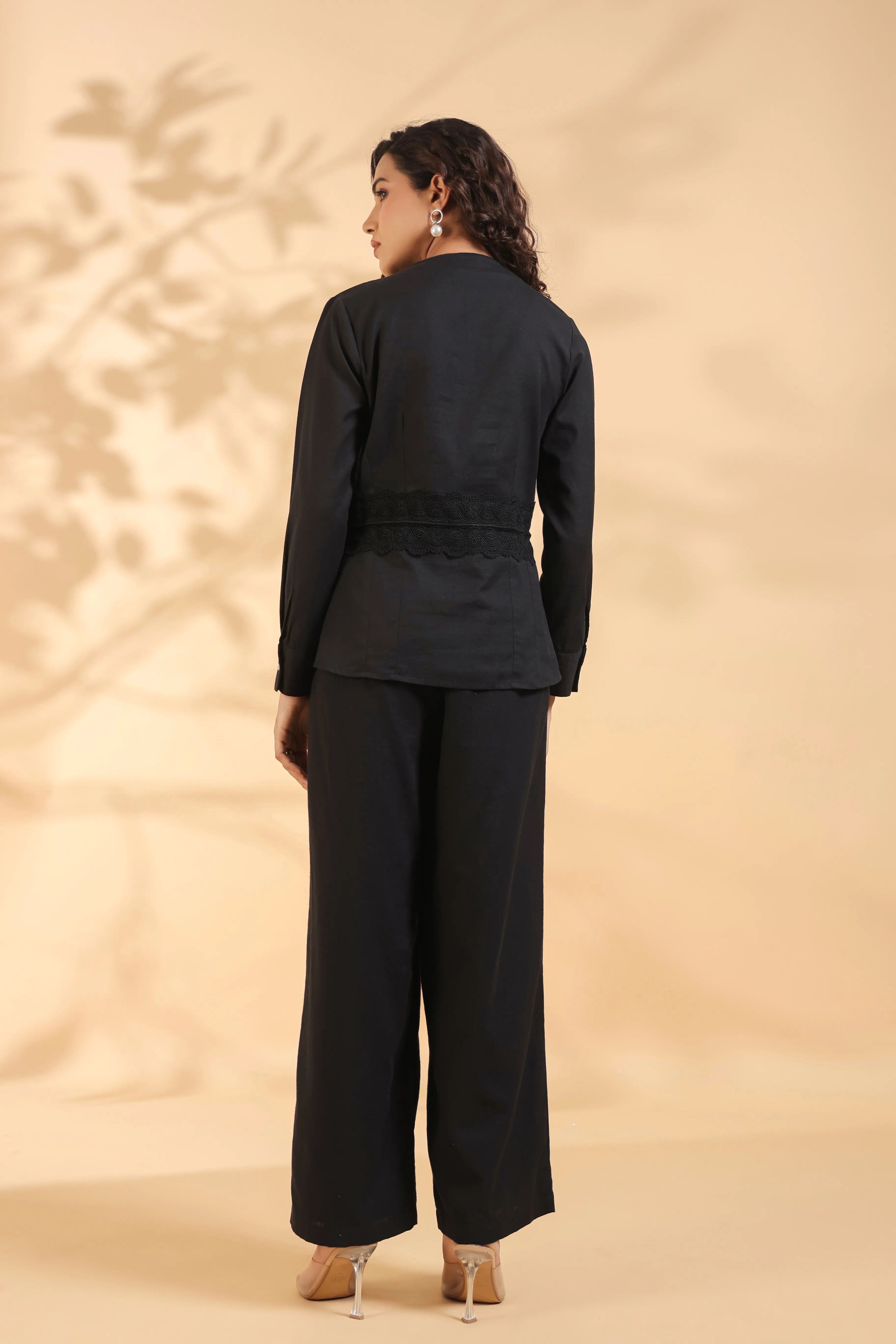 Black Beaded Flower Motif Tie Sequence Cotton Flex Co-ord Set