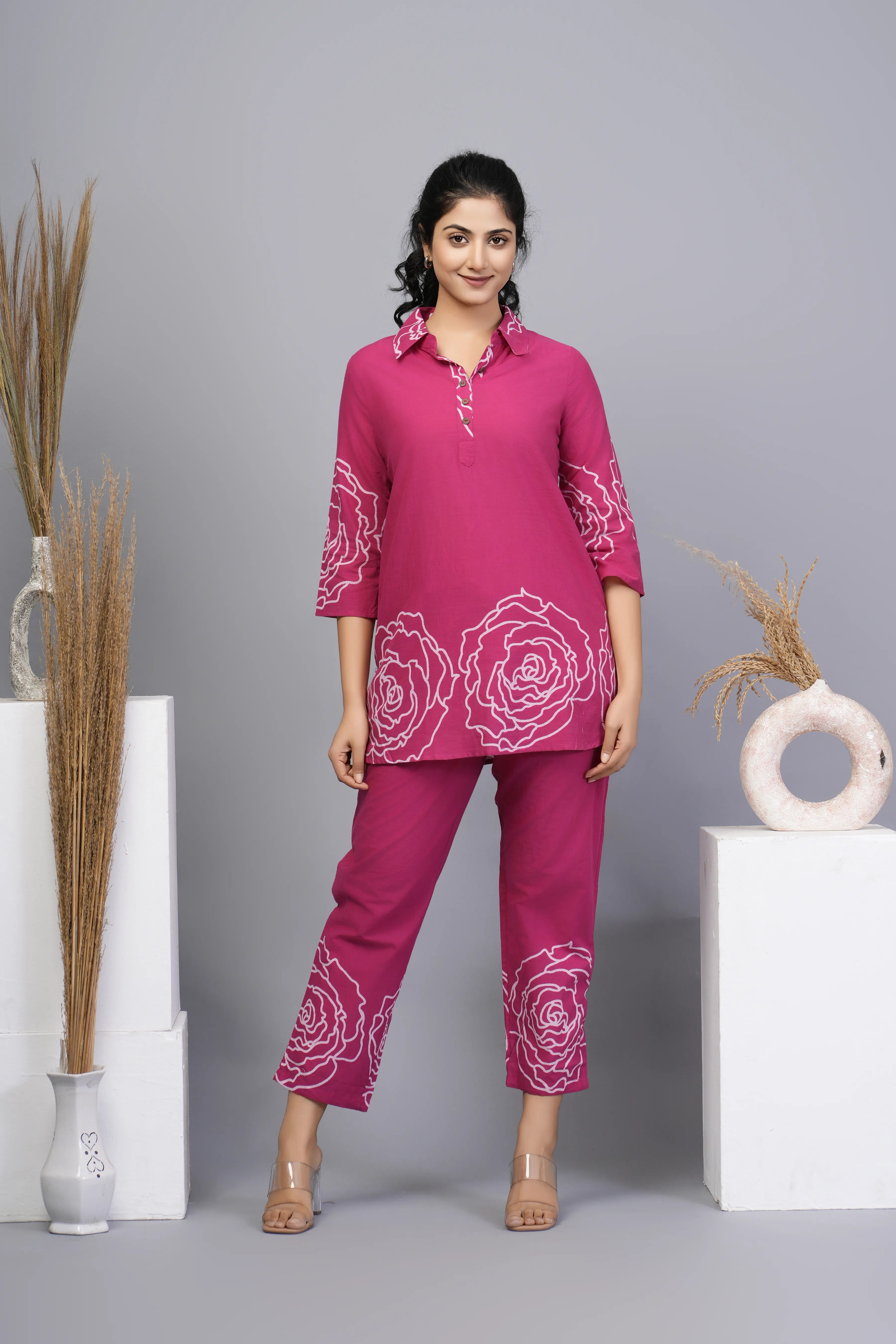 Rani Pink Floral Printed Cotton Co-ord Set