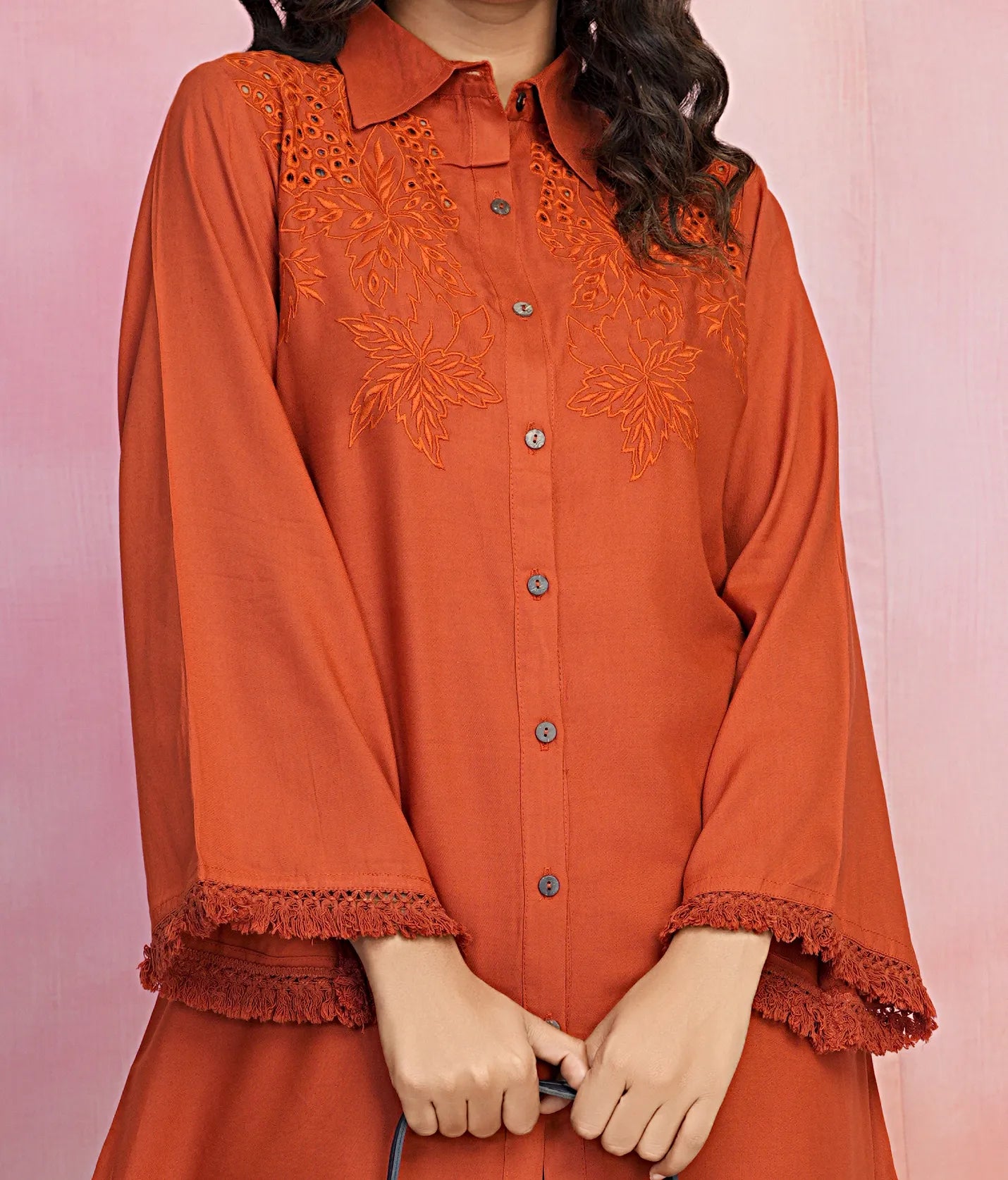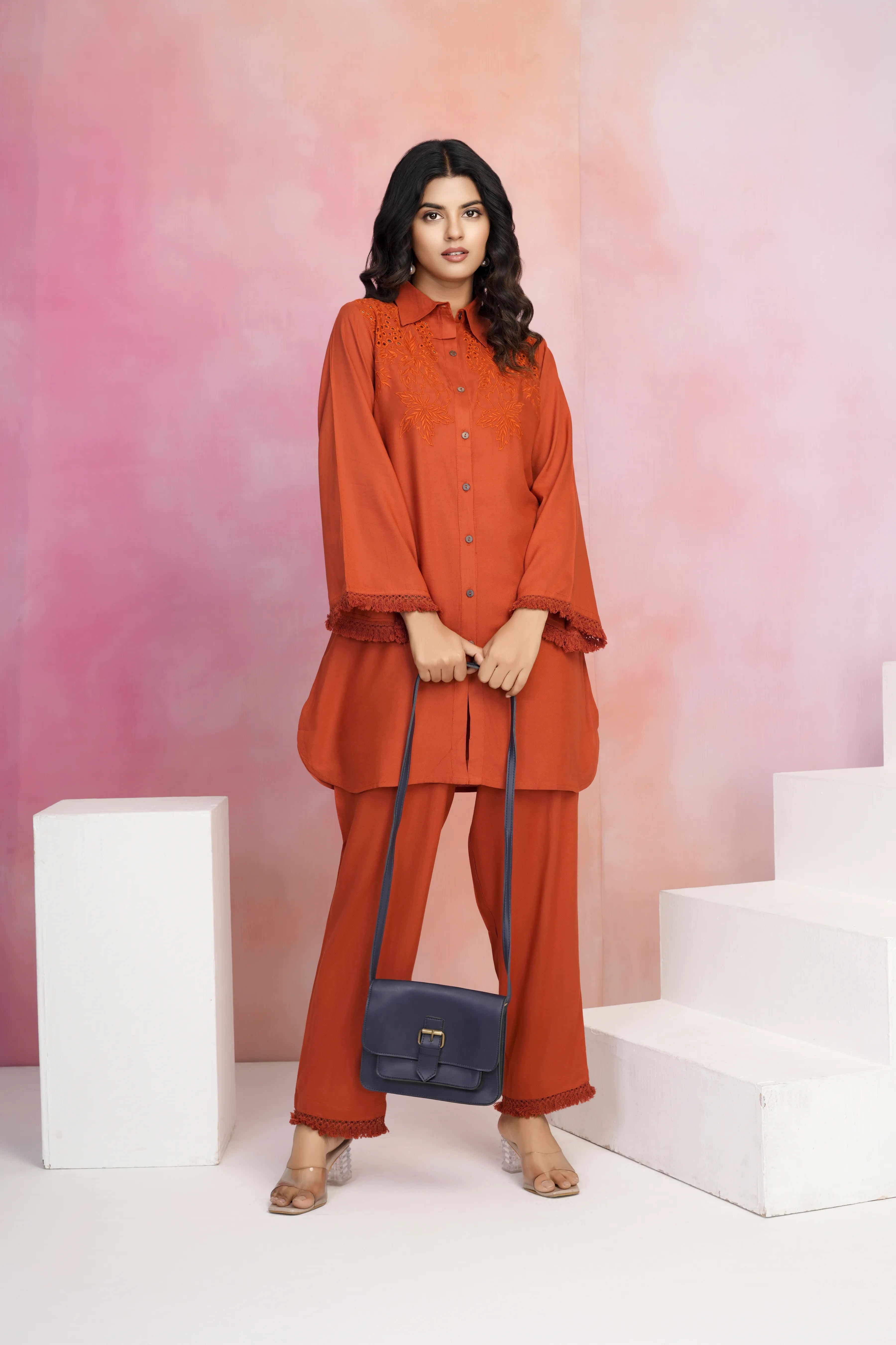 Tangerine Embroidered Viscose Rayon Co-ord Set