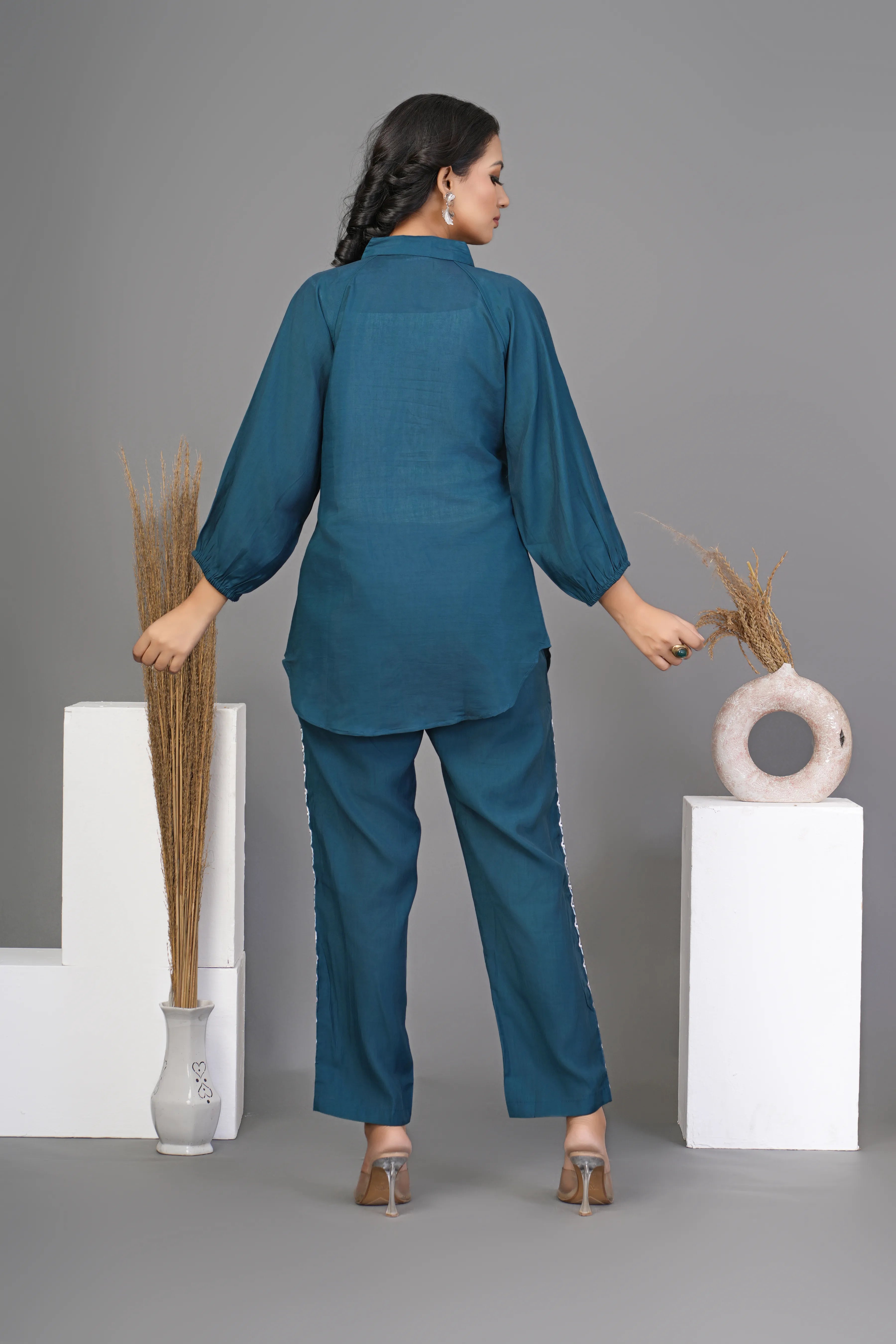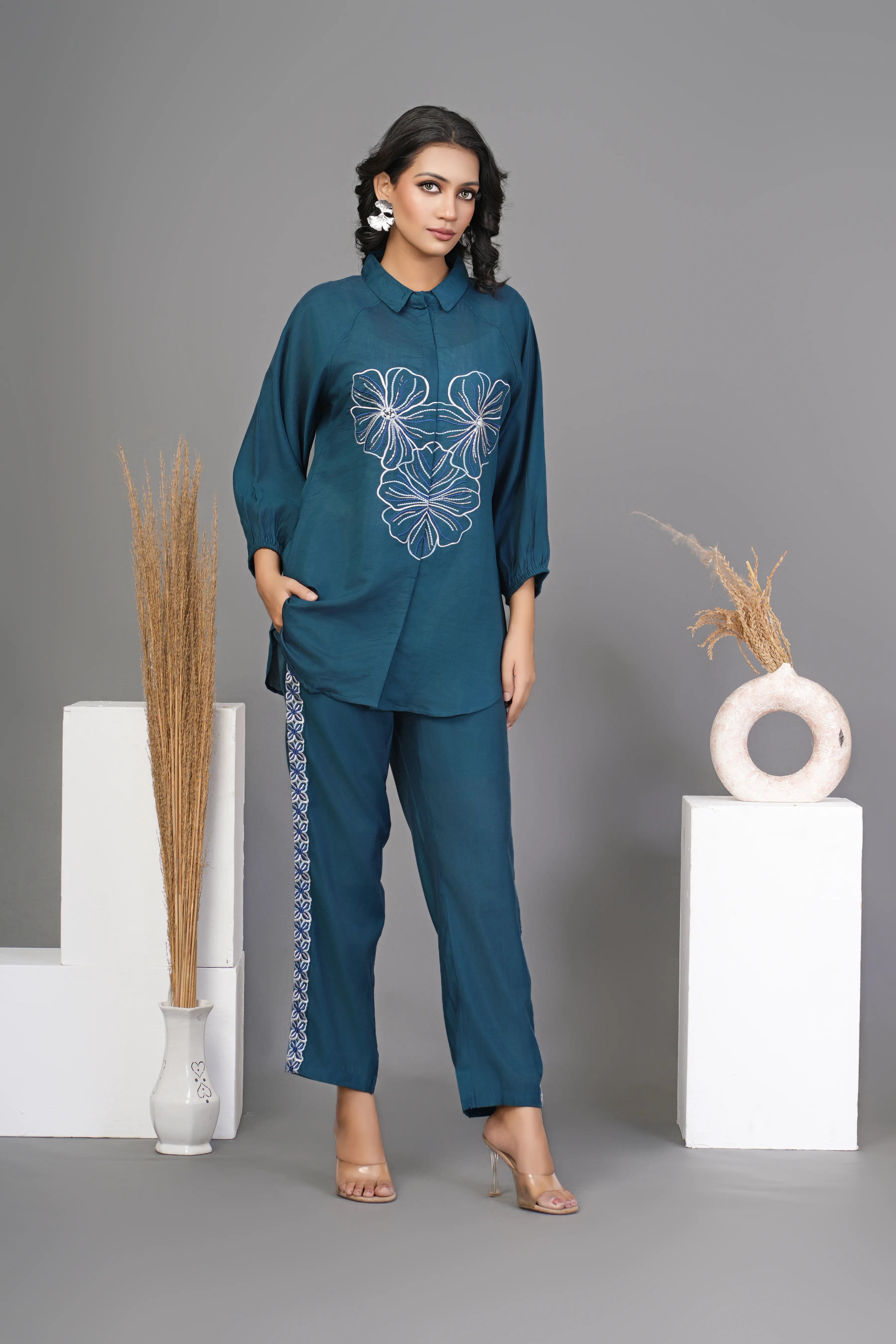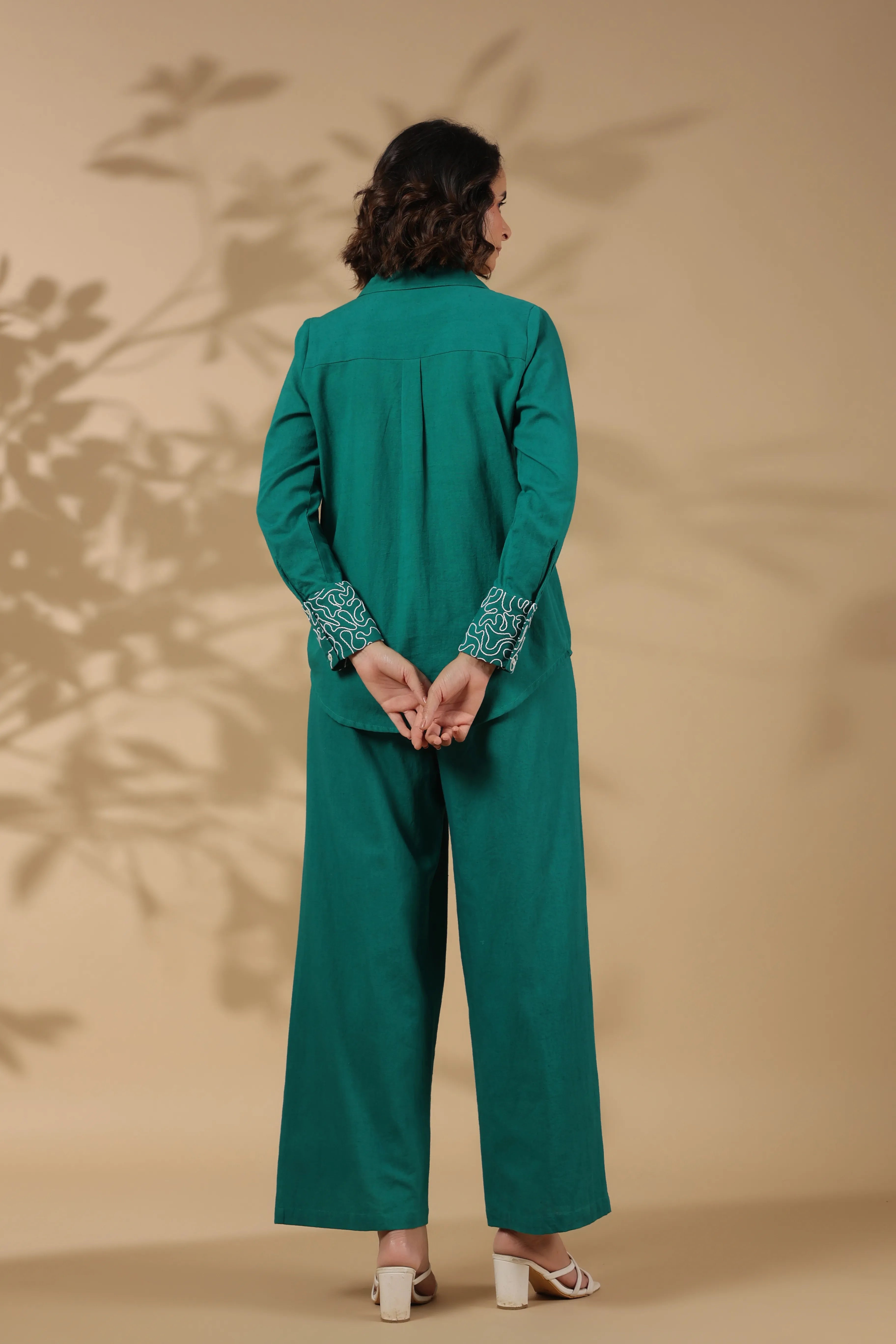 Peacock Green Embroidered Shirt With Pant