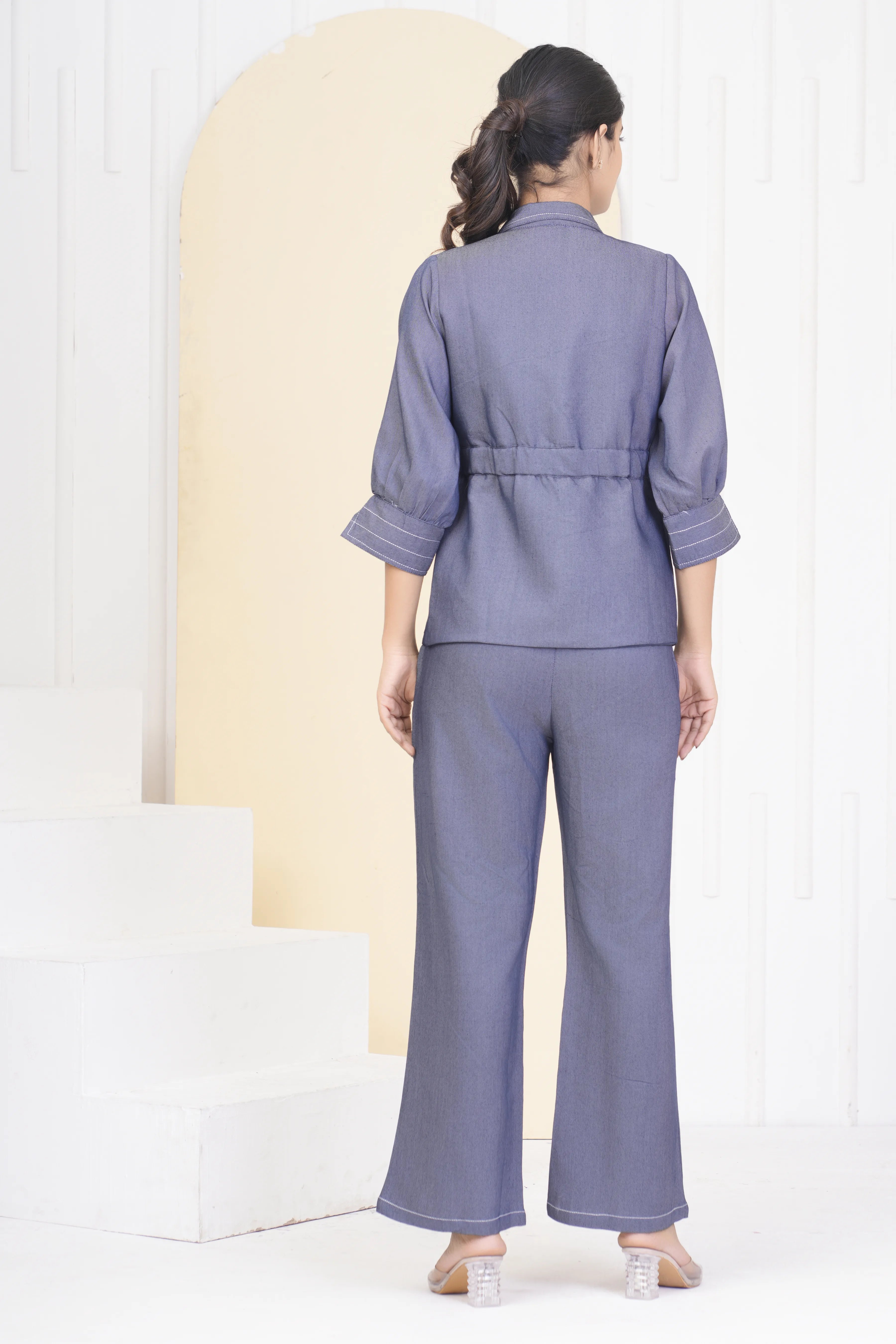 Blue Color Denim with Tie Belt with 3/4 sleeves Co-ord Set