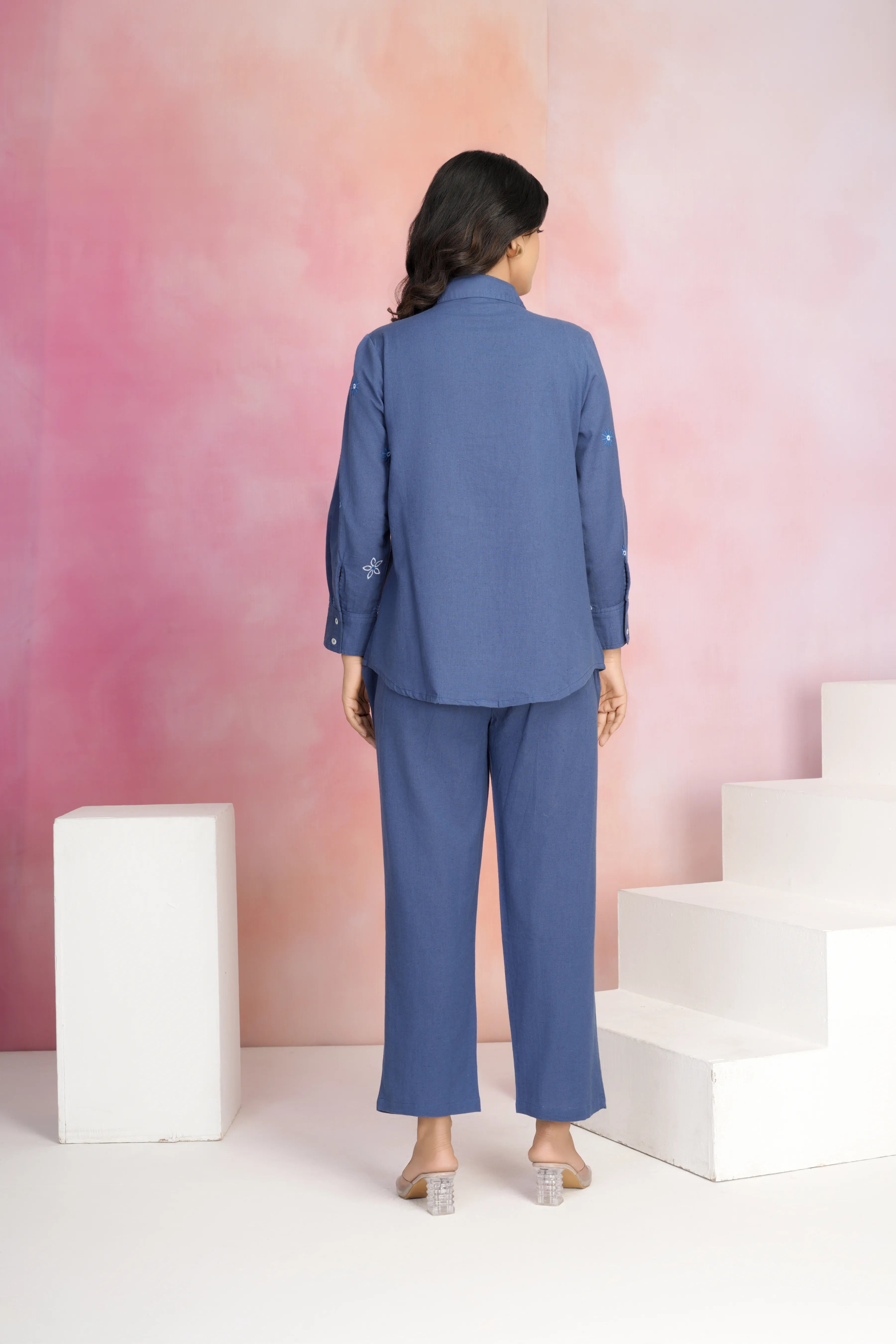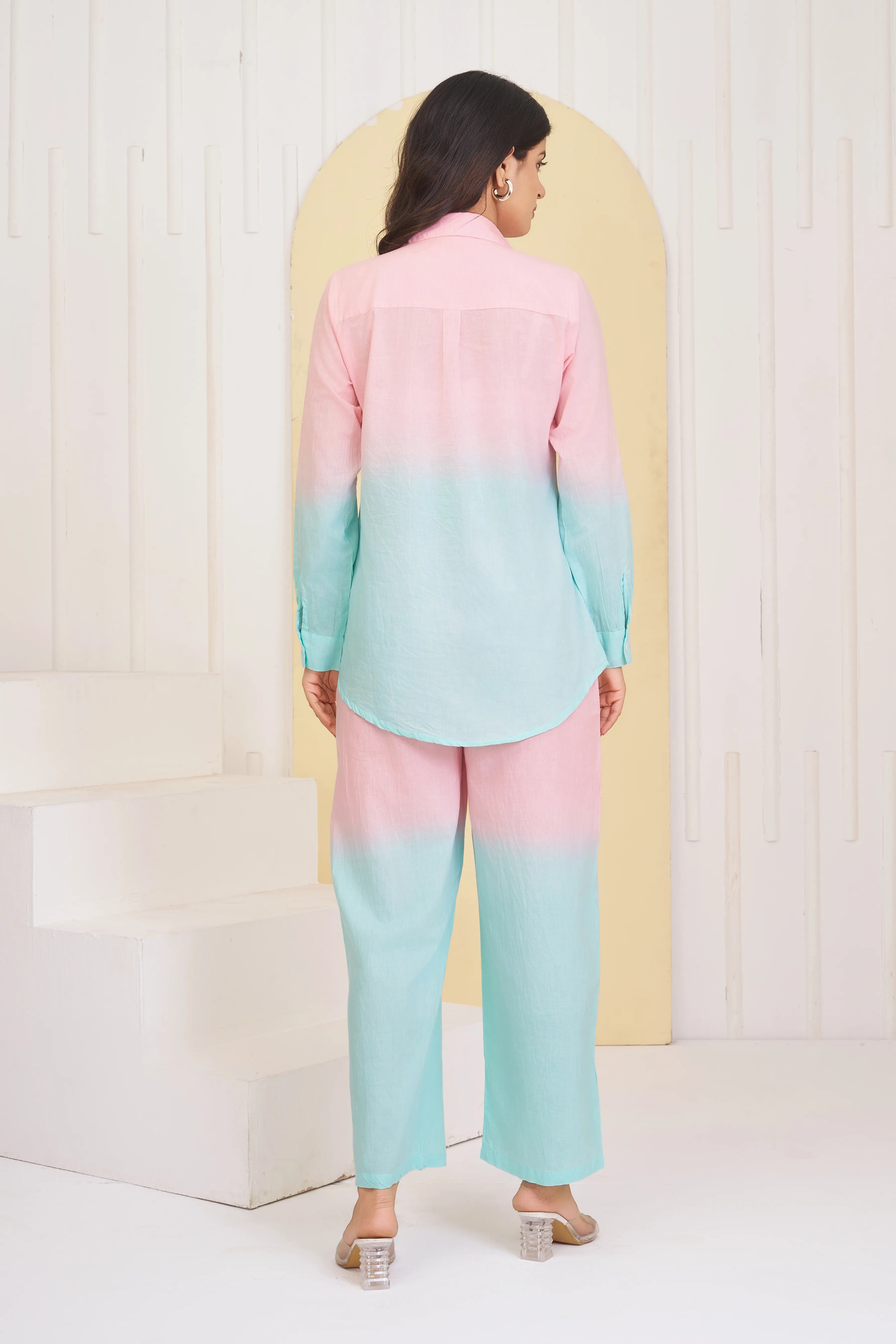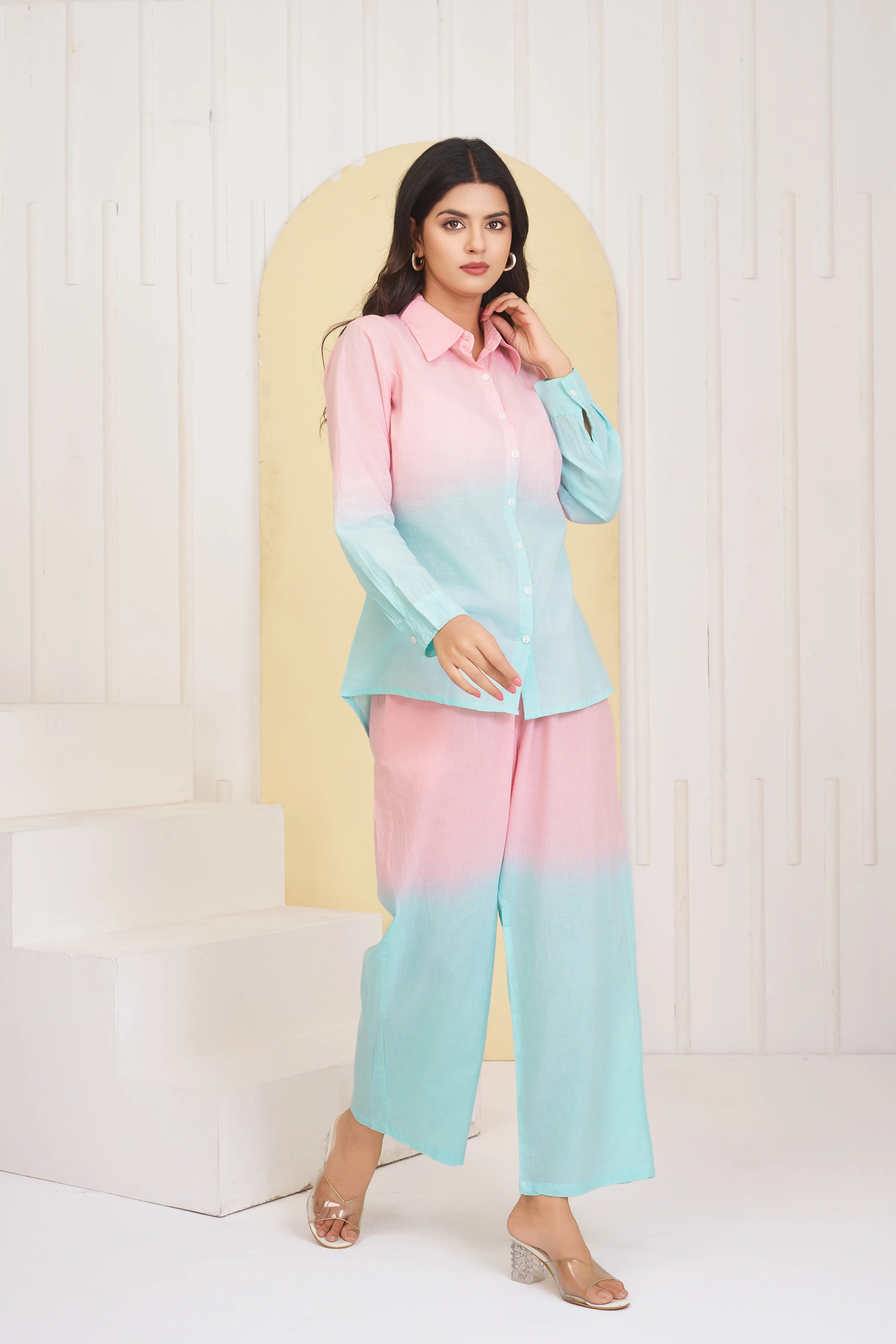 Pastel Blue - Pink Dyed Cambric Cotton Co-ord Set