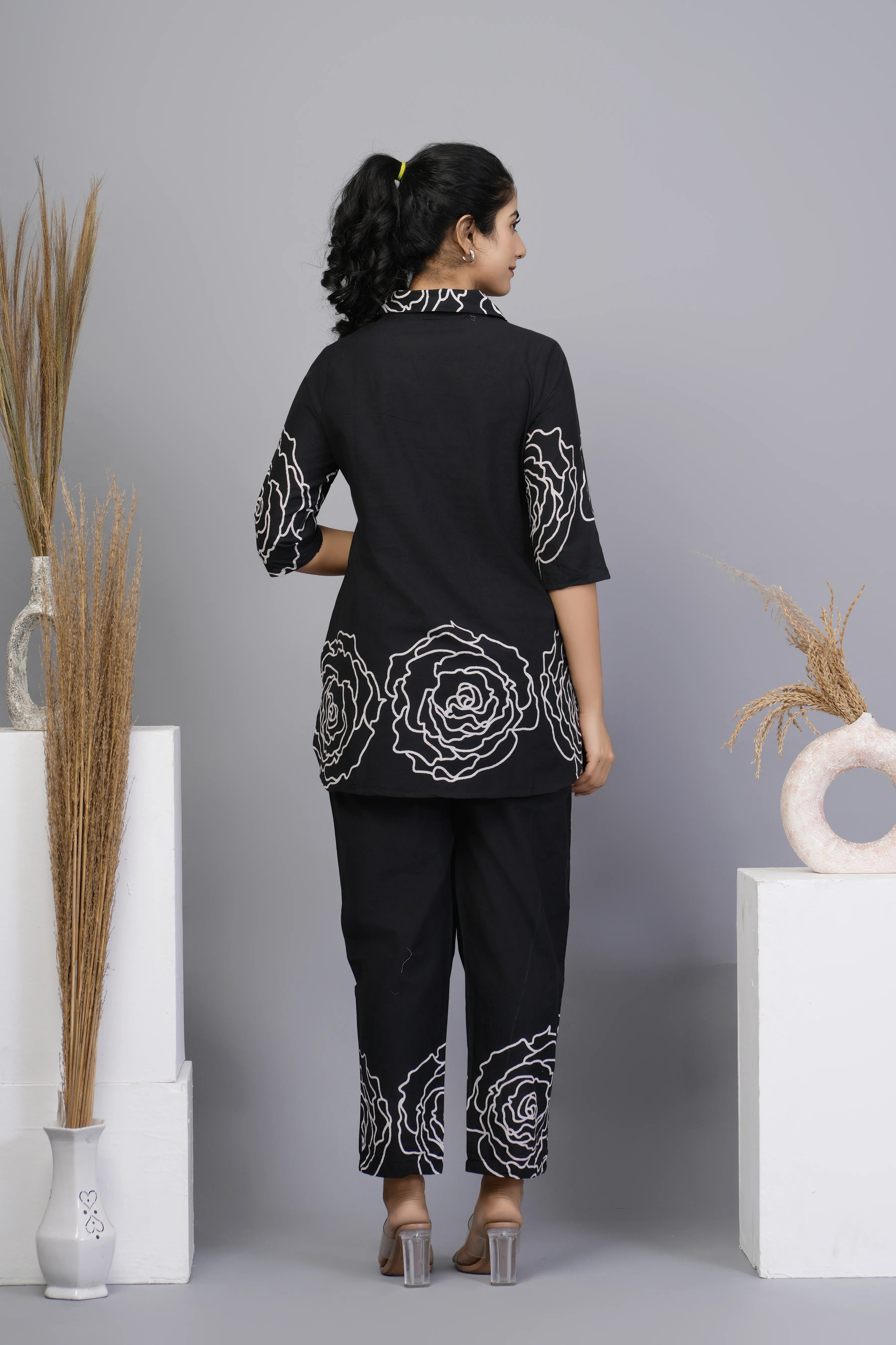 Black Floral Printed Cotton Co-ord Set