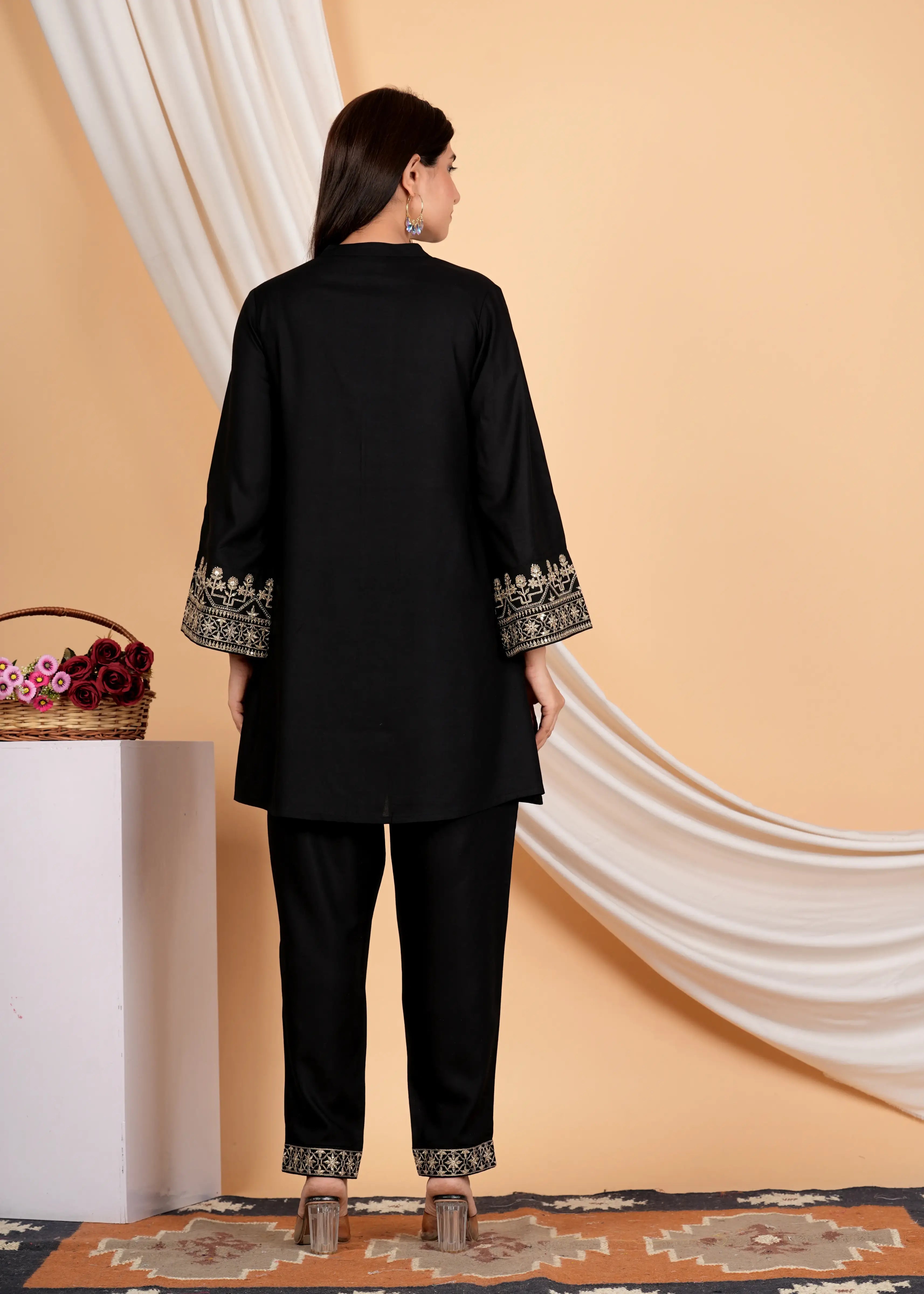 Black Golden Lurex Thread Embroidered Cotton Co-Ord Set