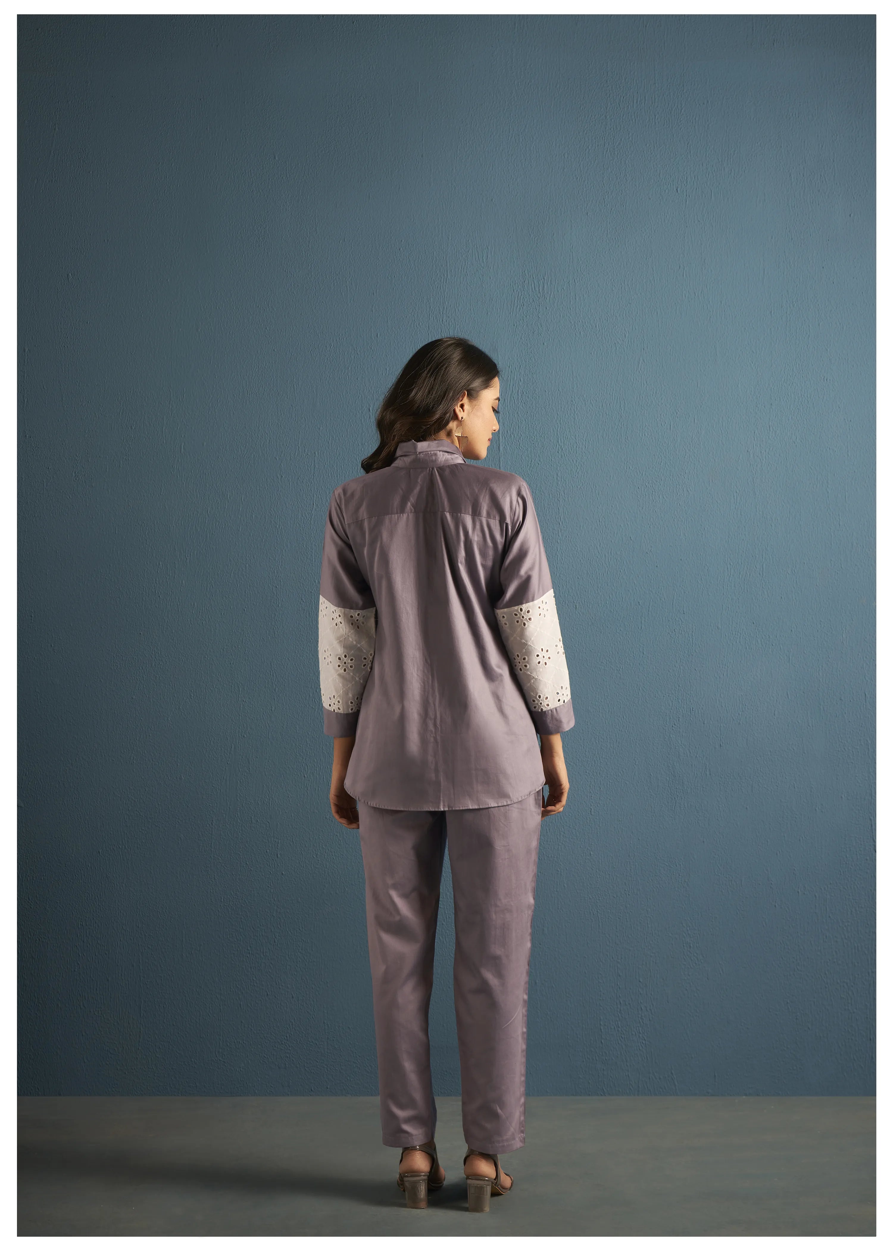 Elegant Mauve Cotton Satin Embroidery And Schiffli Detail Tunic Set