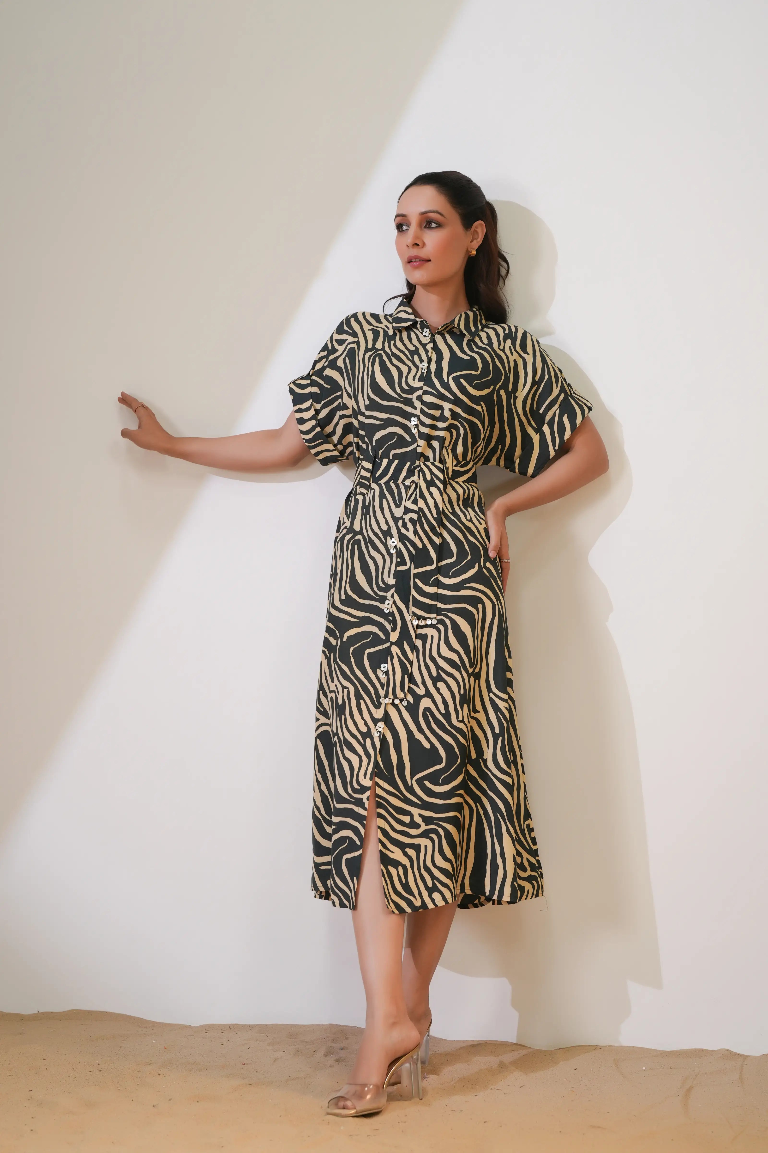 Step into effortless elegance with this stunning abstract stripe midi dress!