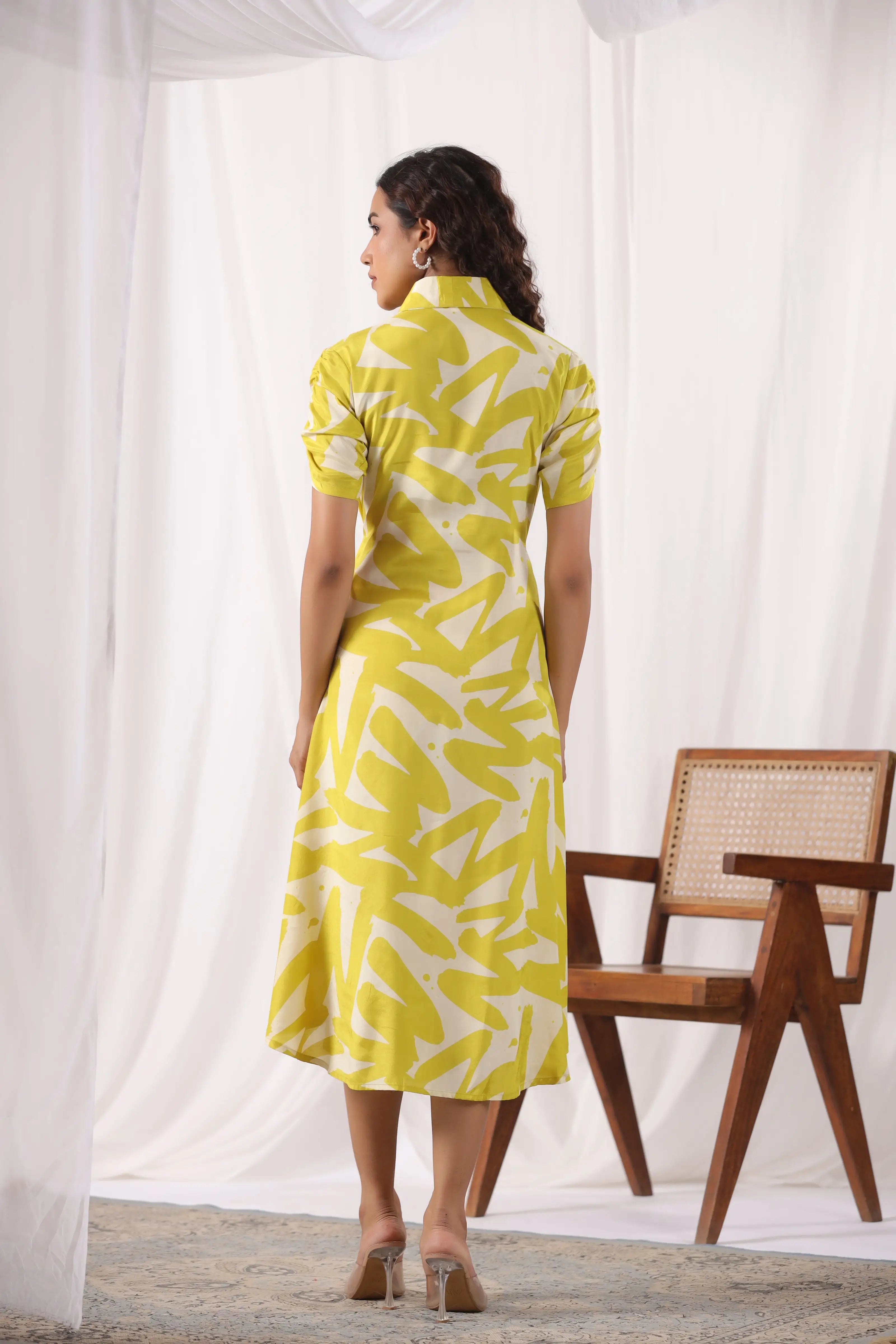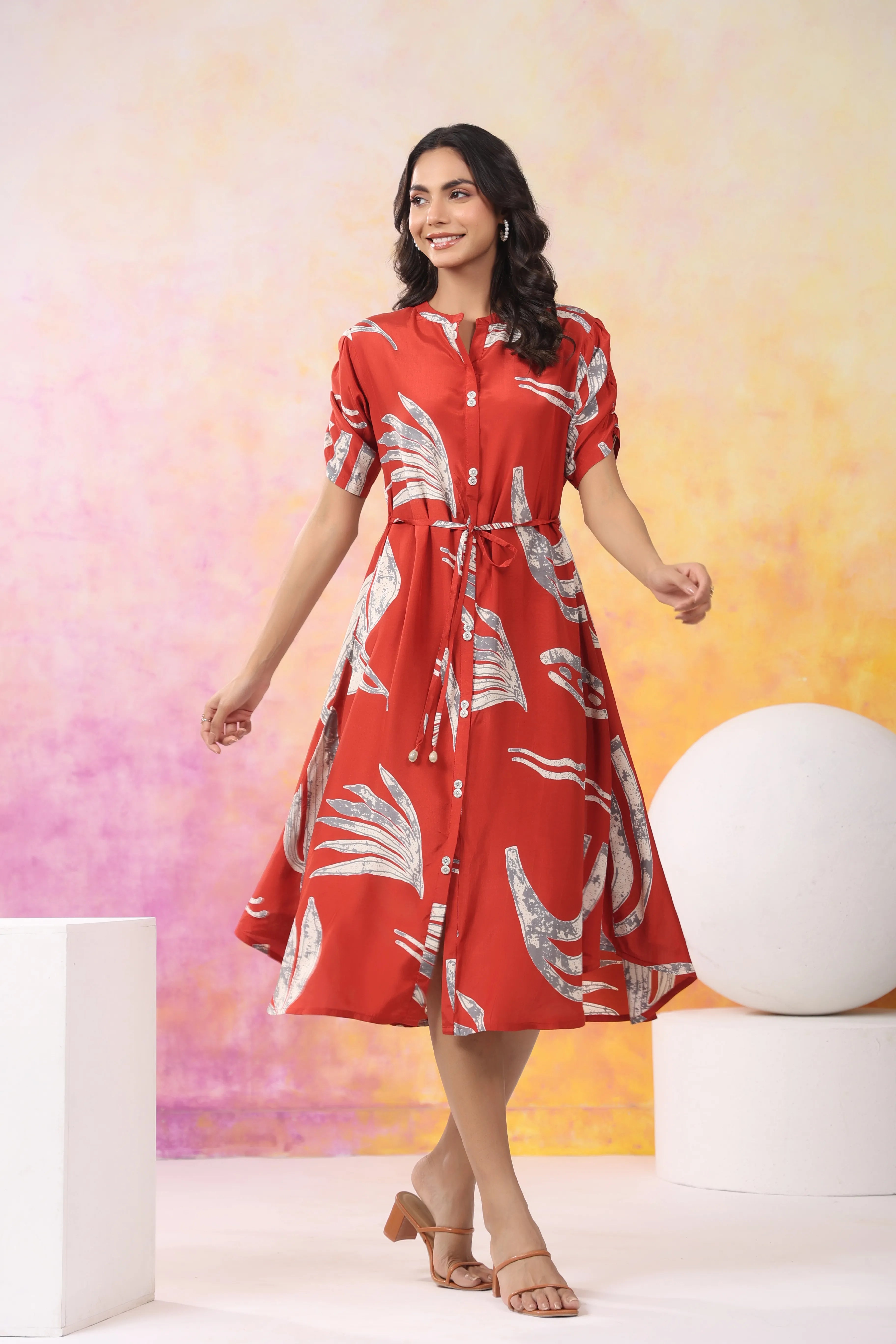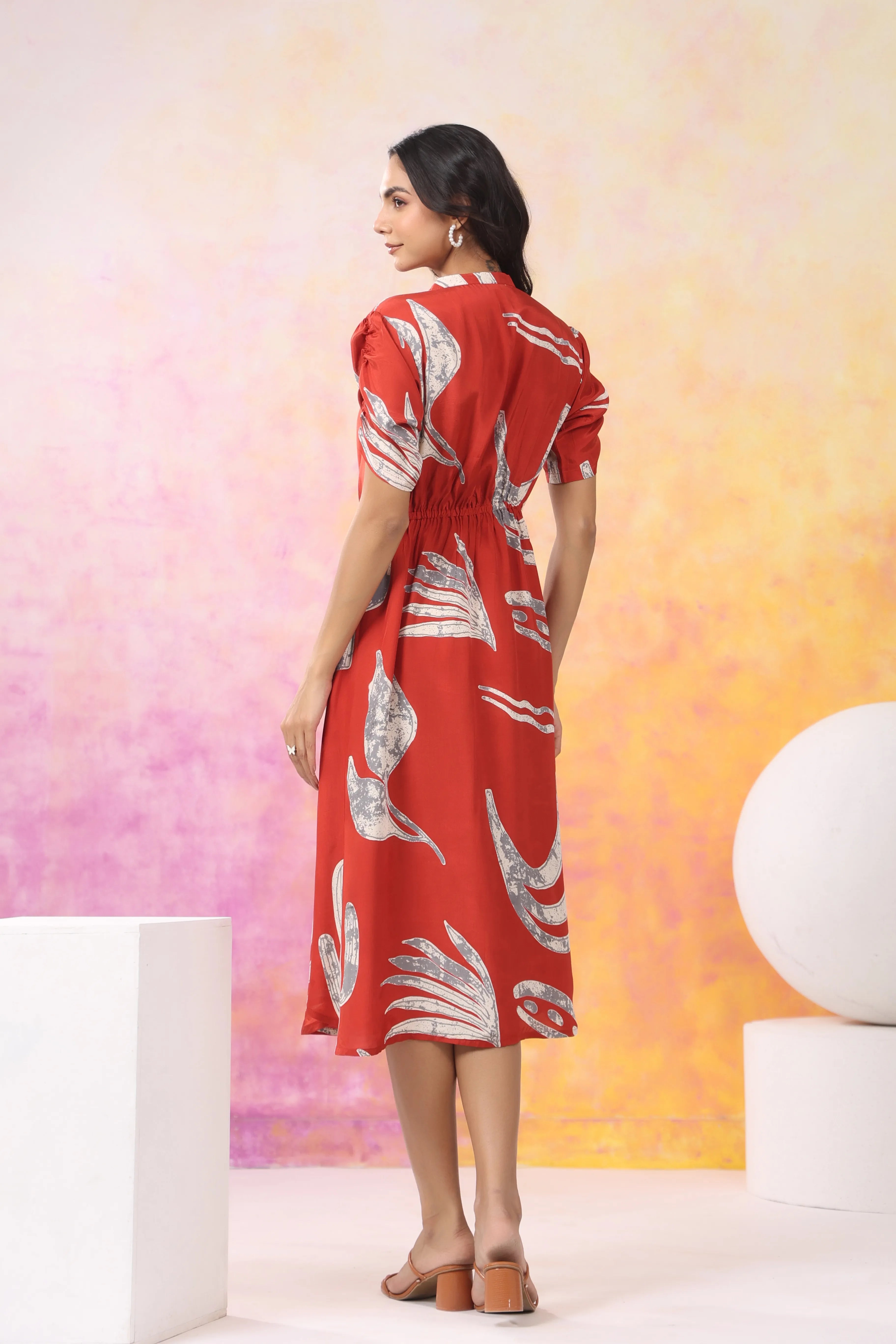 Rust and Grey Bold Abstract Printed Motif Midi Dress