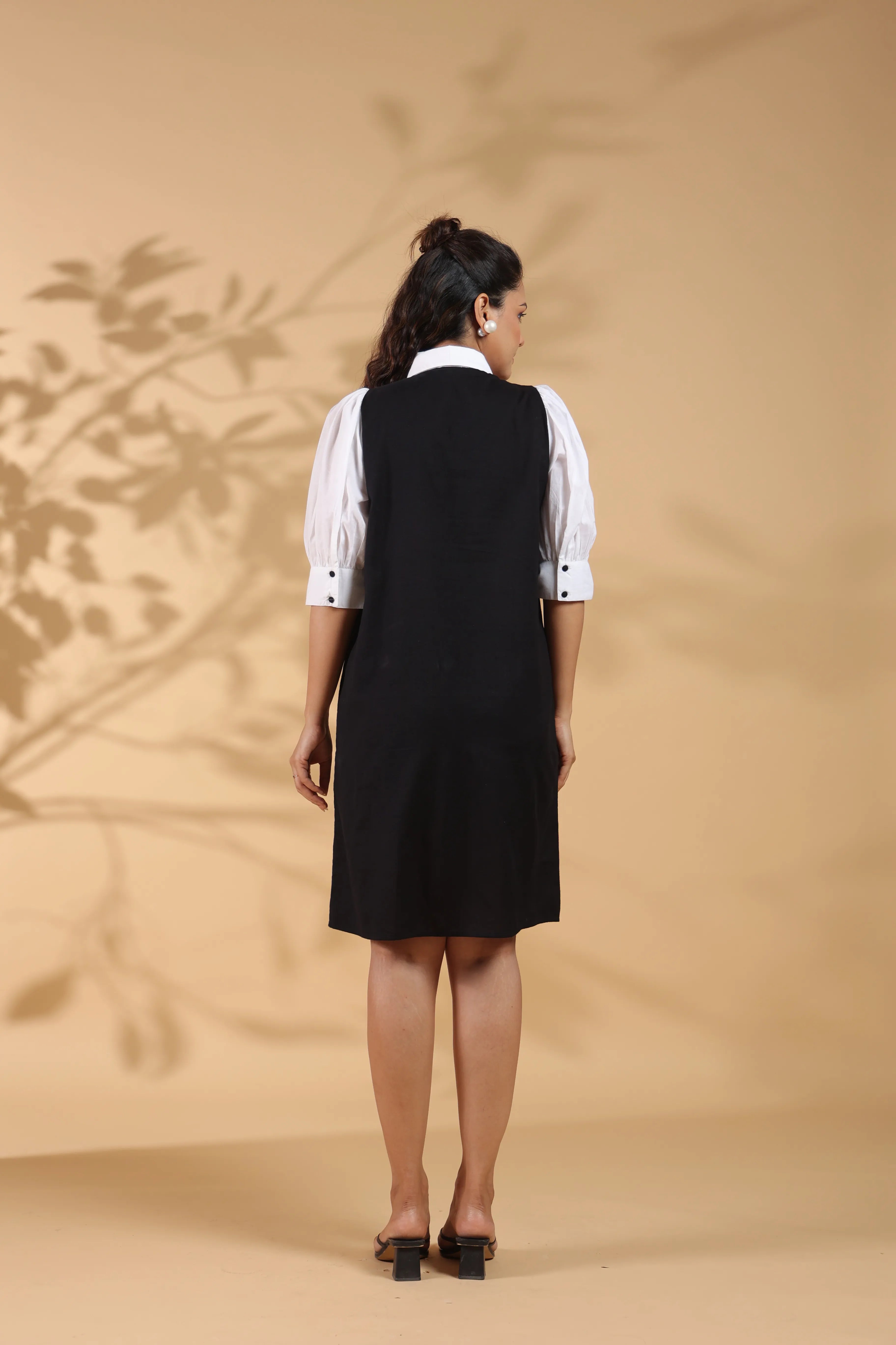 Black Cotton Flex Embroidered Mini Shirt Dress