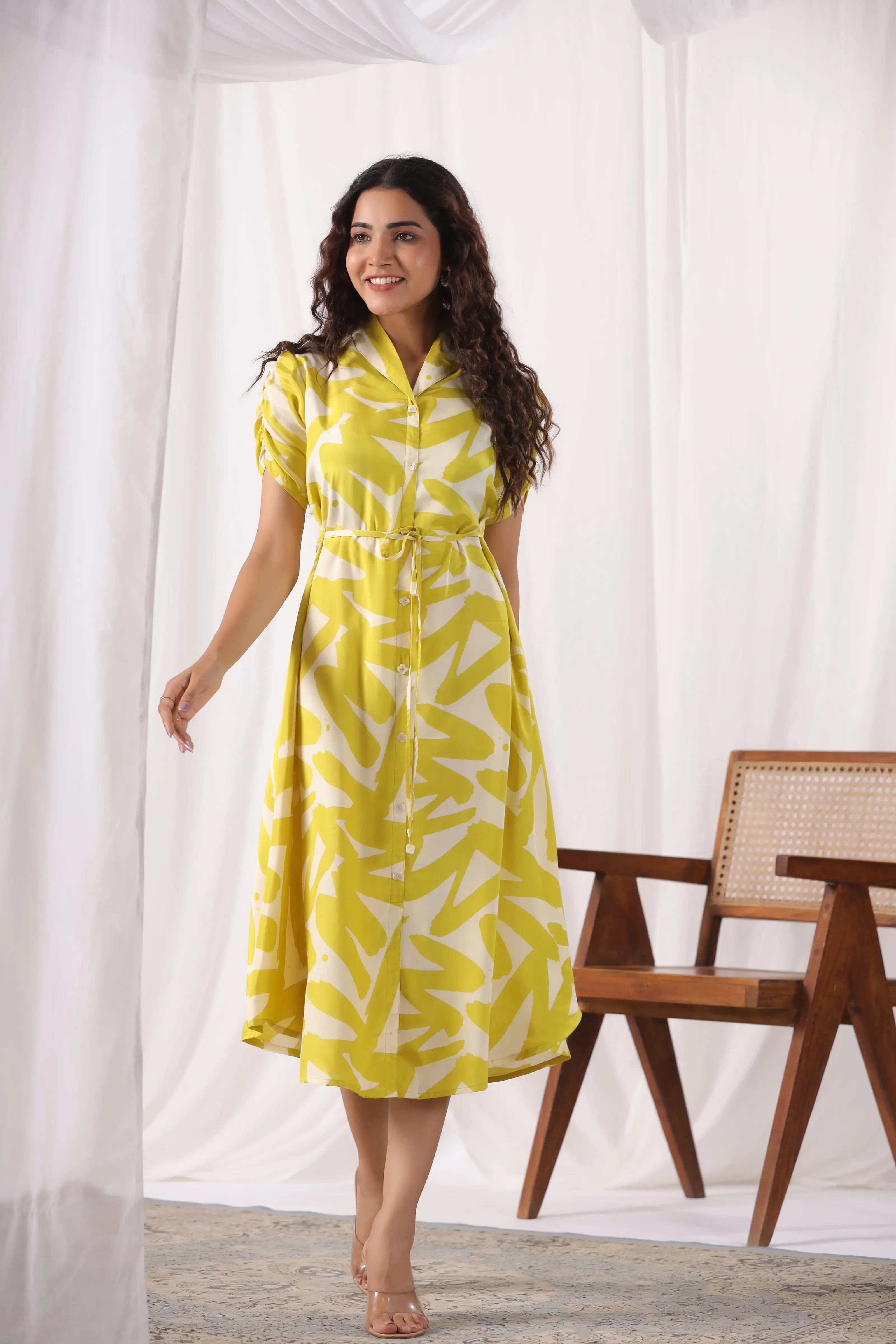 Sage Green Muslin Floral Print Mini Dress With Belt