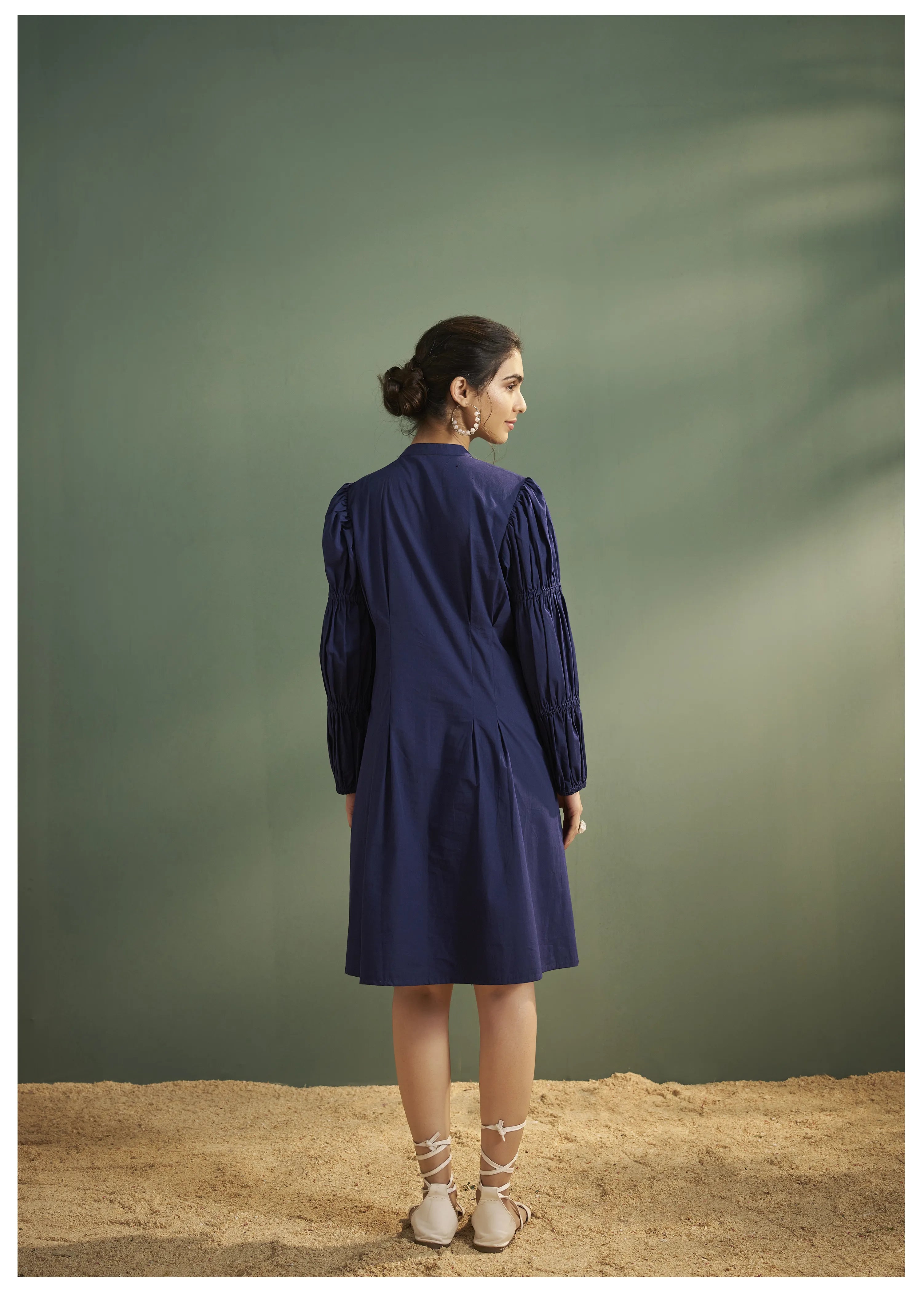 Blue Butterfly Motif Cotton Poplin Mini Dress