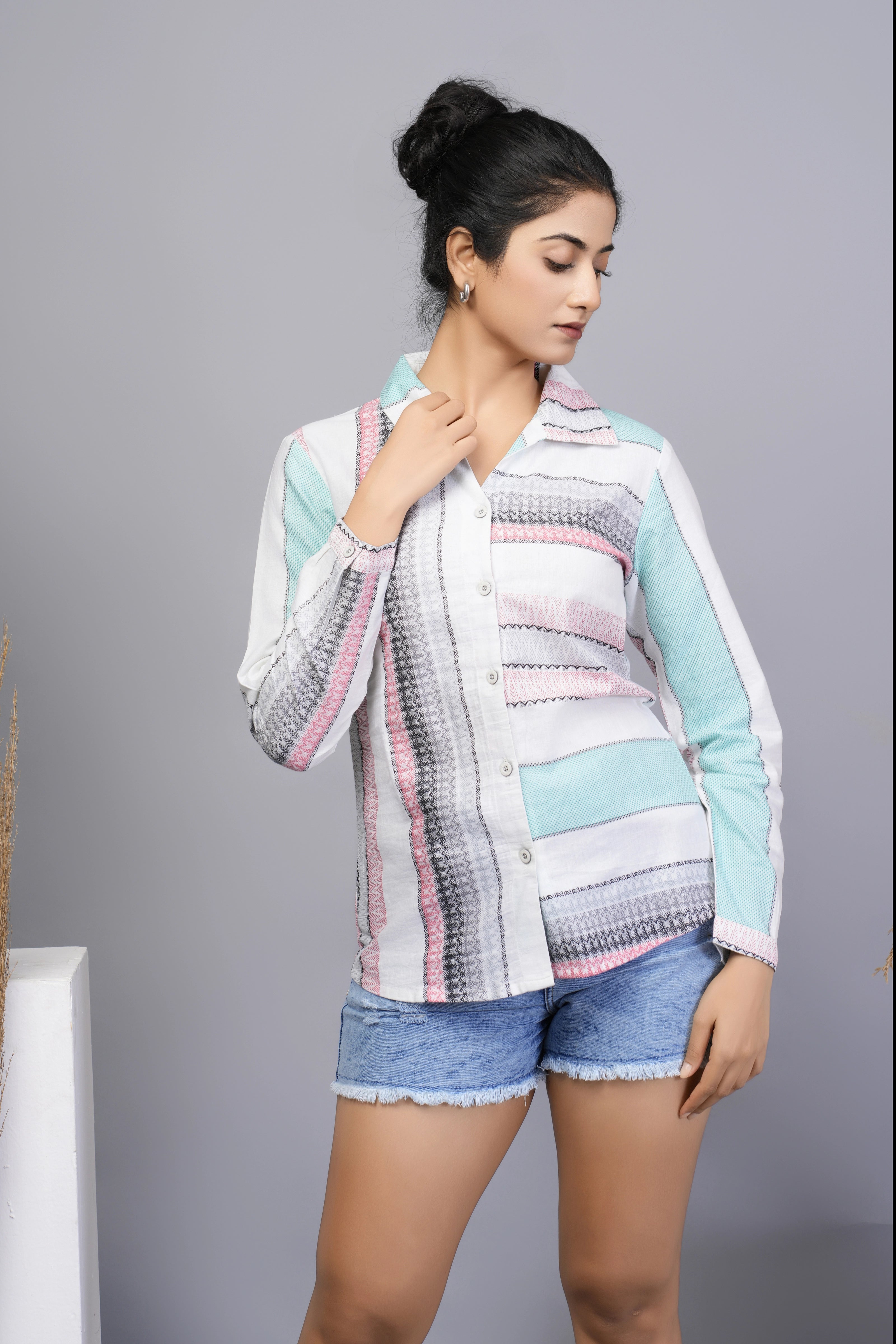 This Multi Color Ikat Print Cotton Shirt boasts a stunning ikat pattern, bringing a splash of vibrant colors to your wardrobe. The shirt features a classic shirt collar and shell embellishments on the faux front placket for an added touch of elegance. Designed with full sleeves, it combines comfort and style effortlessly. Crafted from soft cotton, it ensures a comfortable fit throughout the day.