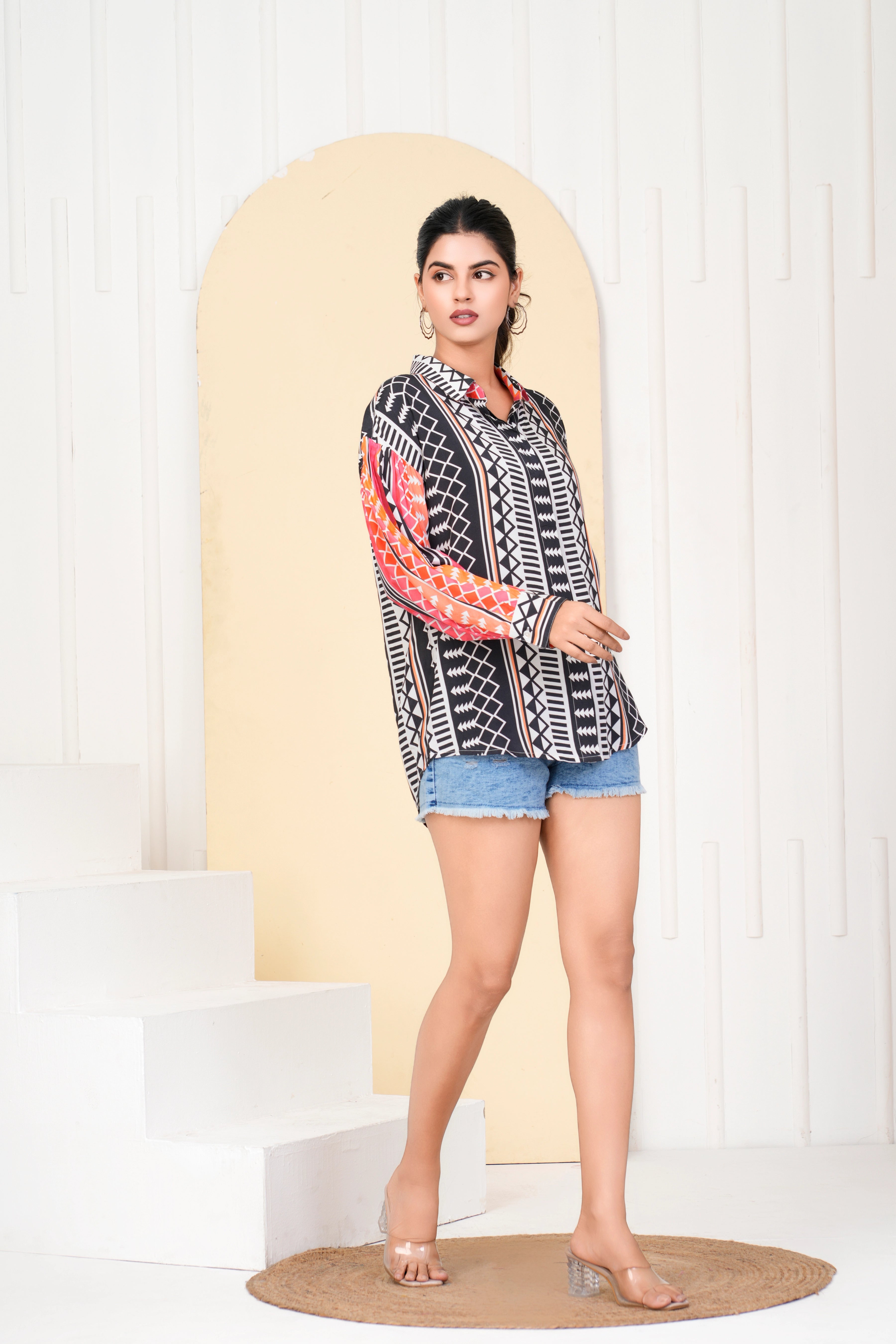 Chic & Contemporary: Multi-Color Placement Printed Full Sleeve Shirt in Viscose