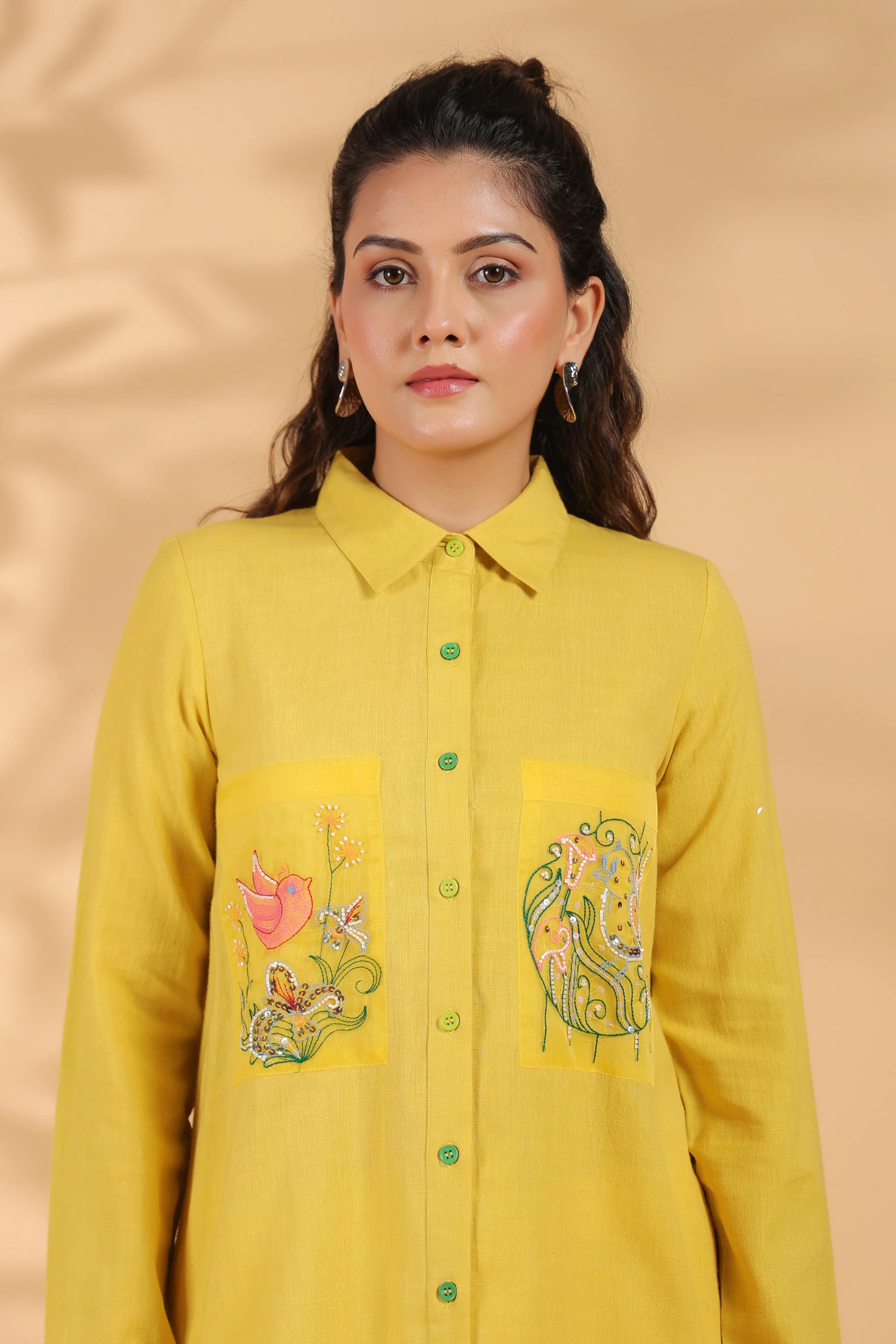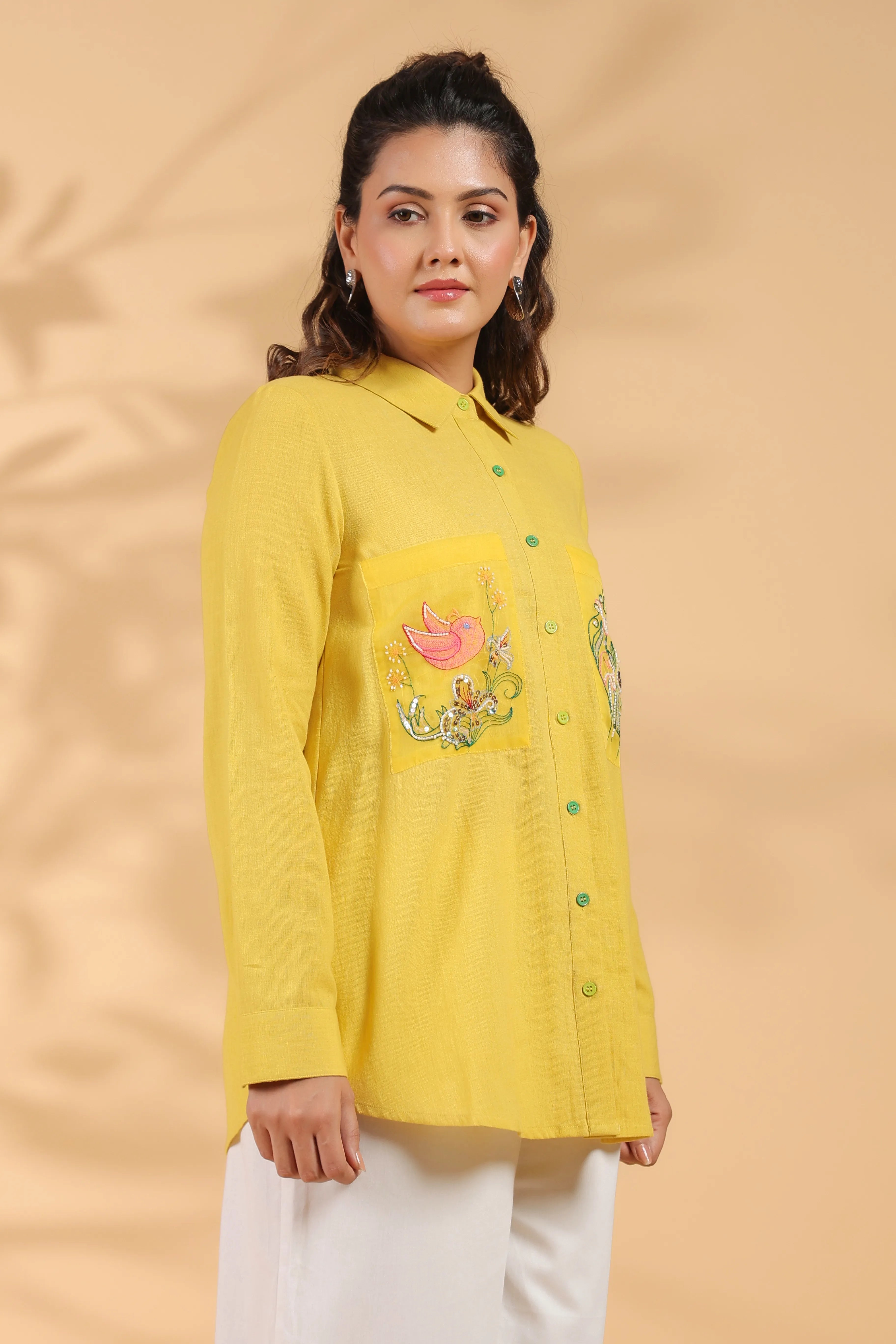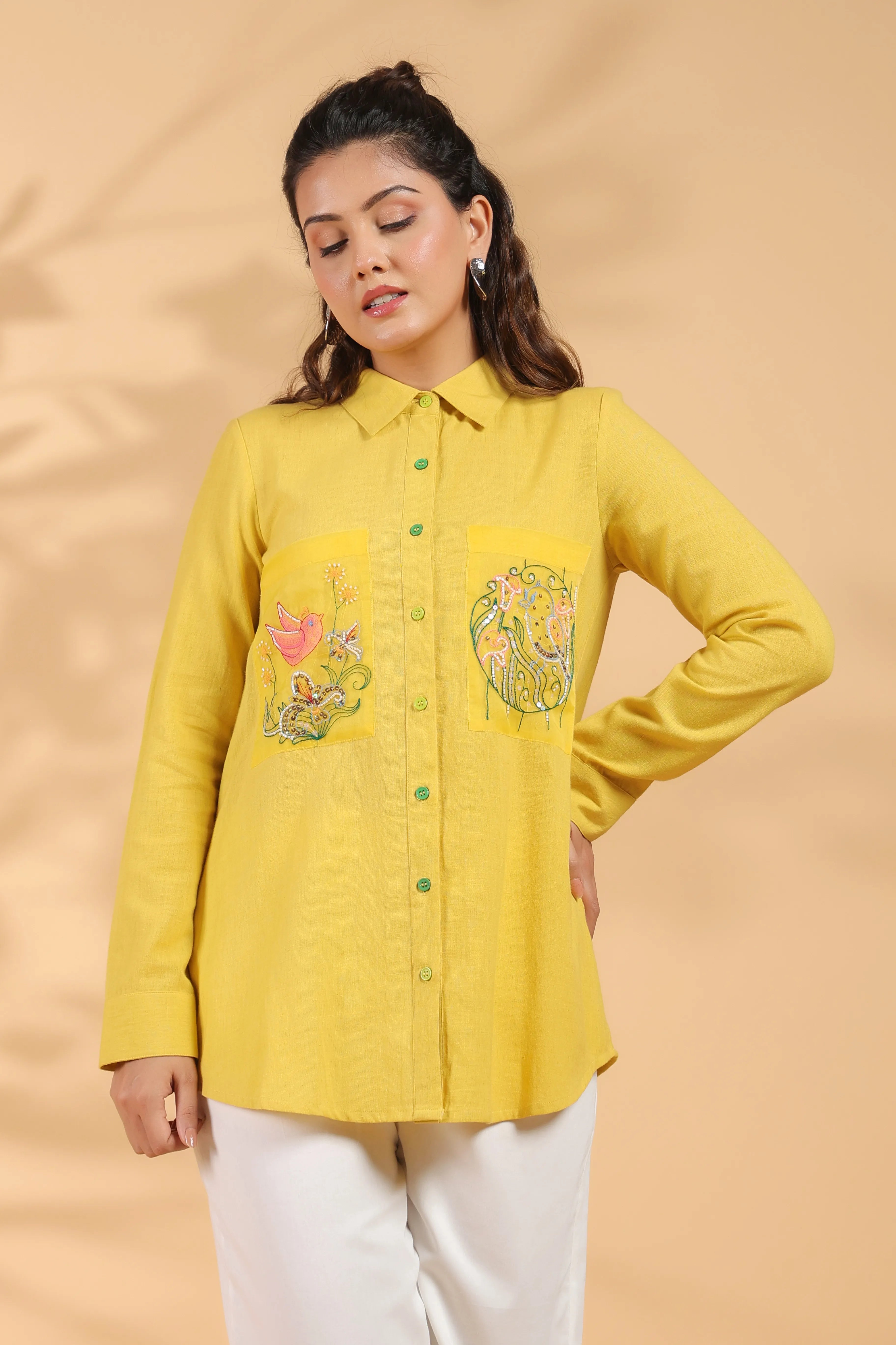 Sunflower Yellow Cotton Flex Shirt with Embroidery