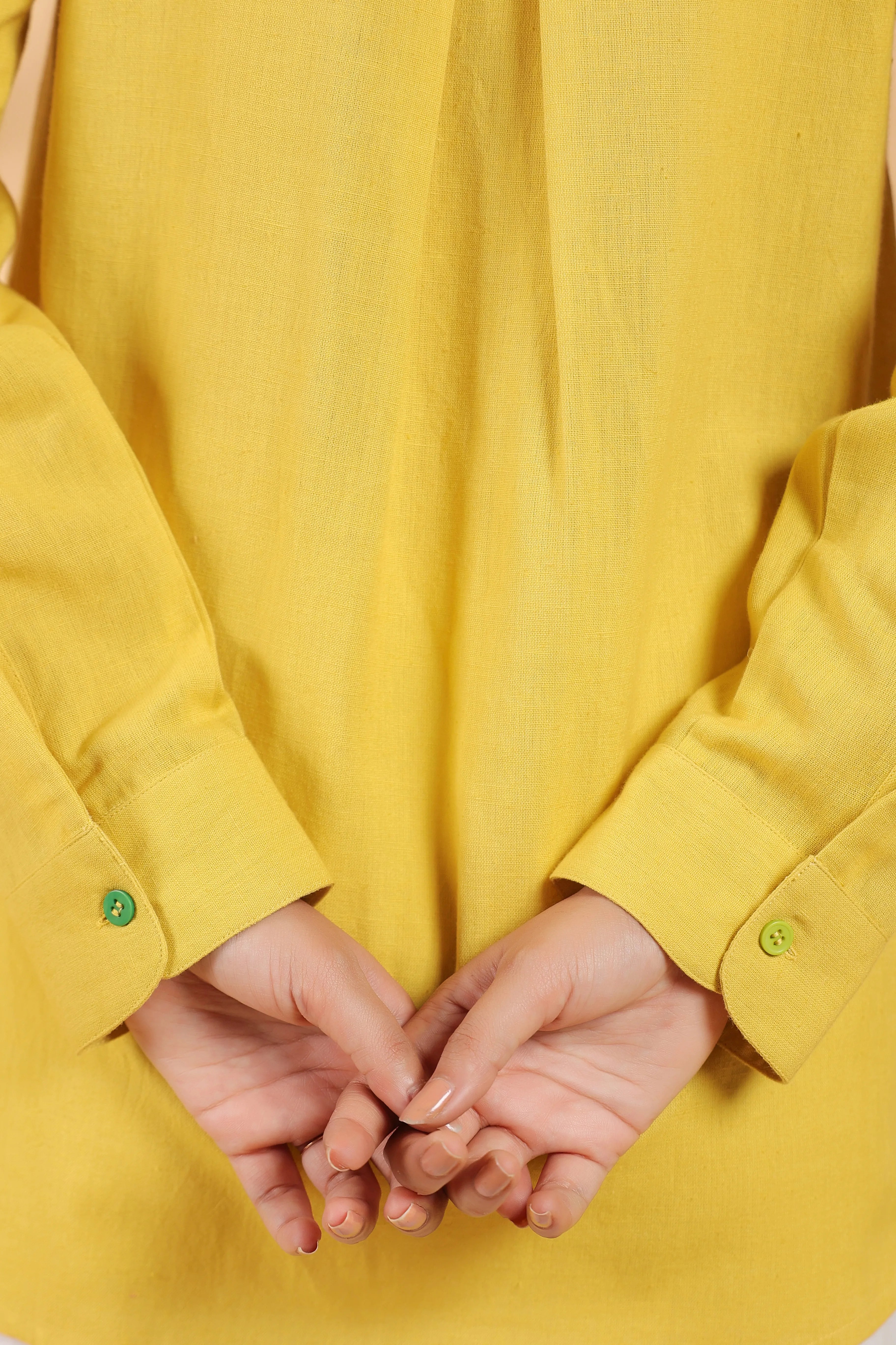 Add a burst of brightness to your wardrobe with this Sunflower Yellow Cotton Flex Shirt. Crafted from soft cotton flex fabric, it features full sleeves and a beautifully embroidered pocket, striking the perfect balance between casual charm and elegance. The breathable, lightweight material ensures comfort, while the vibrant yellow color and intricate embroidery make this shirt stand out. Perfect for both casual outings and semi-formal occasions, this shirt offers a stylish yet versatile option for any wardrobe.