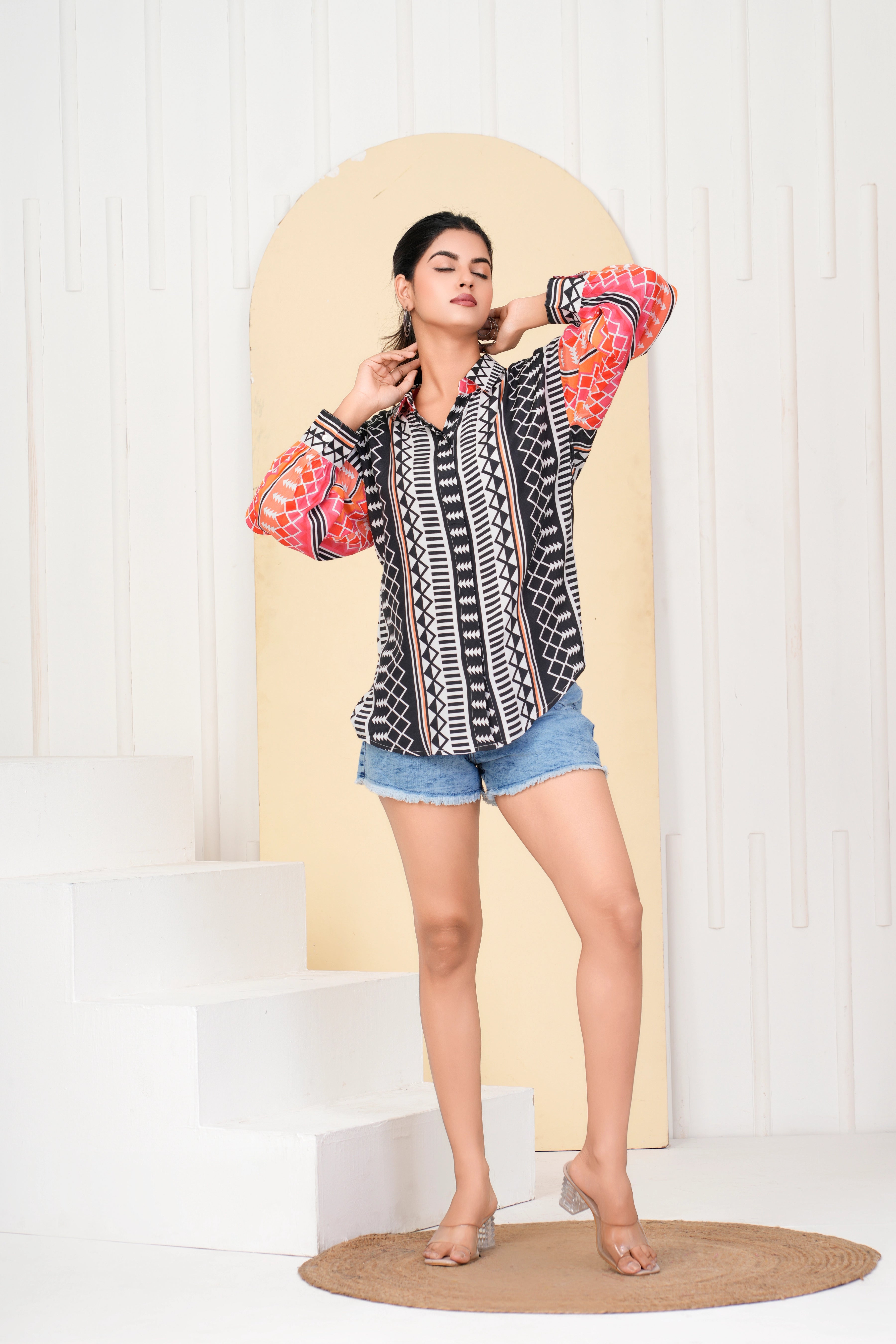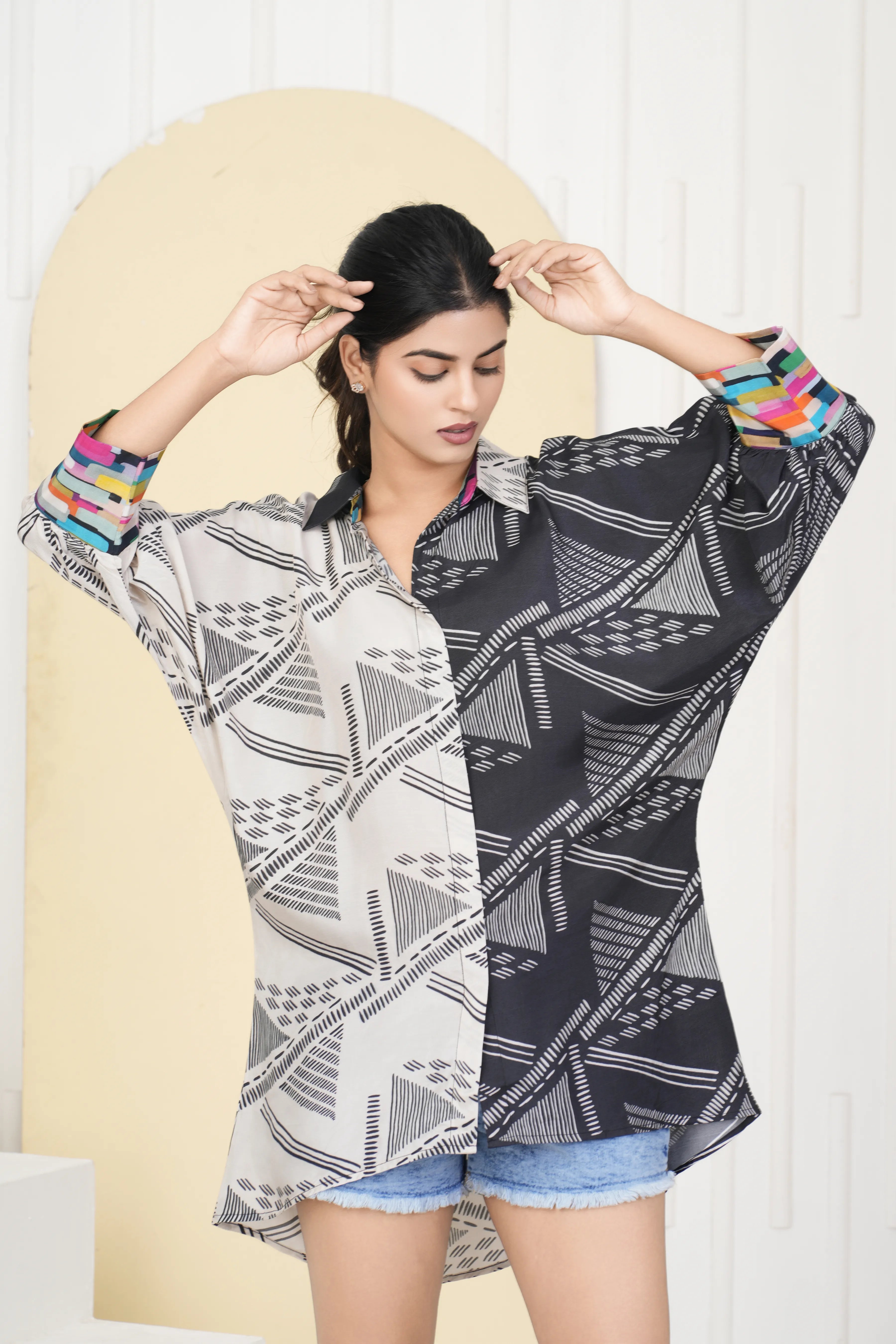 Black Base Geometric Printed Crepe Shirt