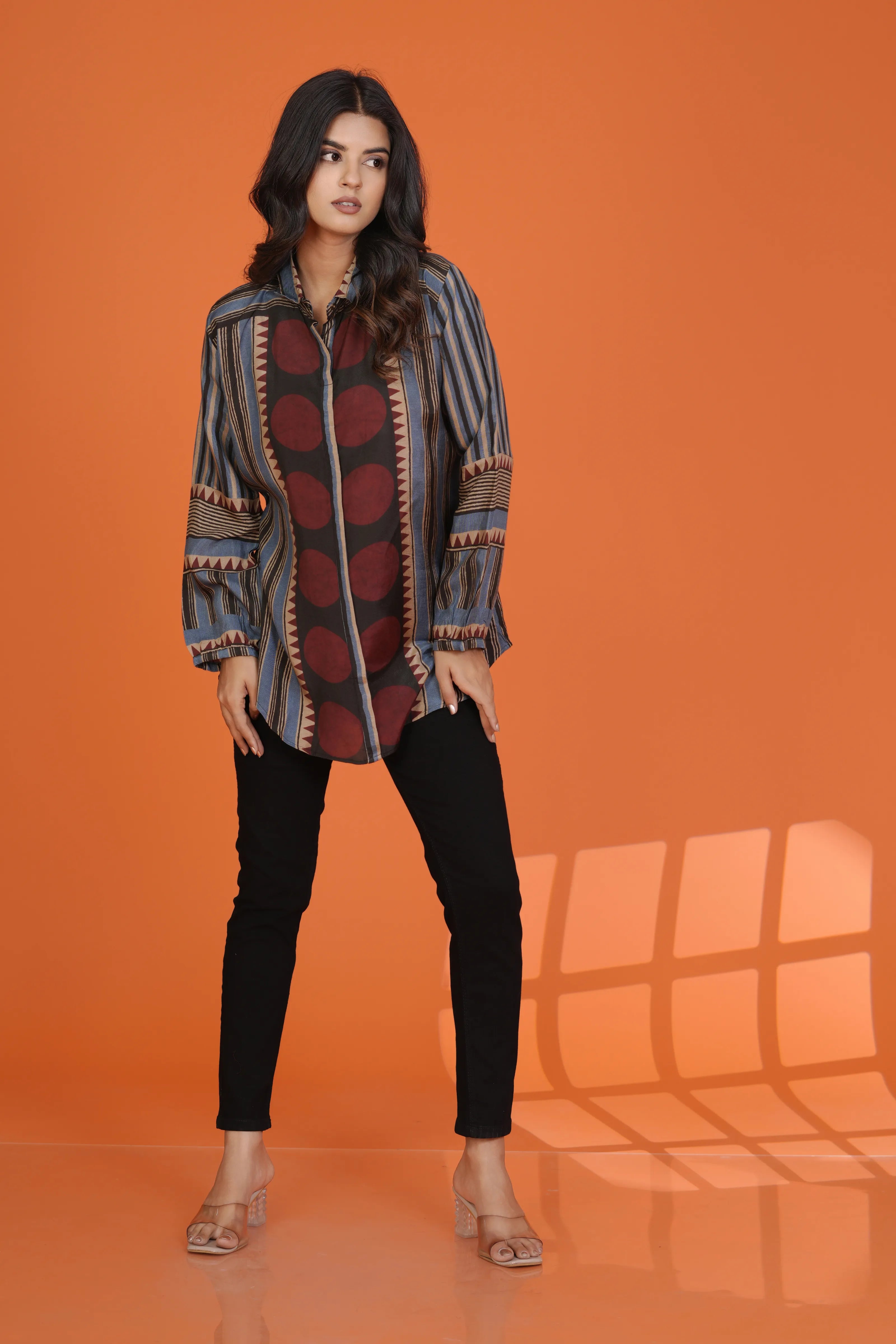 Multi Color Ikat Print Cotton Shirt