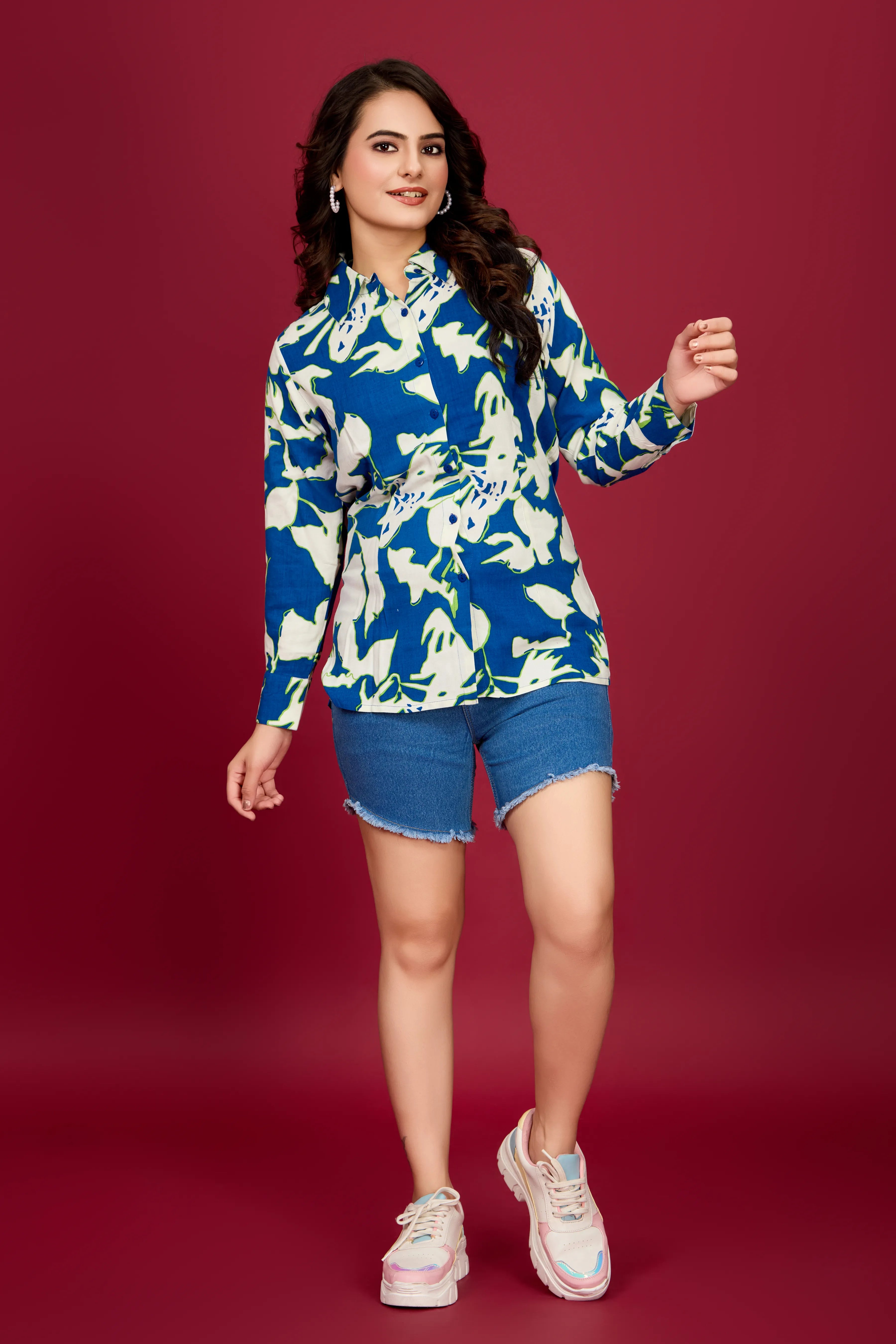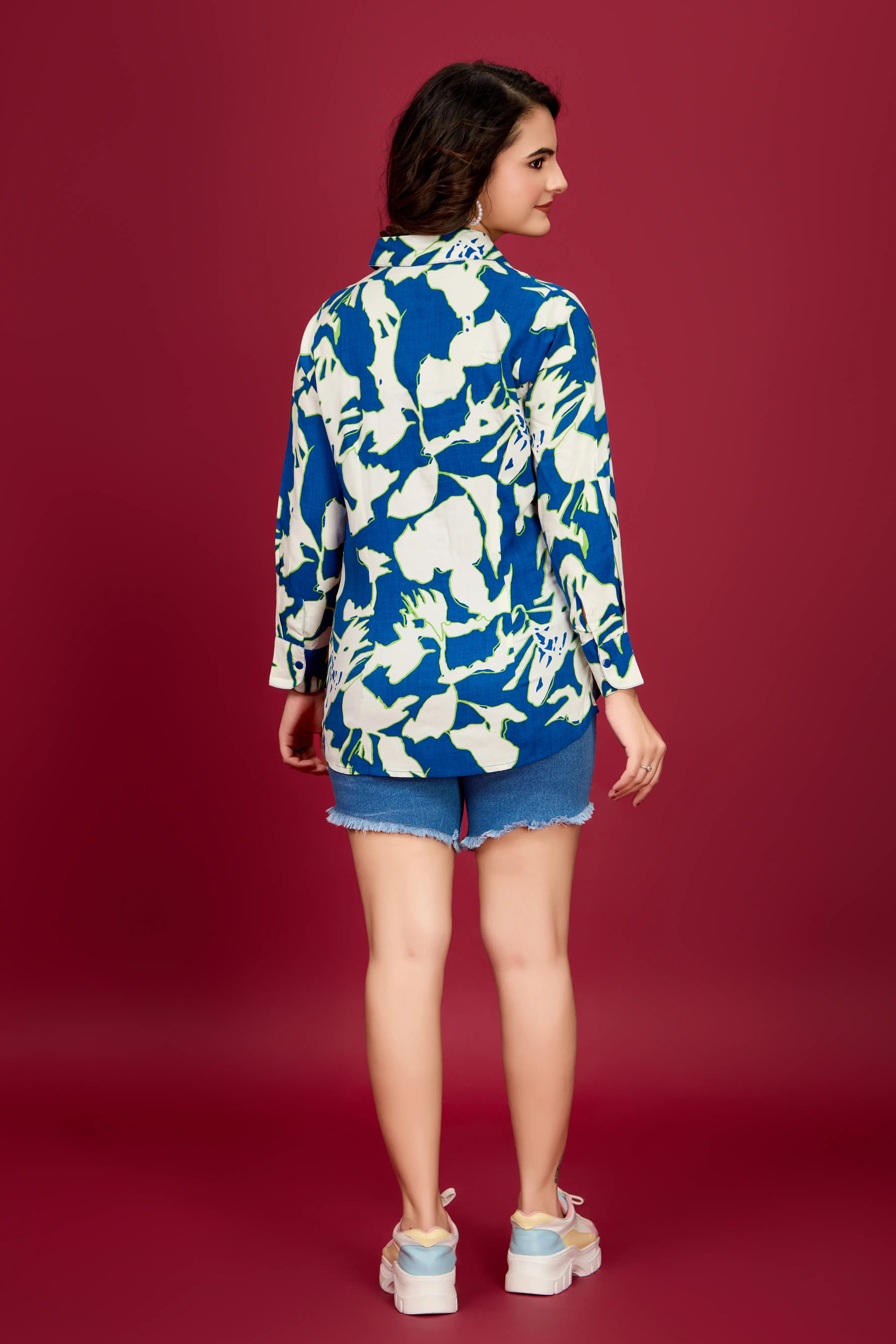Light Blue & Purple Floral Cotton Oversized Shirt