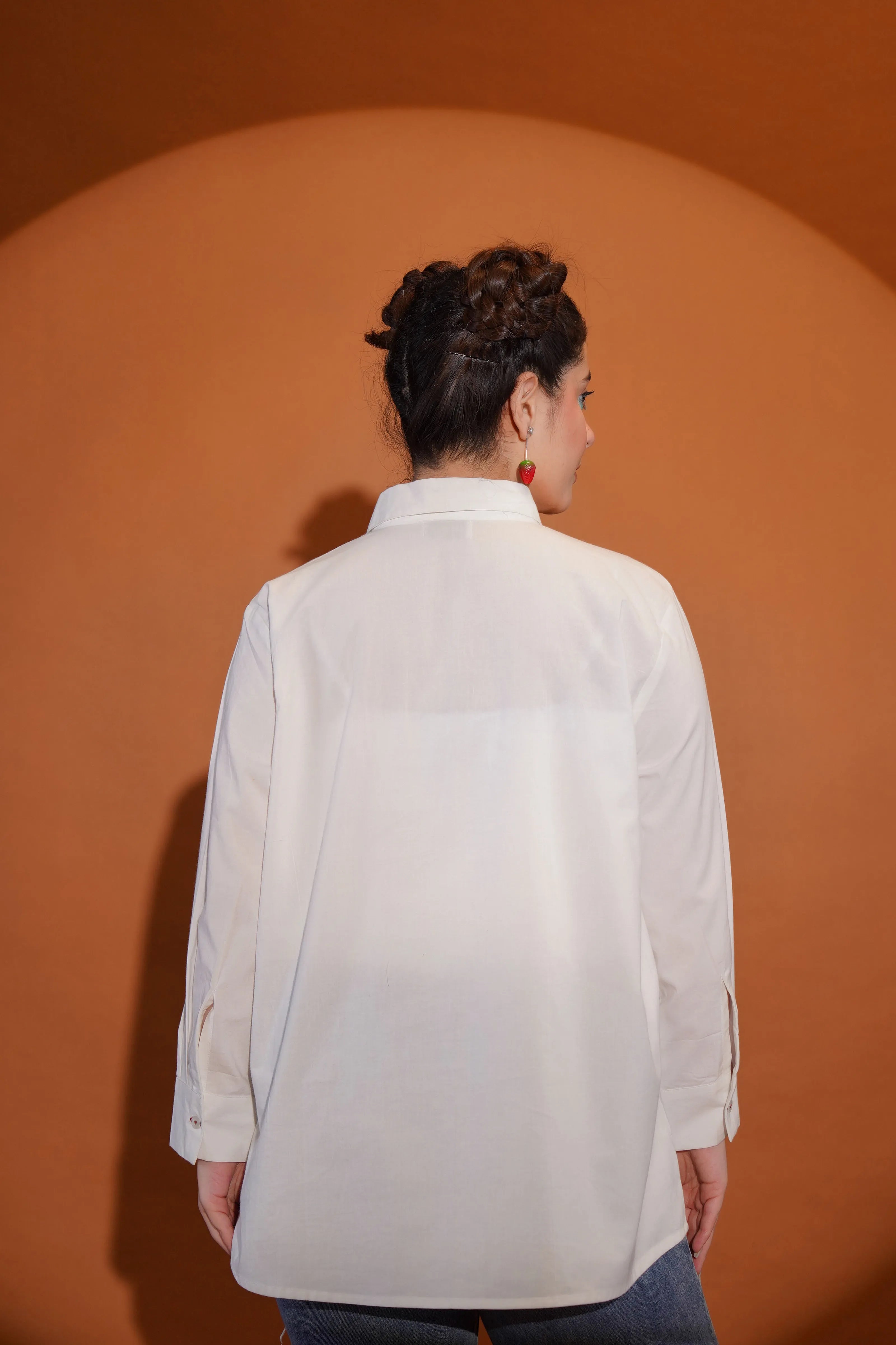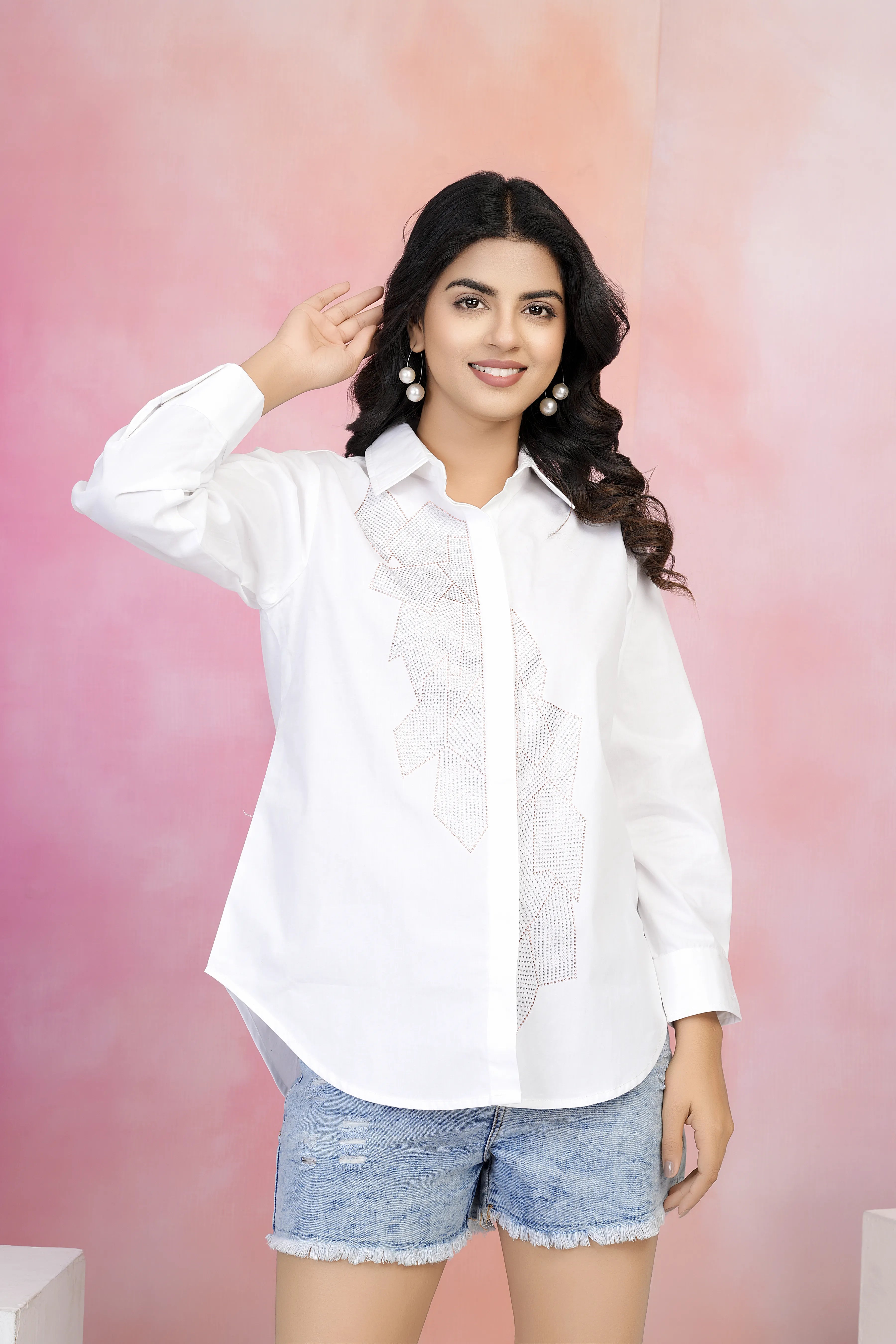 White Cotton Shirt with Rhinestone Detail