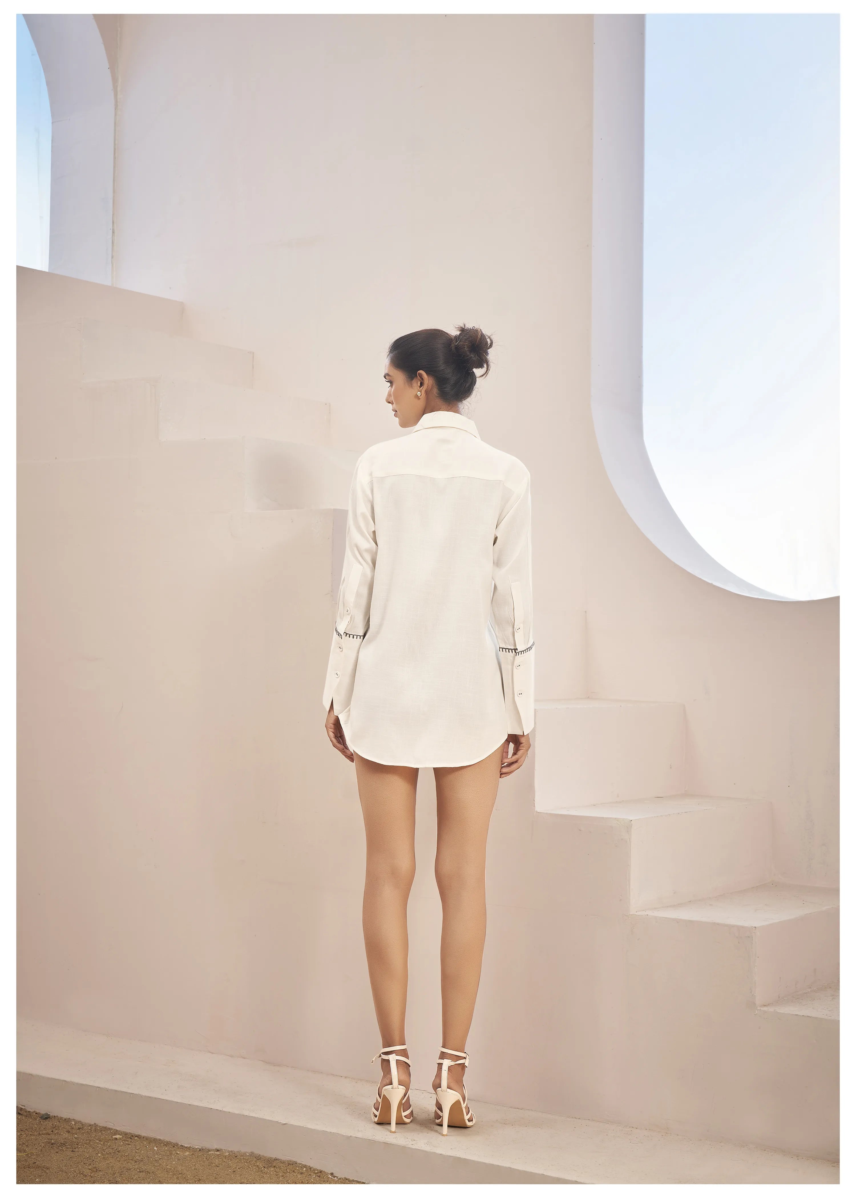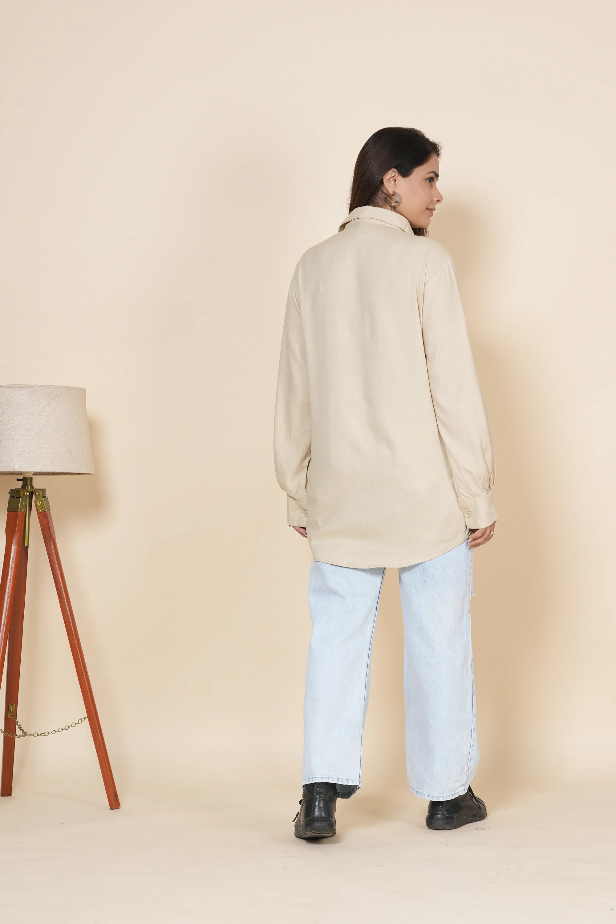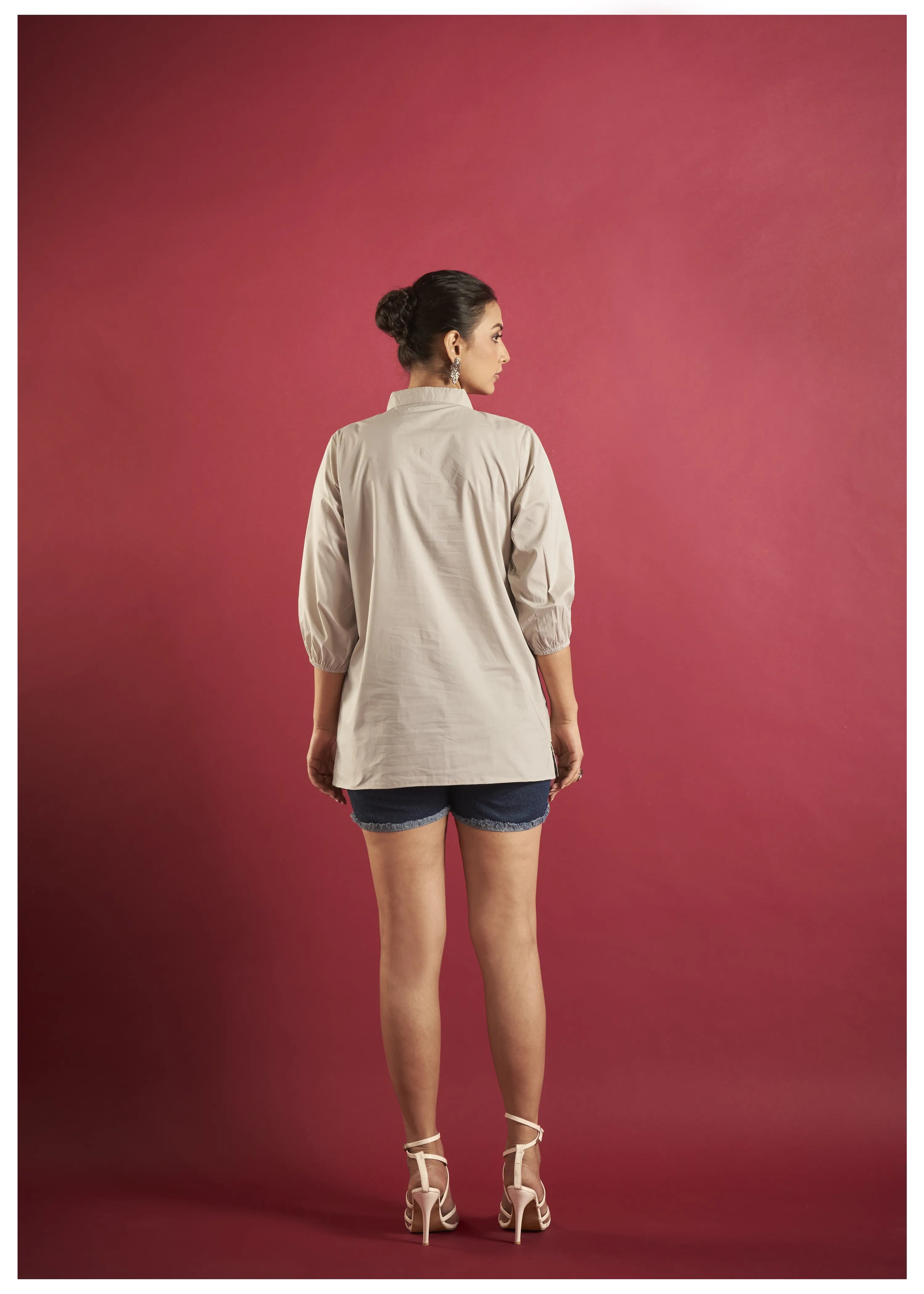 beige linen shirt with thread work embroidery