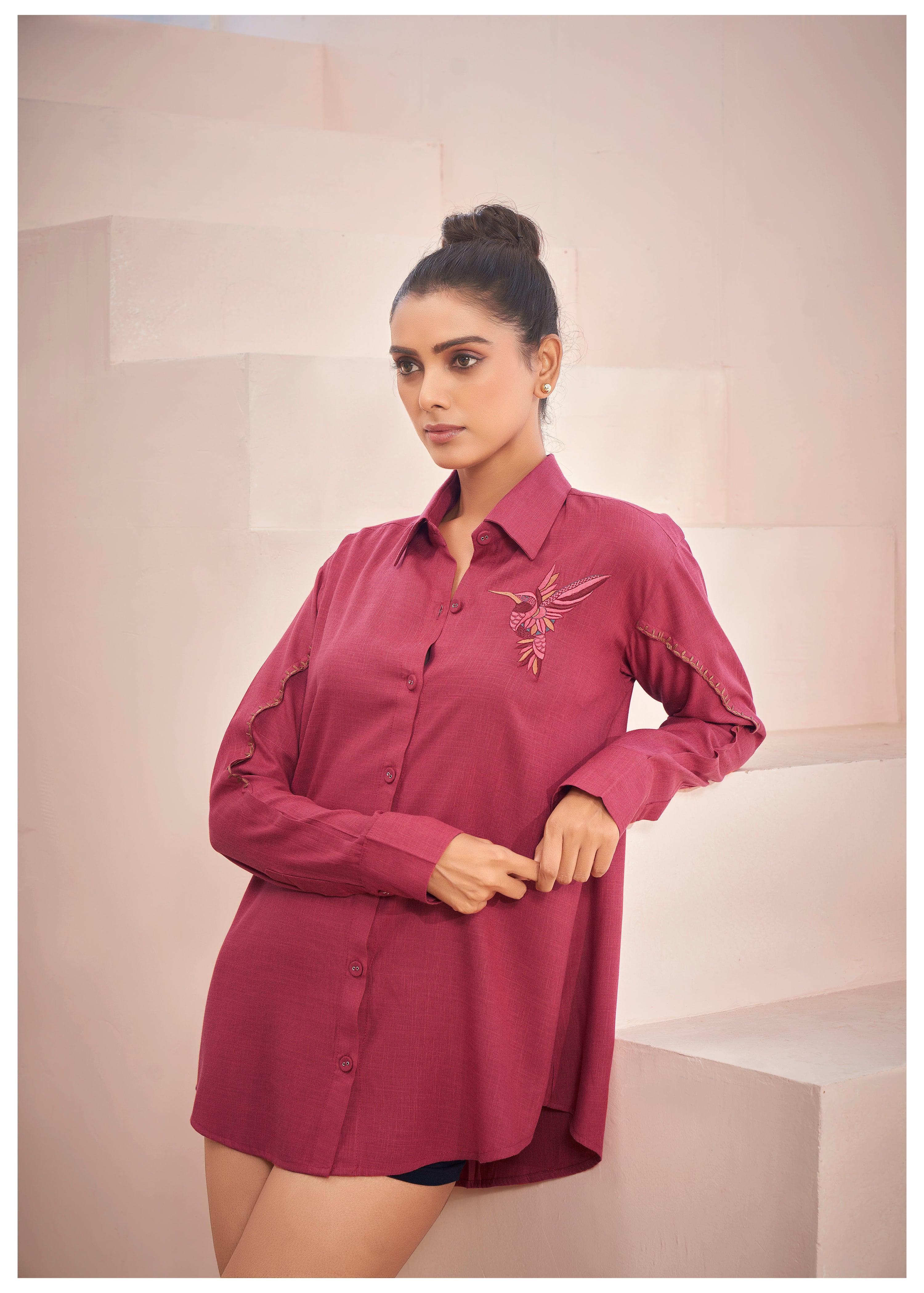 Red Linen Shirt with Thread Work Embroidery