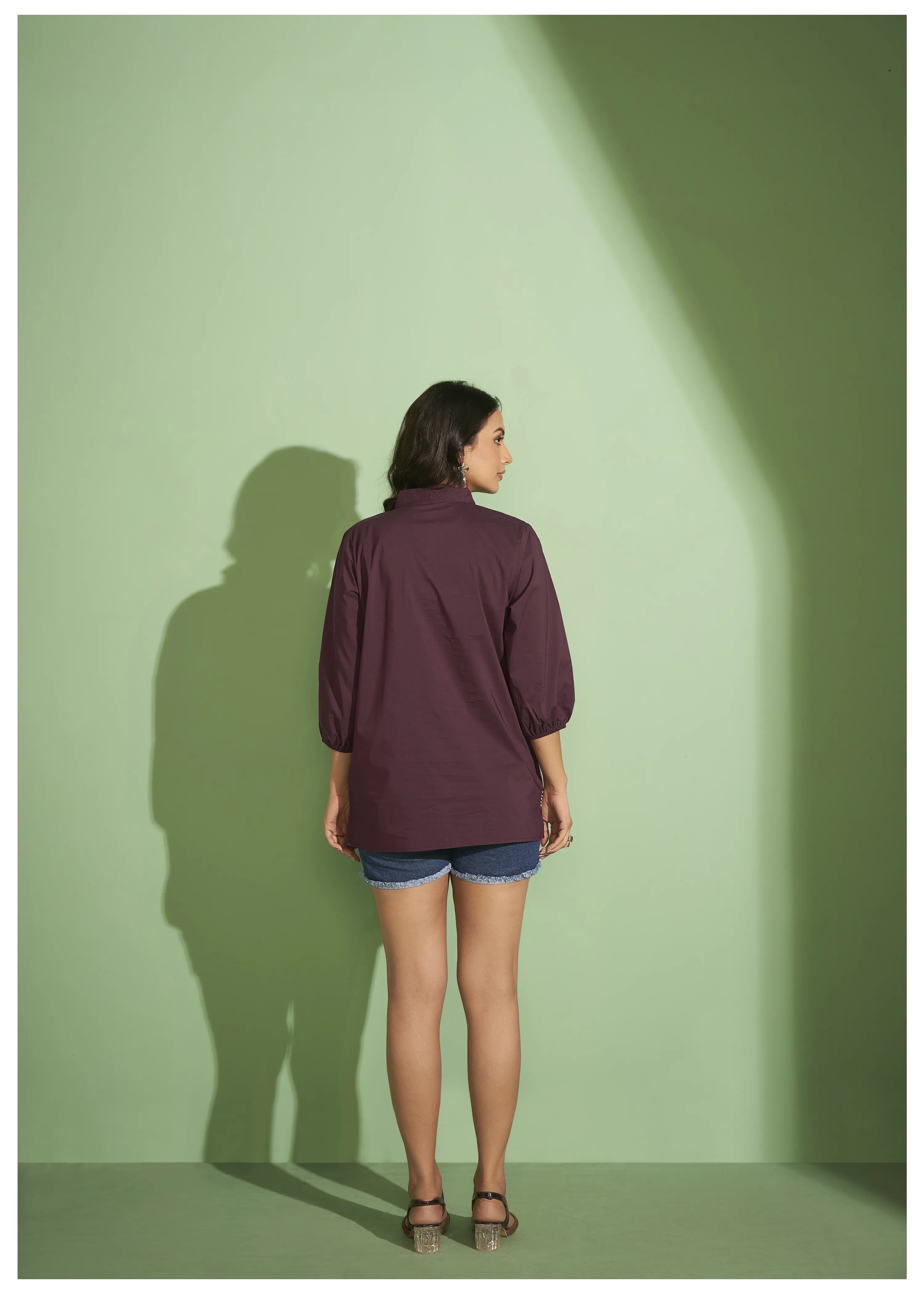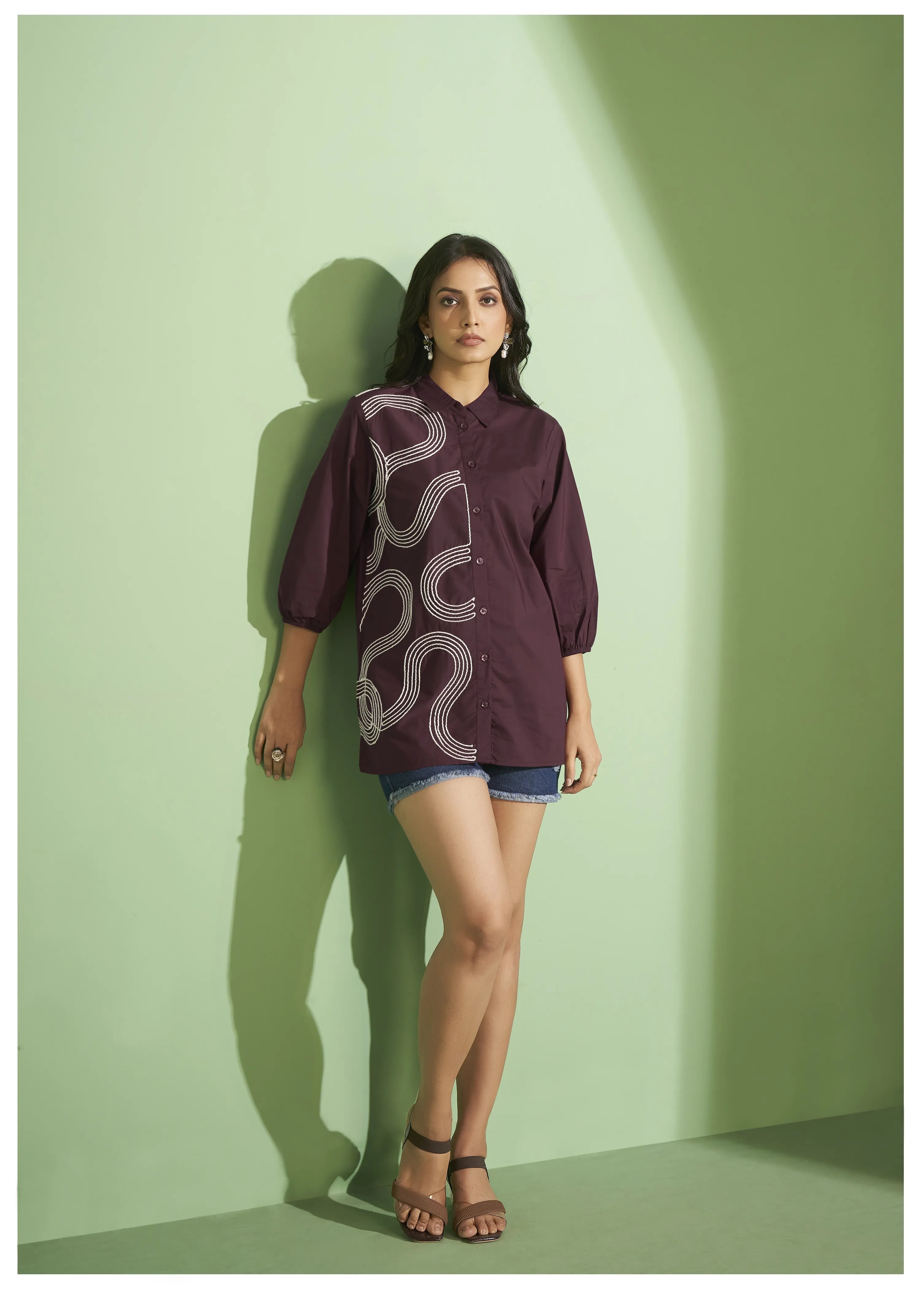 Maroon Cotton Poplin Shirt with Cord Embroidery