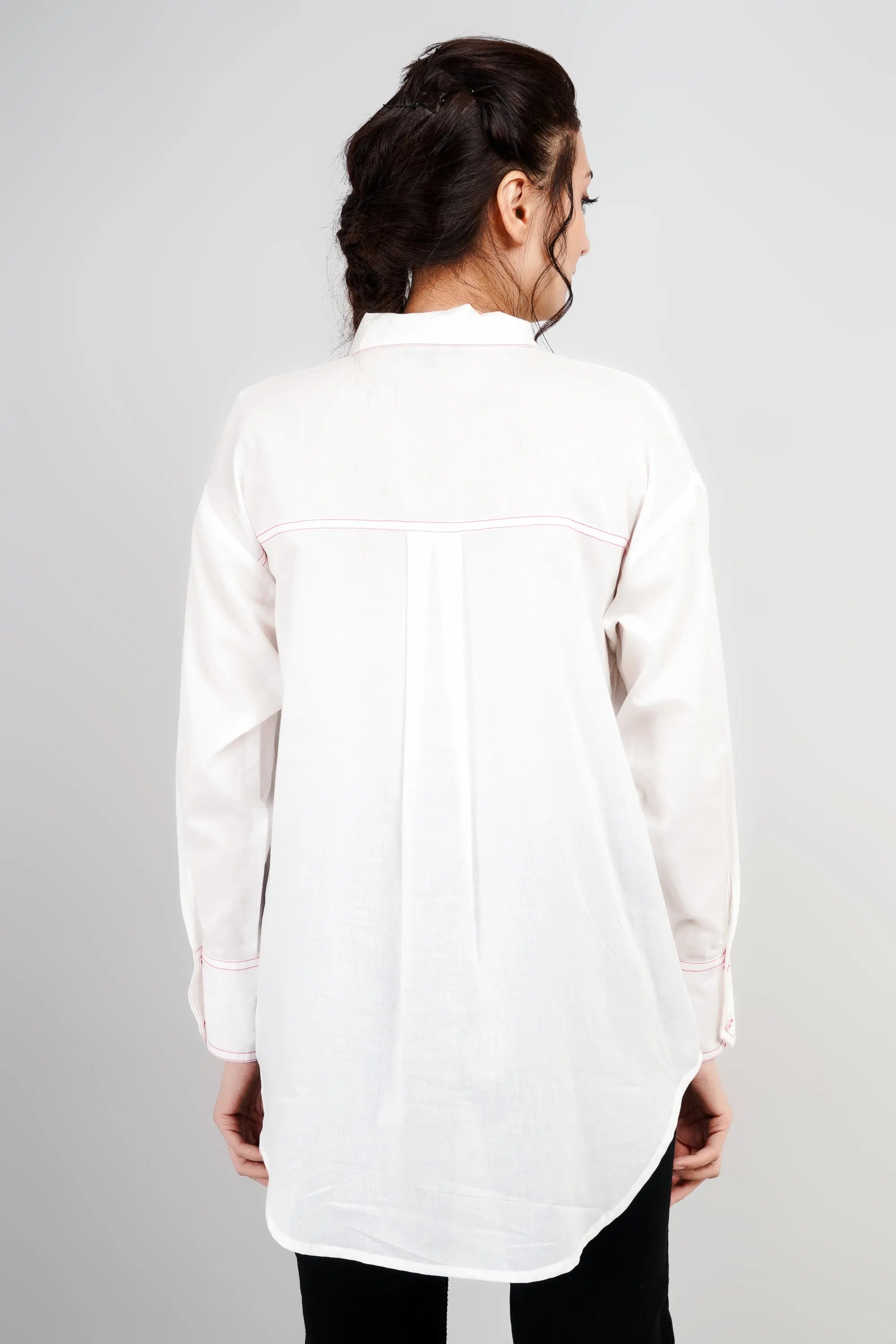 White Cotton Flex Shirt with Embroidered