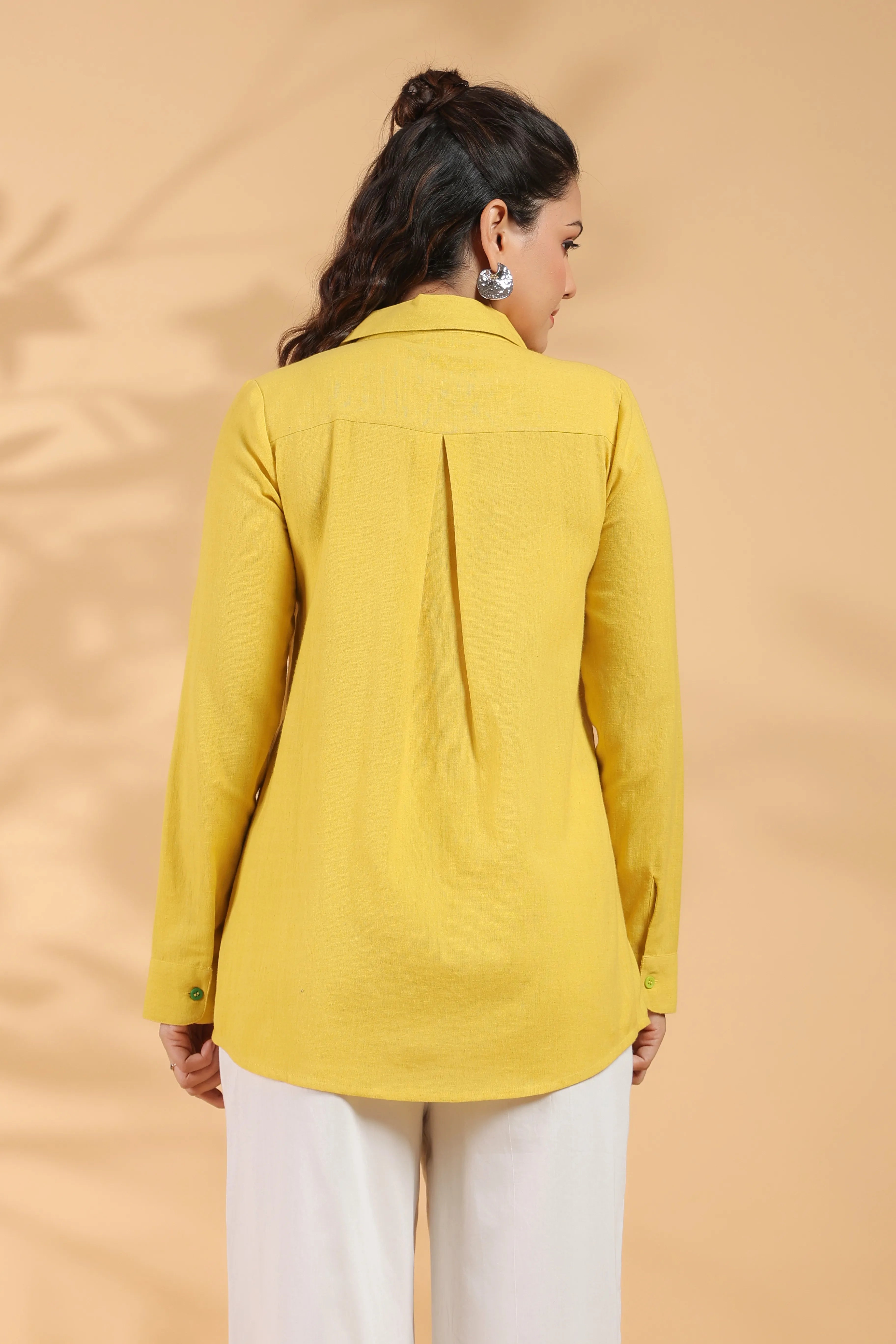 Sunflower Yellow Cotton Flex Shirt with Embroidered