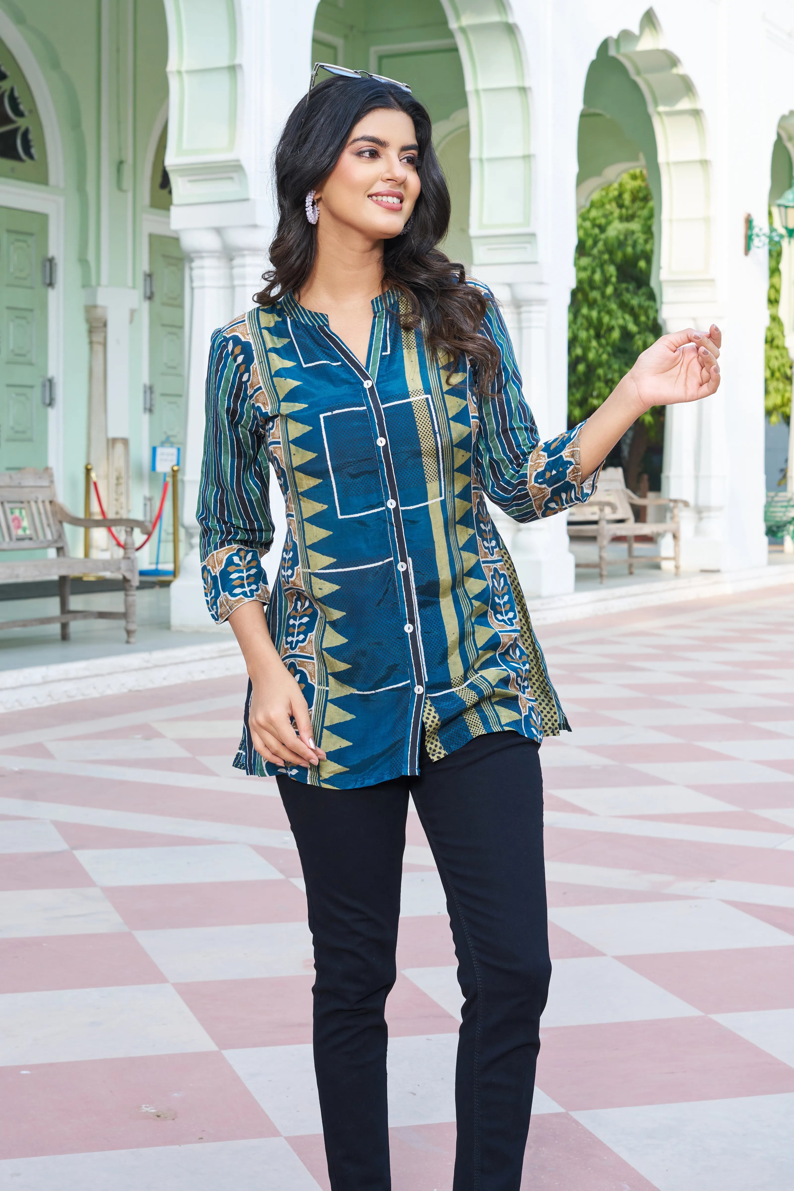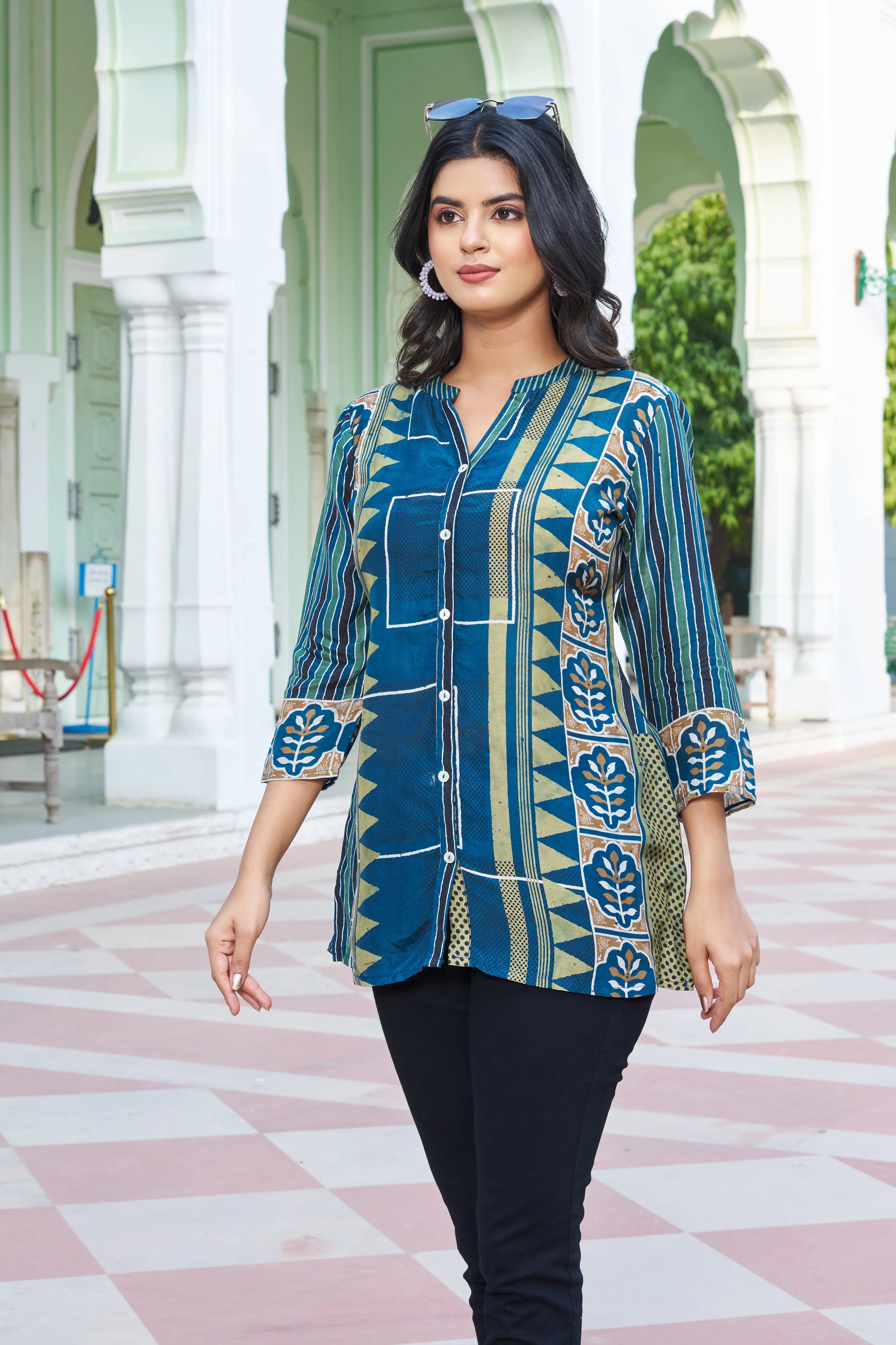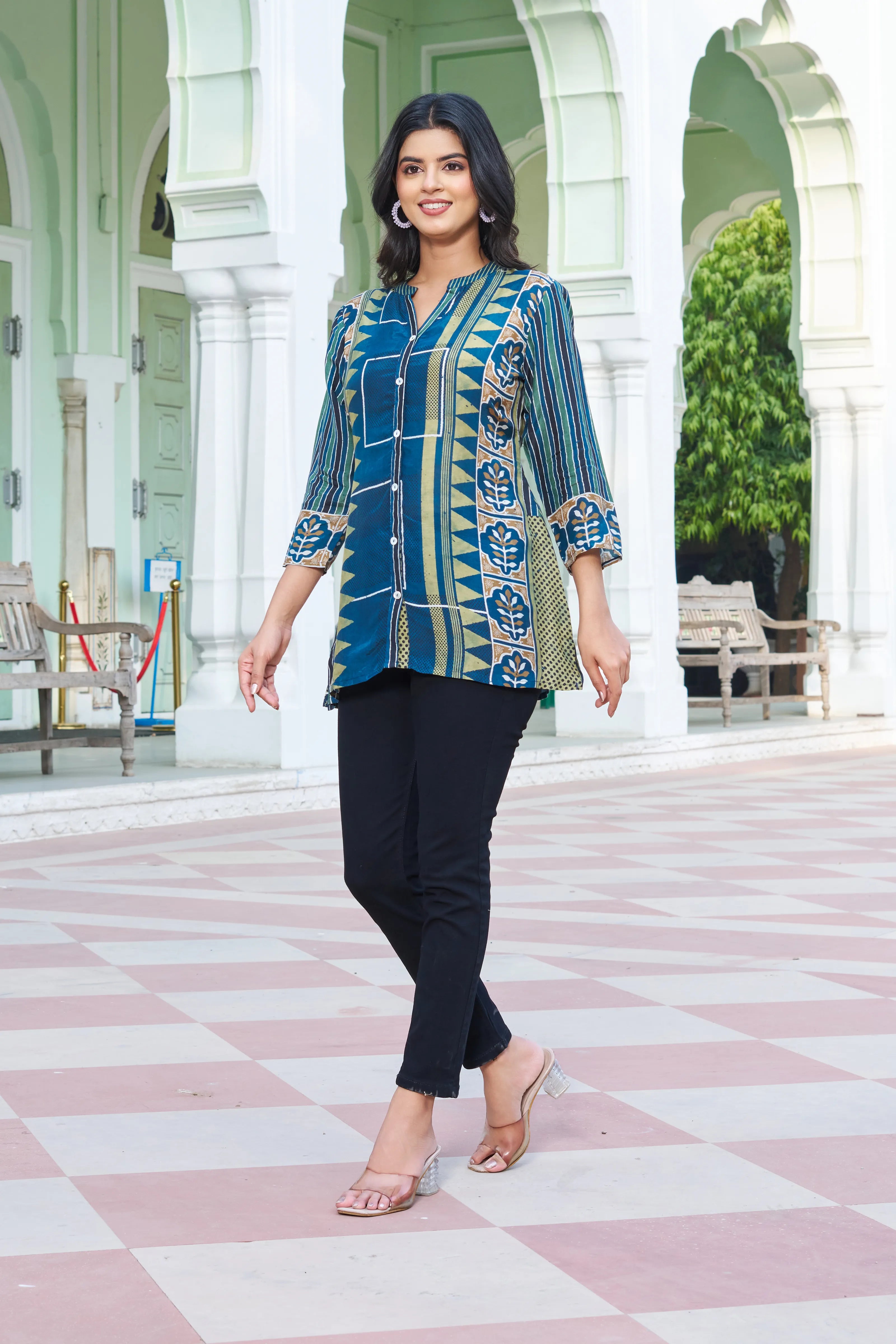 Indigo Rhythm: Abstract Print Muslin Short Kurti