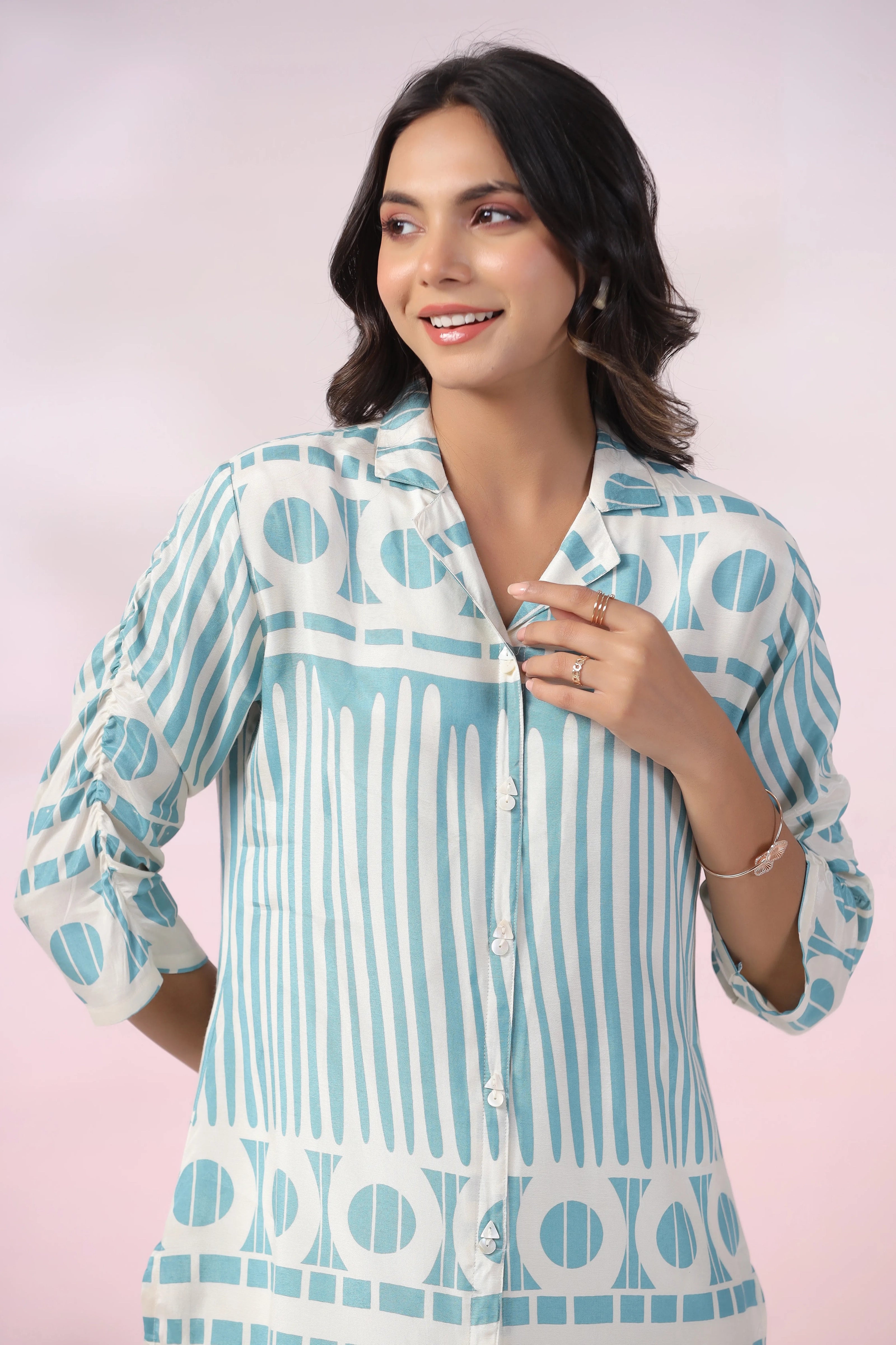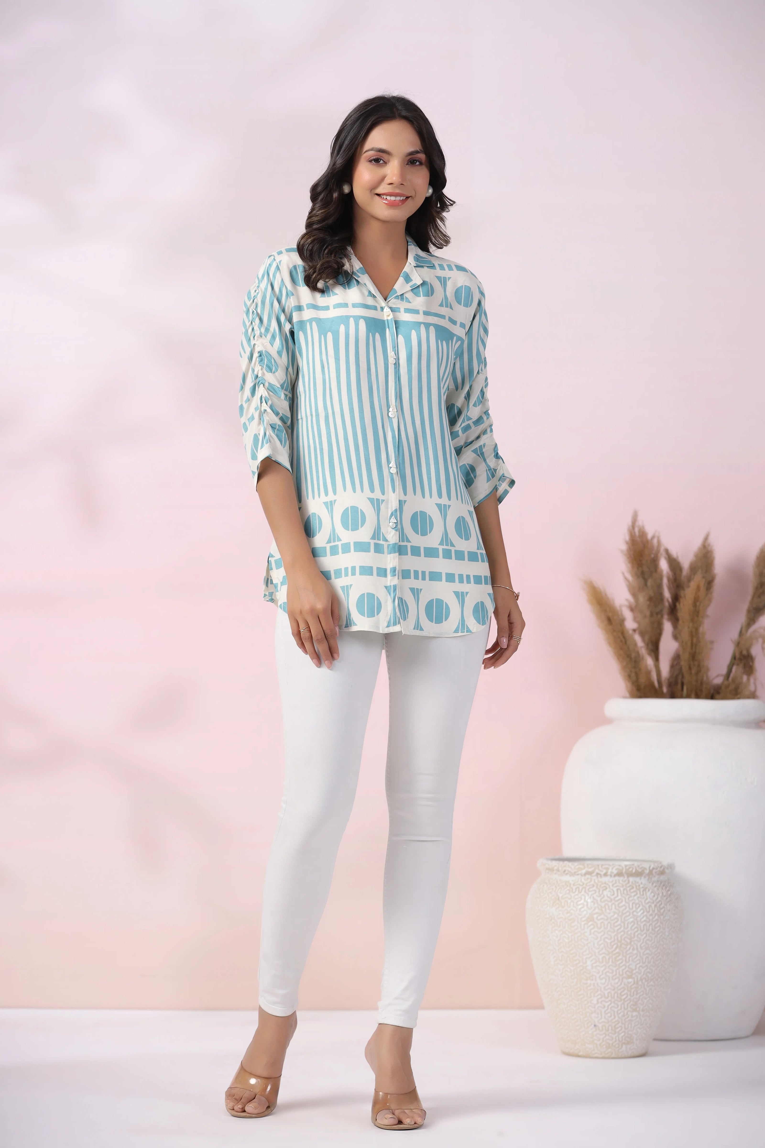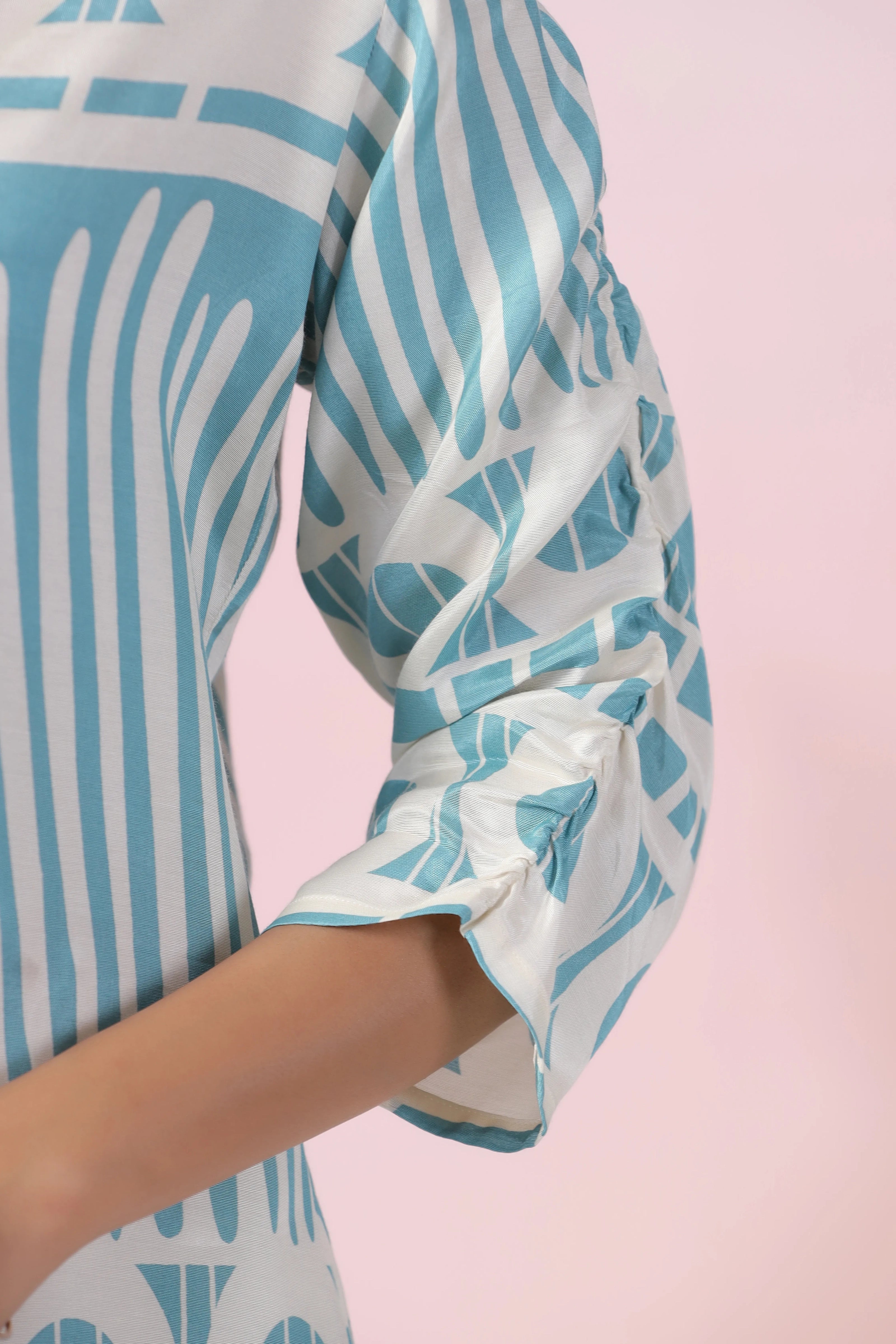 Effortless Elegance: Light Blue Abstract Print Russian Silk Tunic