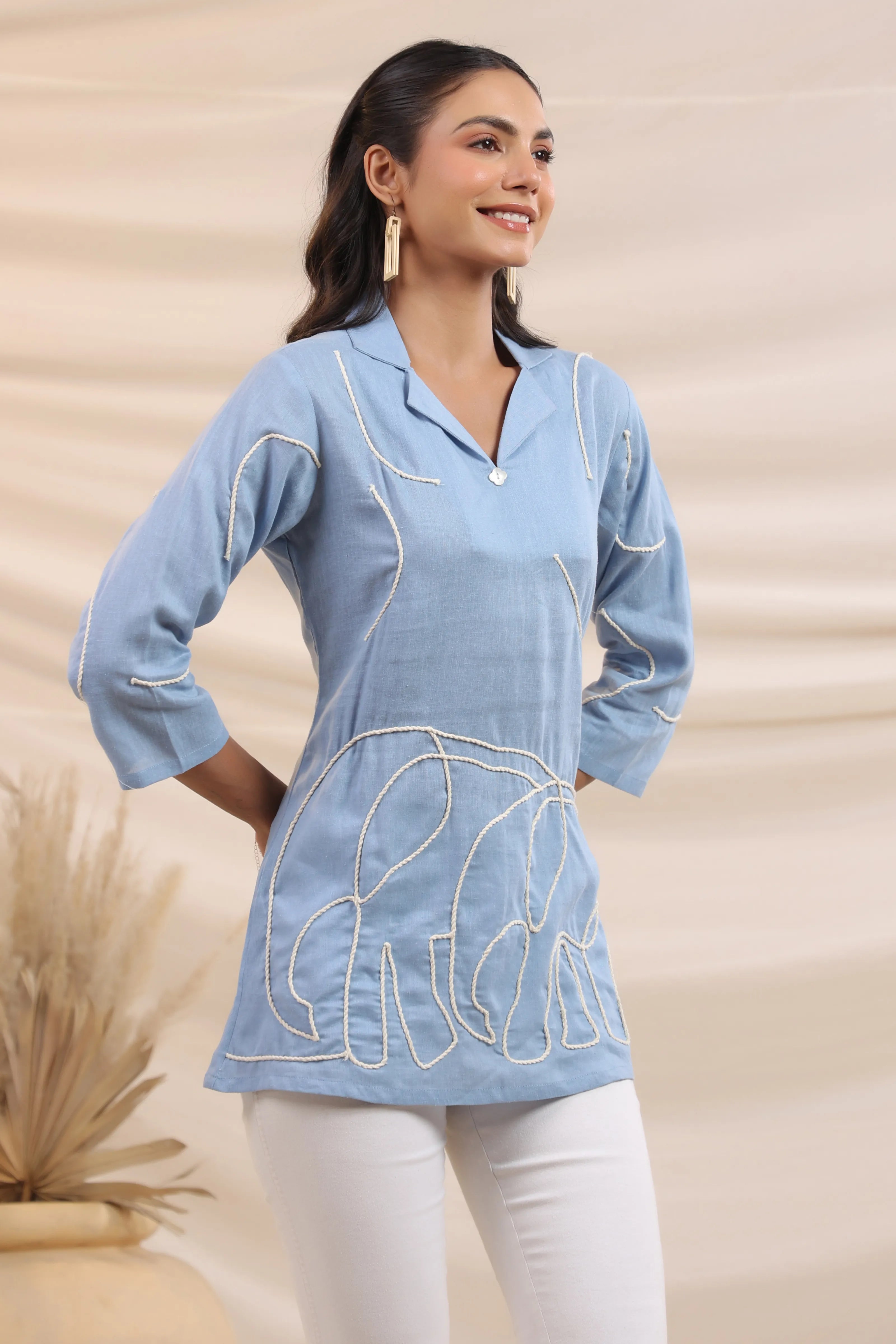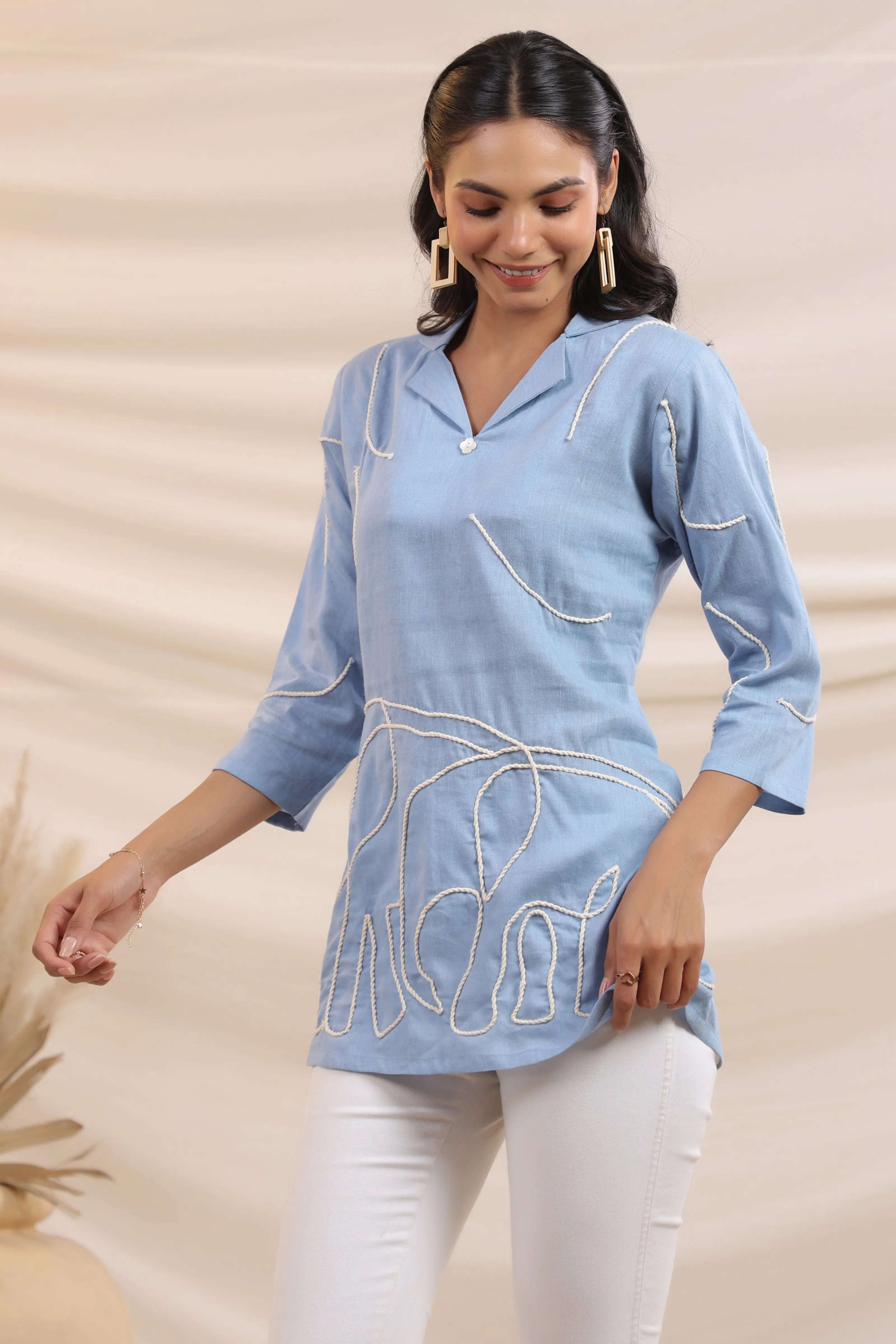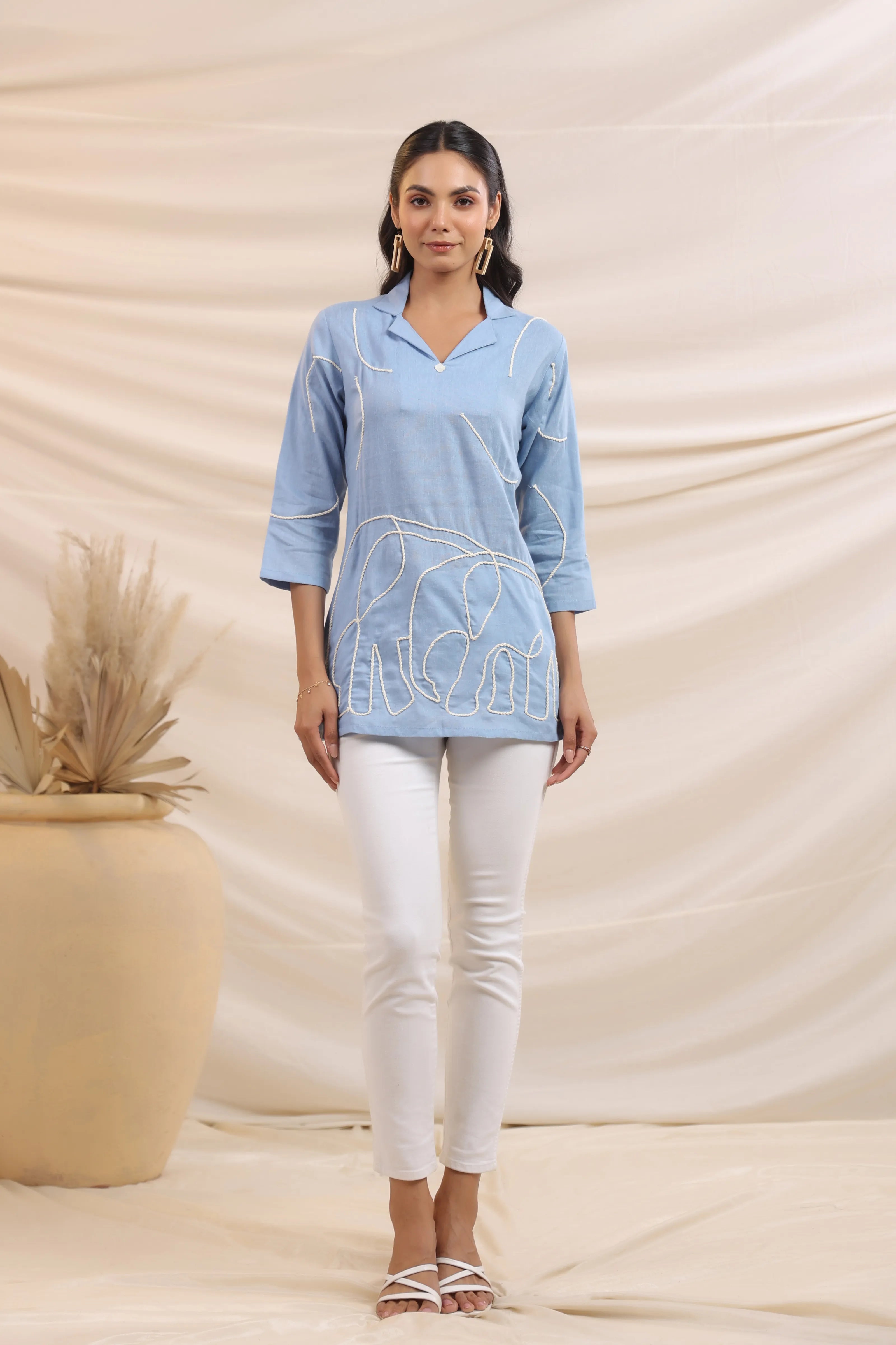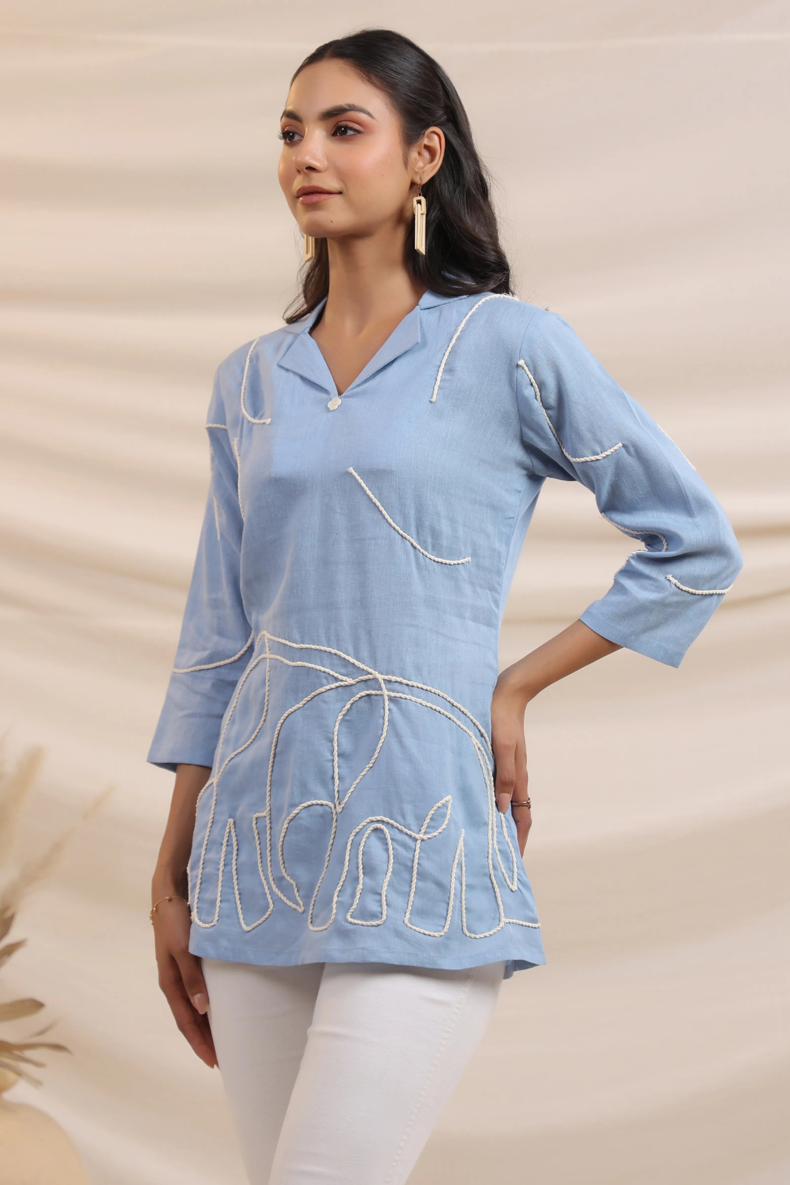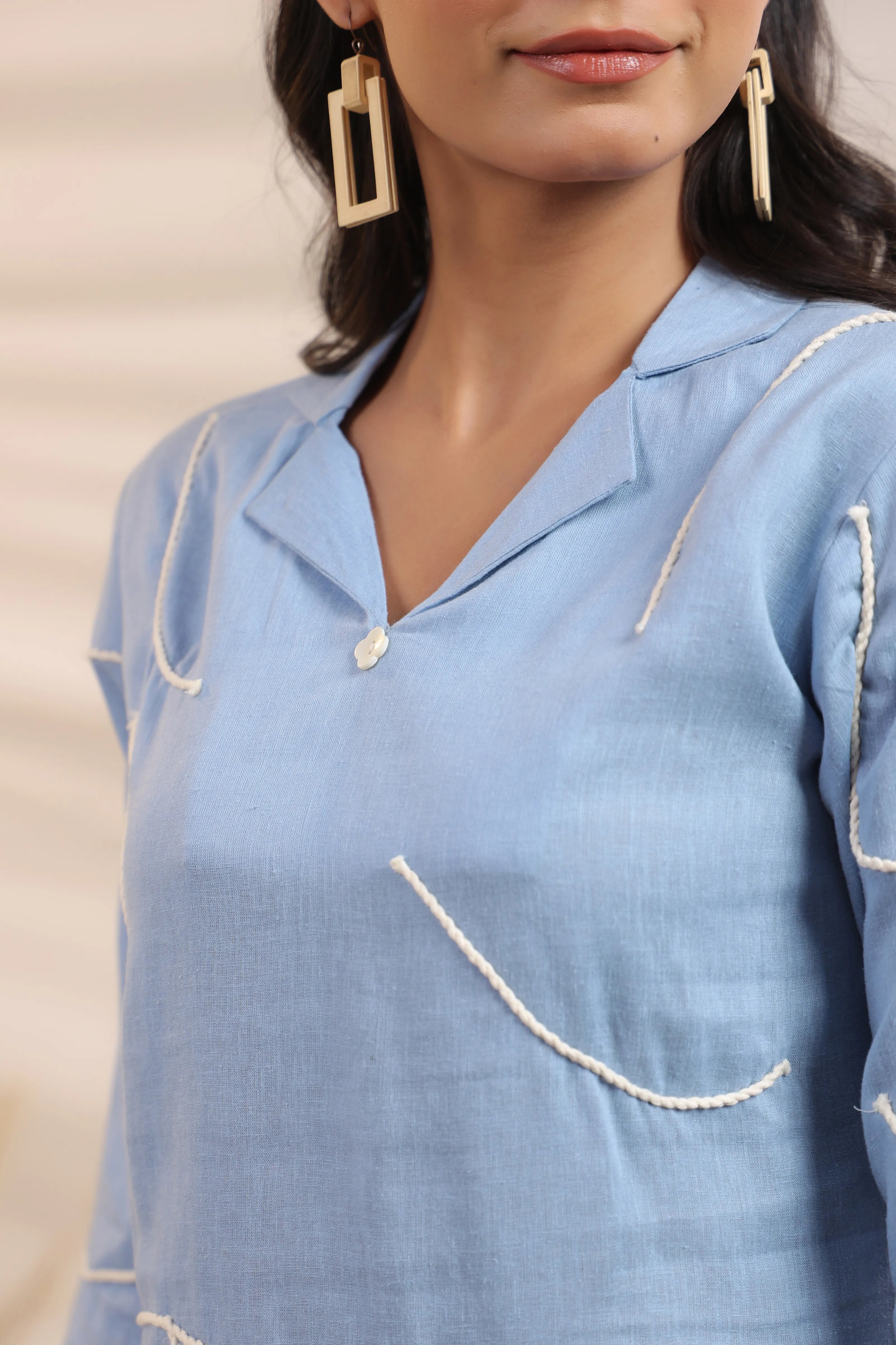 Elephant Trails: Sky Blue Cord Work Tunic in Cotton Linen