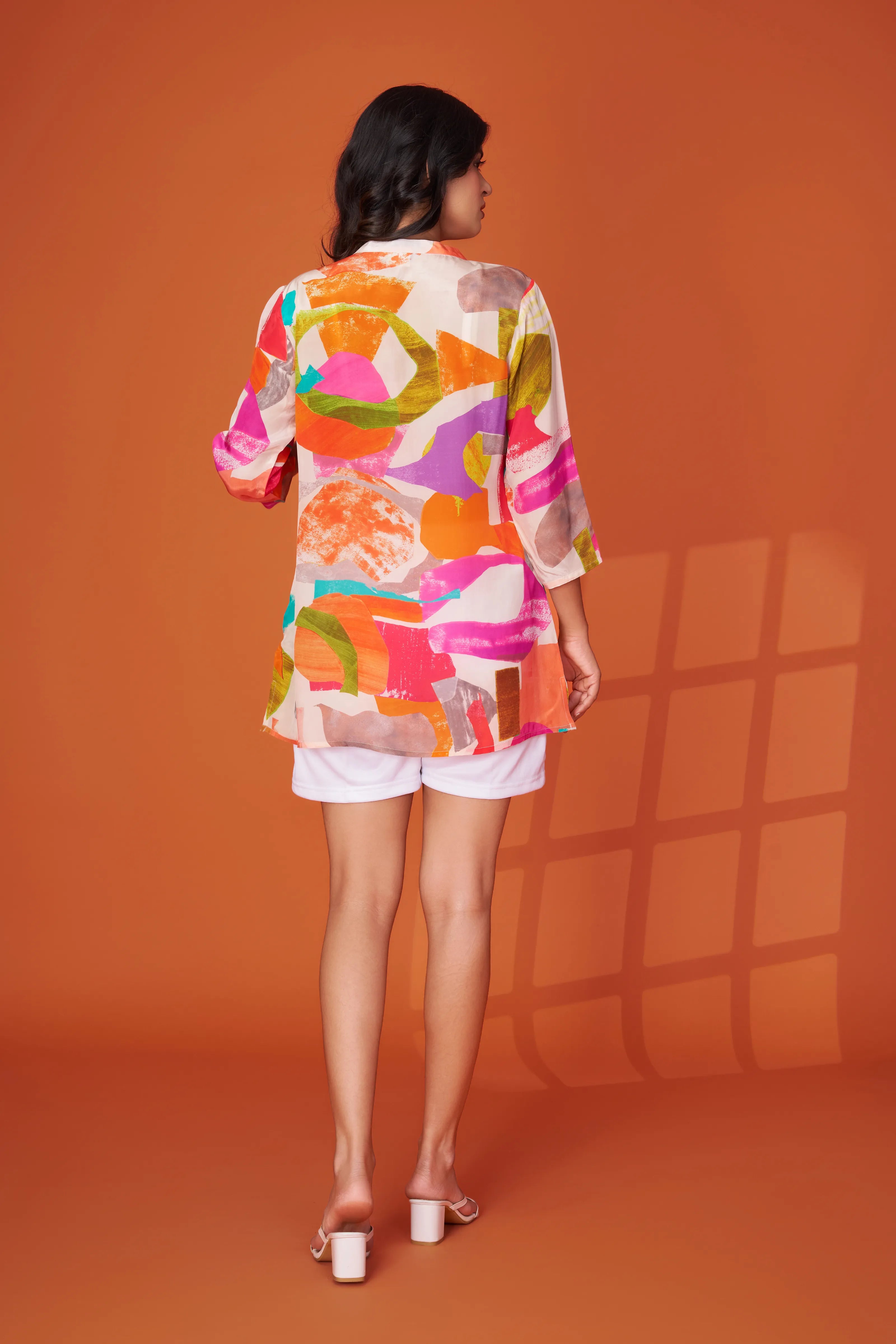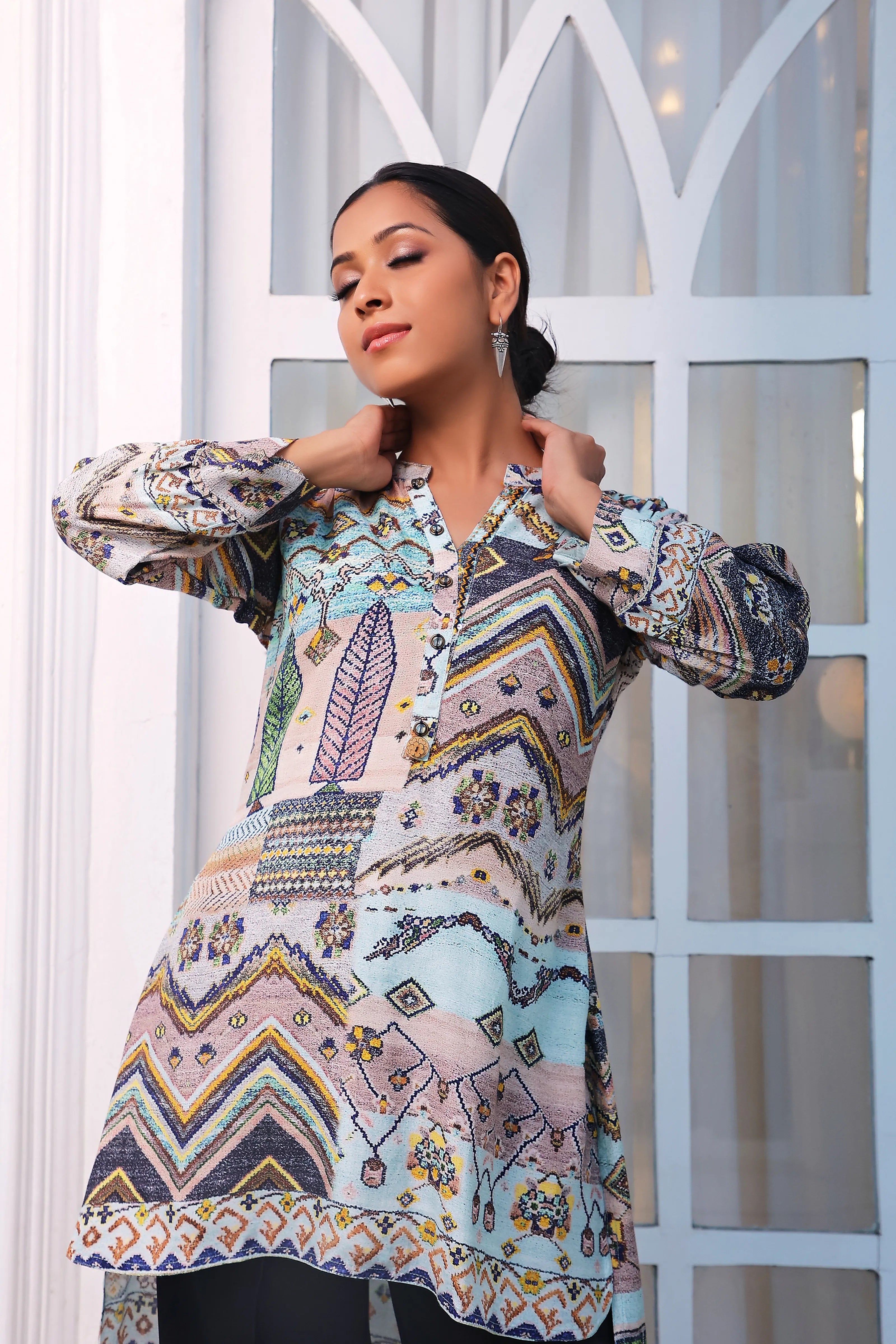 Multicolor Geometric Crepe Short Kurti